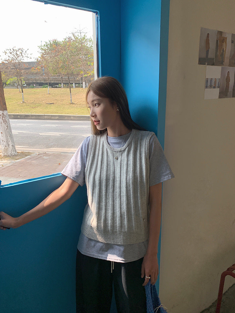 【LD2740】實拍高質感簡約坑條針織背心(羊毛33%) 250908