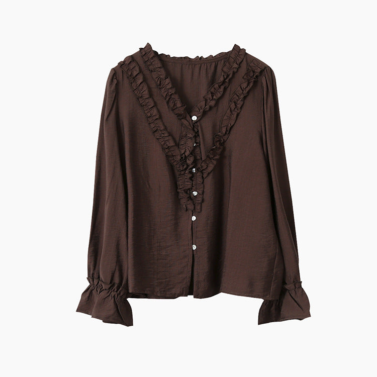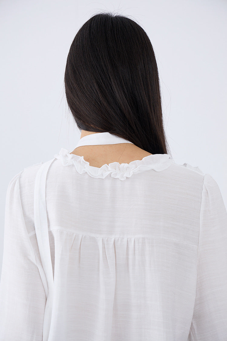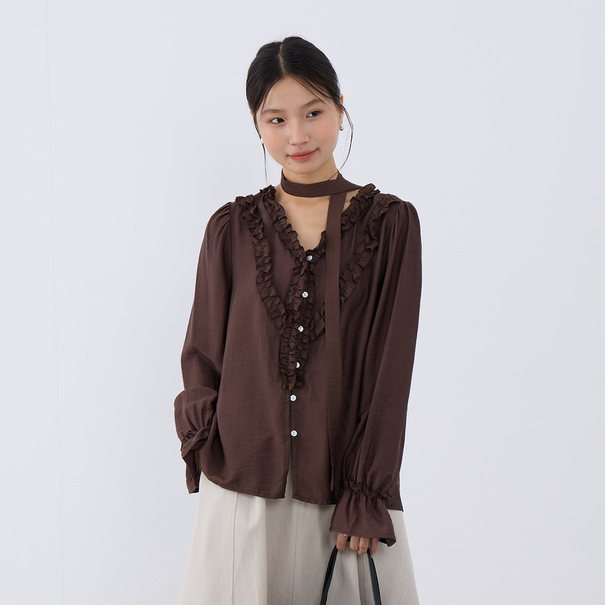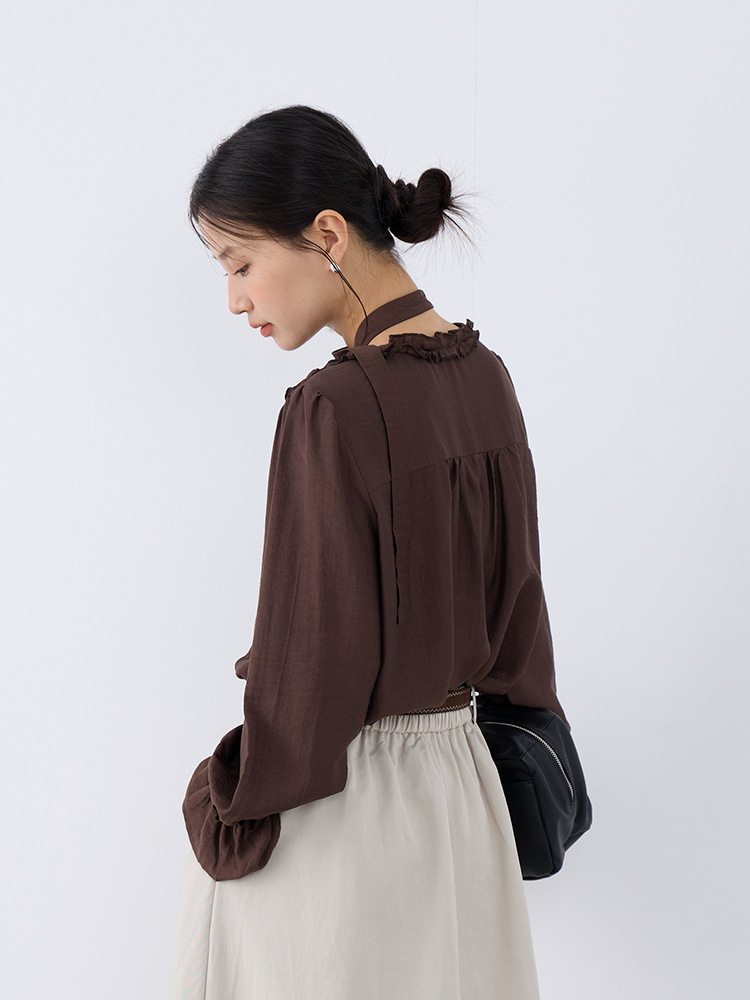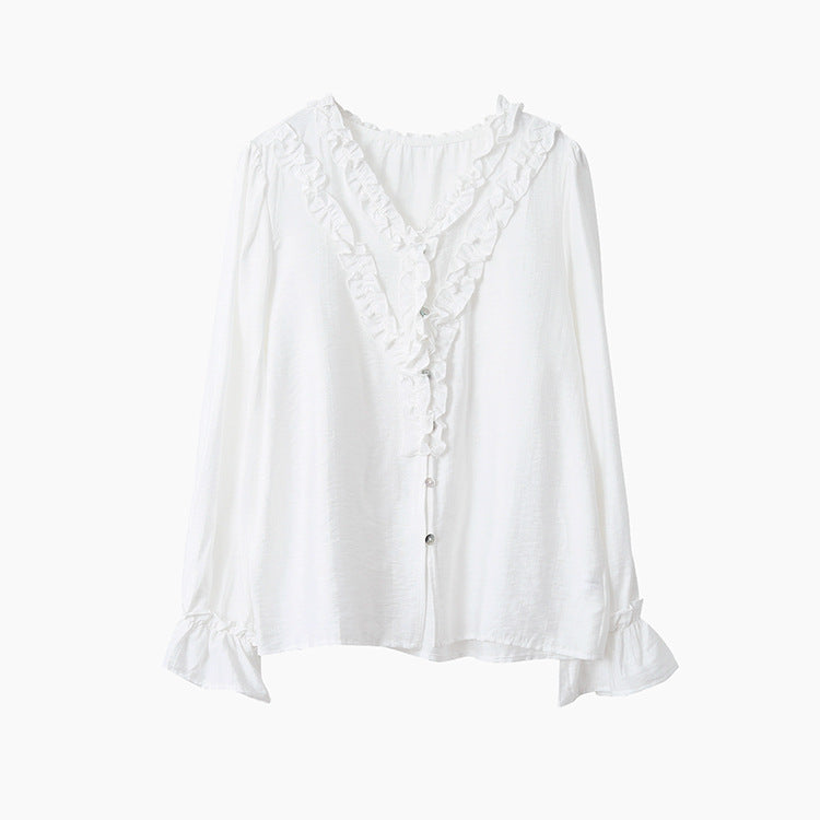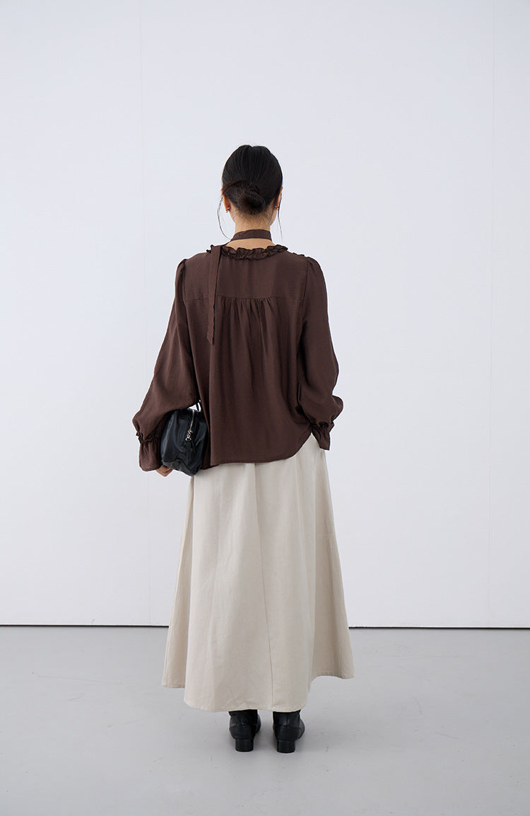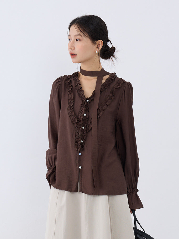 【LD3160】實拍法式氣質荷葉長袖襯衫飄帶250908