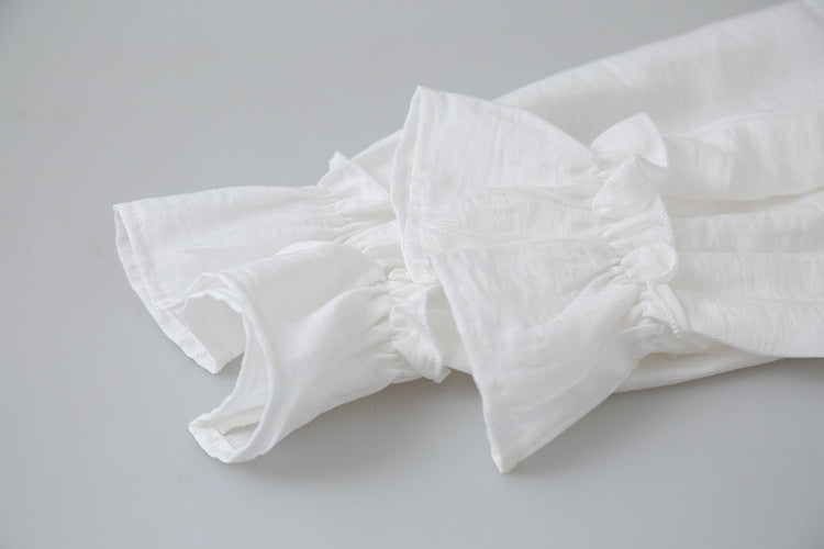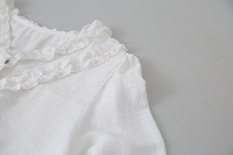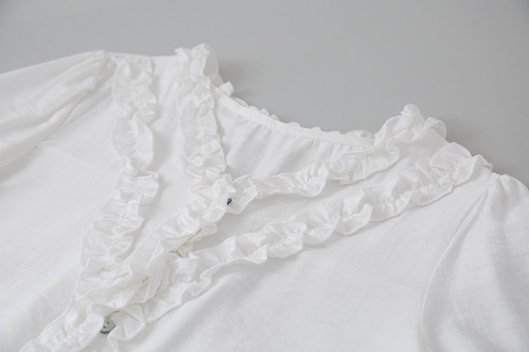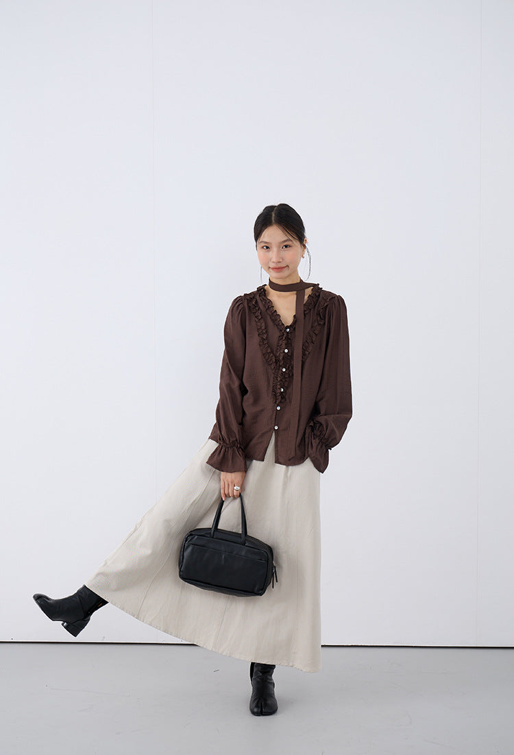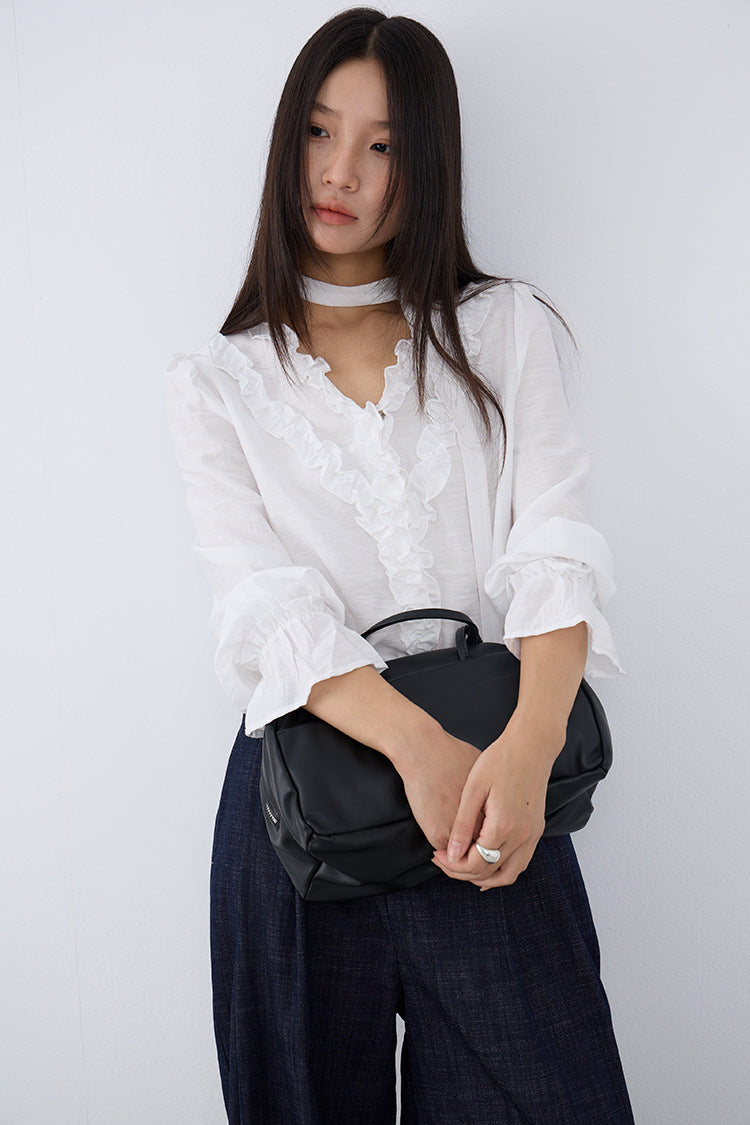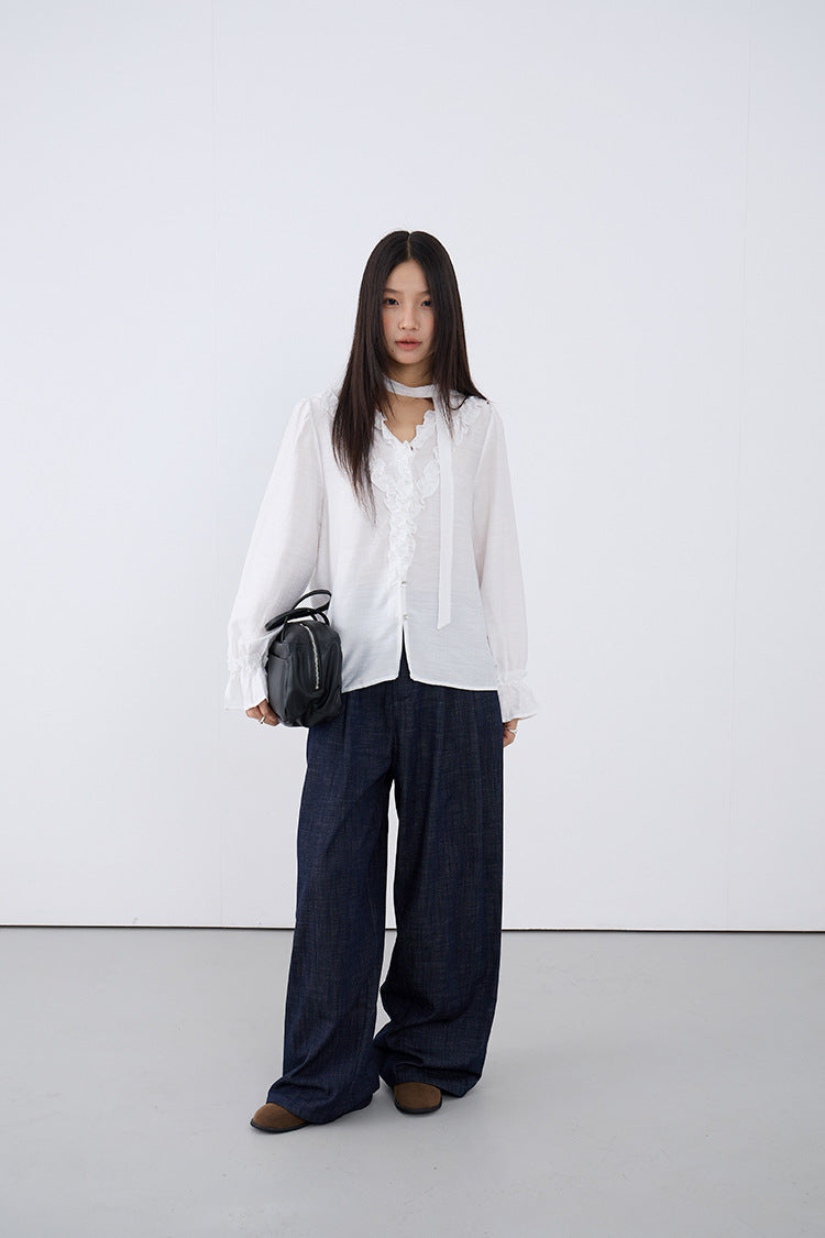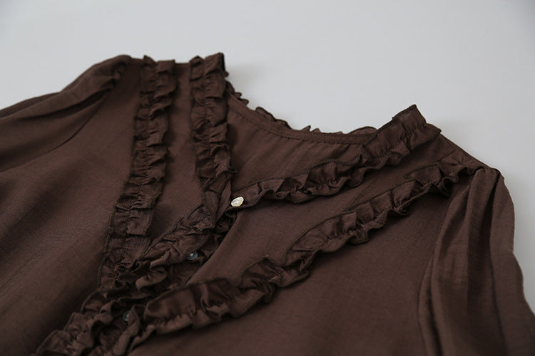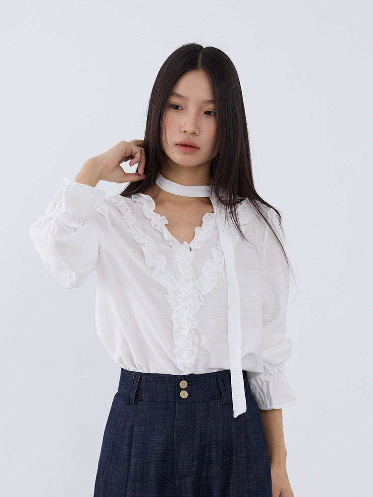 【LD3160】實拍法式氣質荷葉長袖襯衫飄帶250908