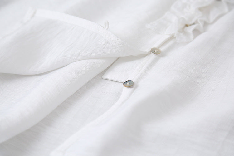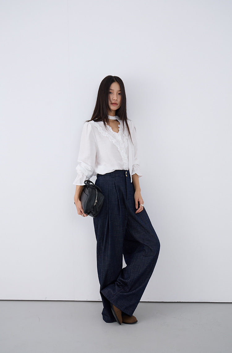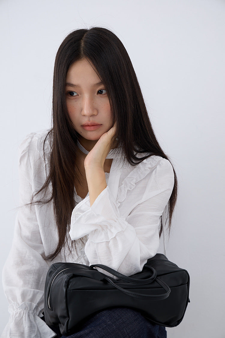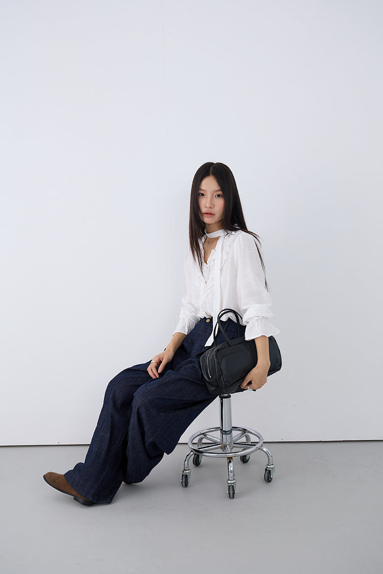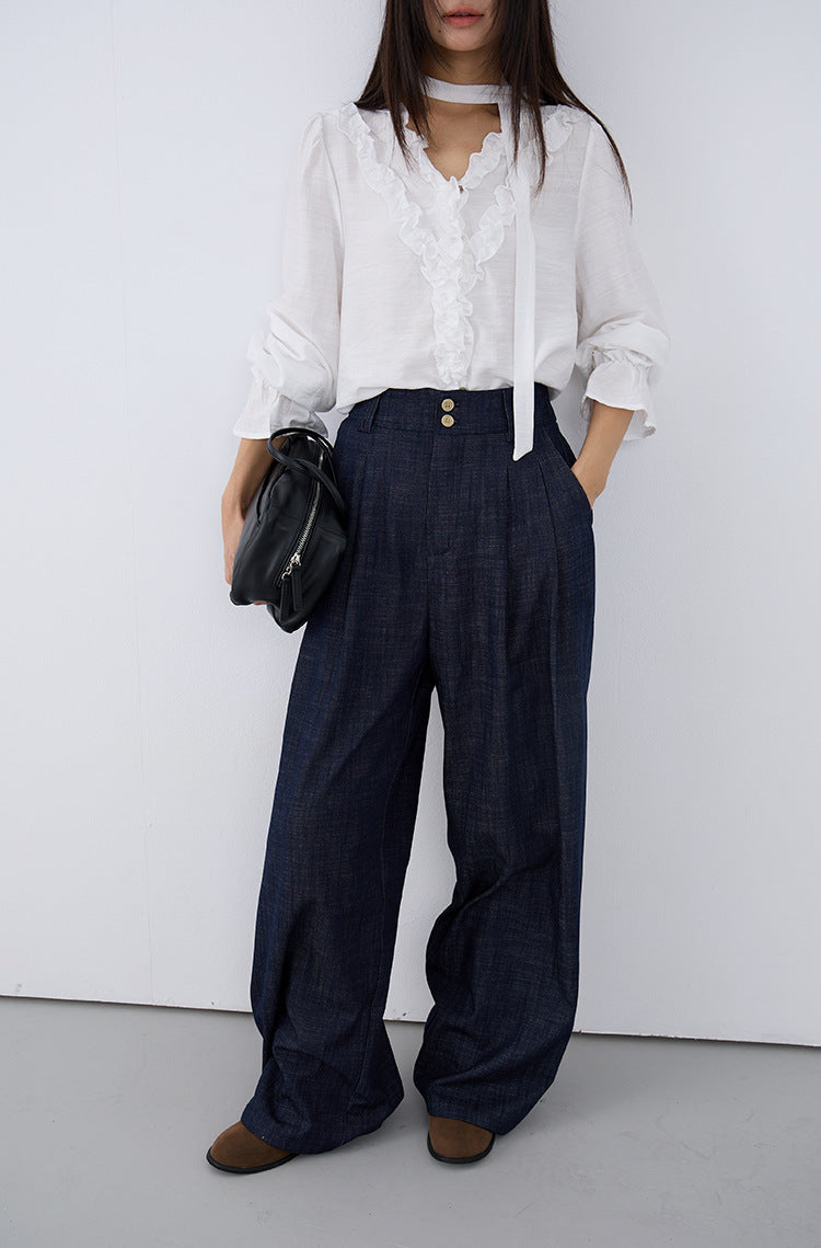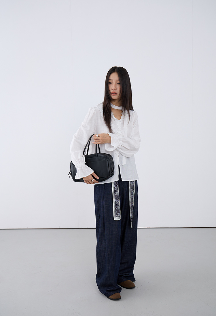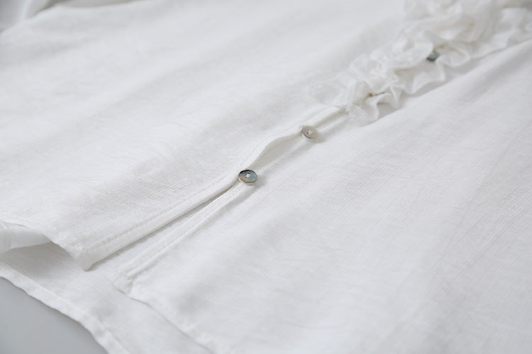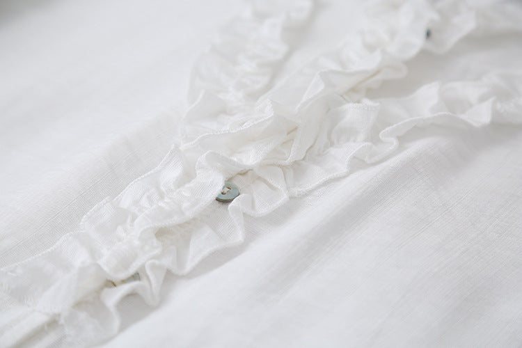 【LD3160】實拍法式氣質荷葉長袖襯衫飄帶250908
