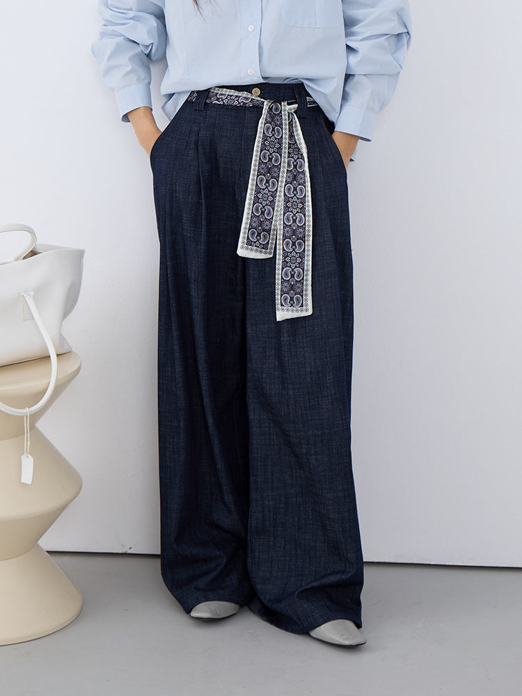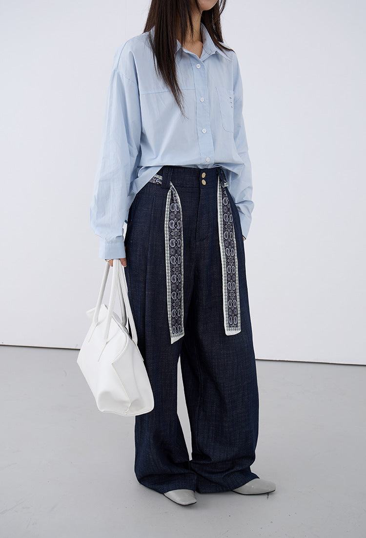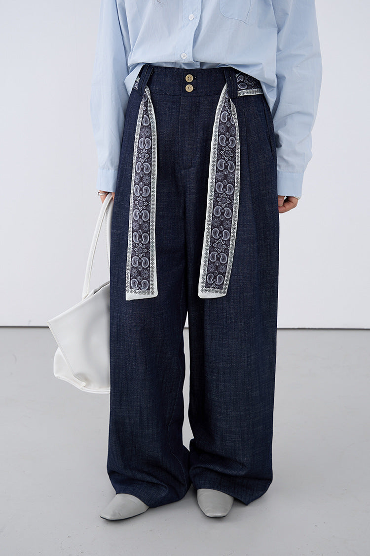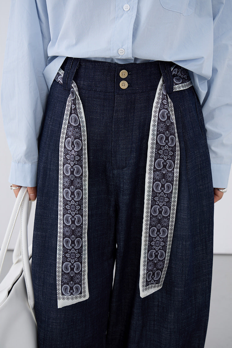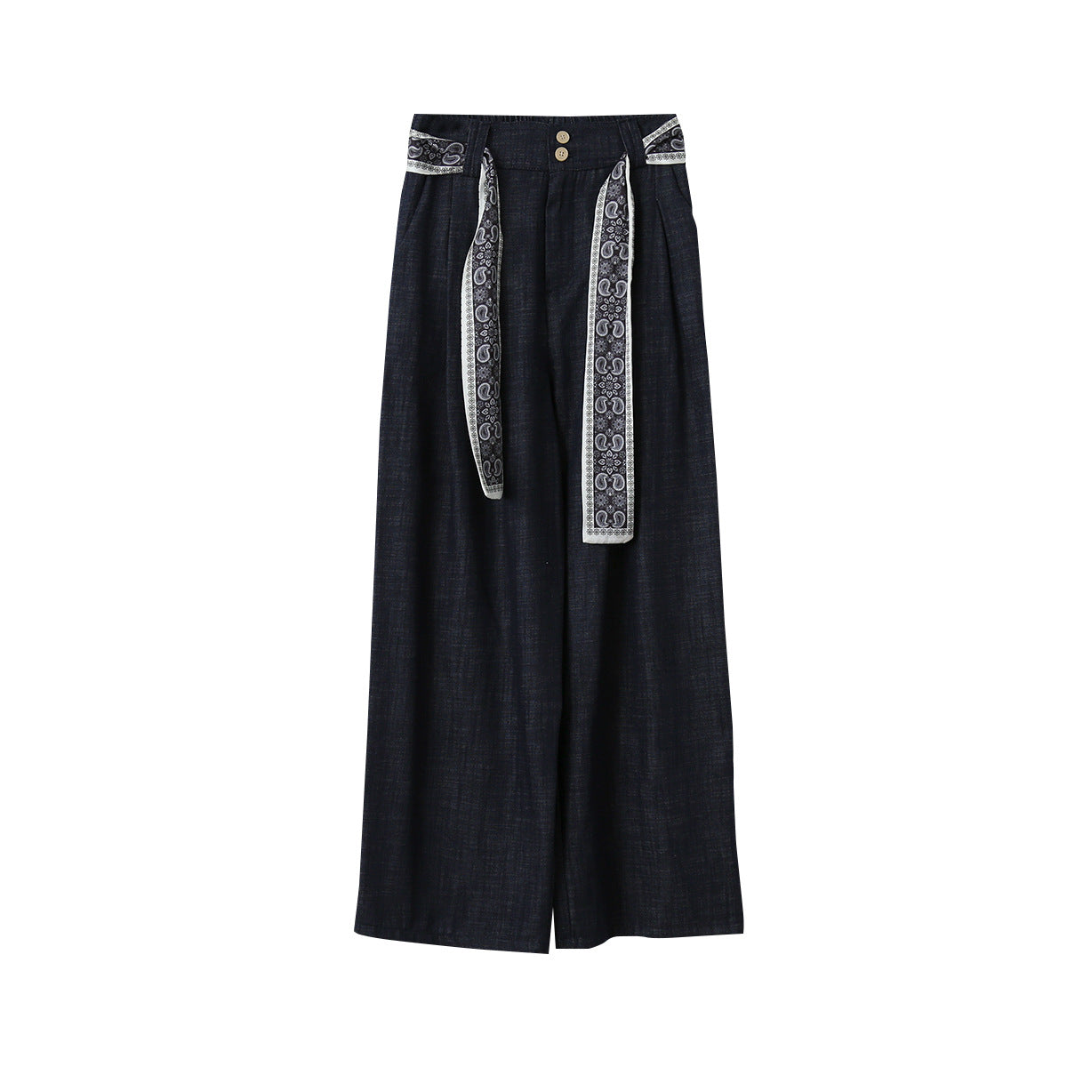 【LD3167】實拍高腰仿牛仔闊腿褲+絲巾250908