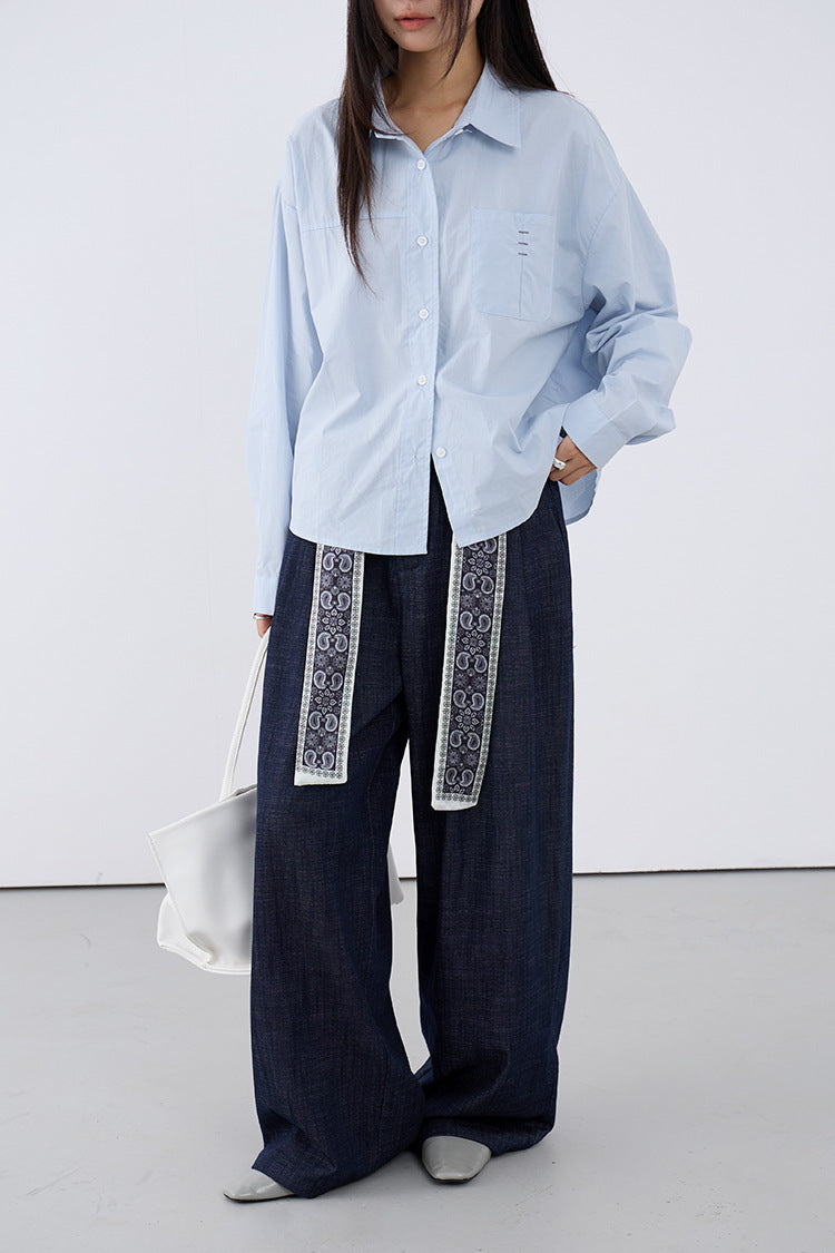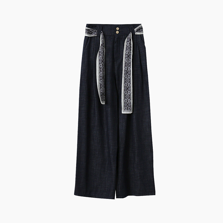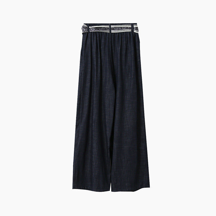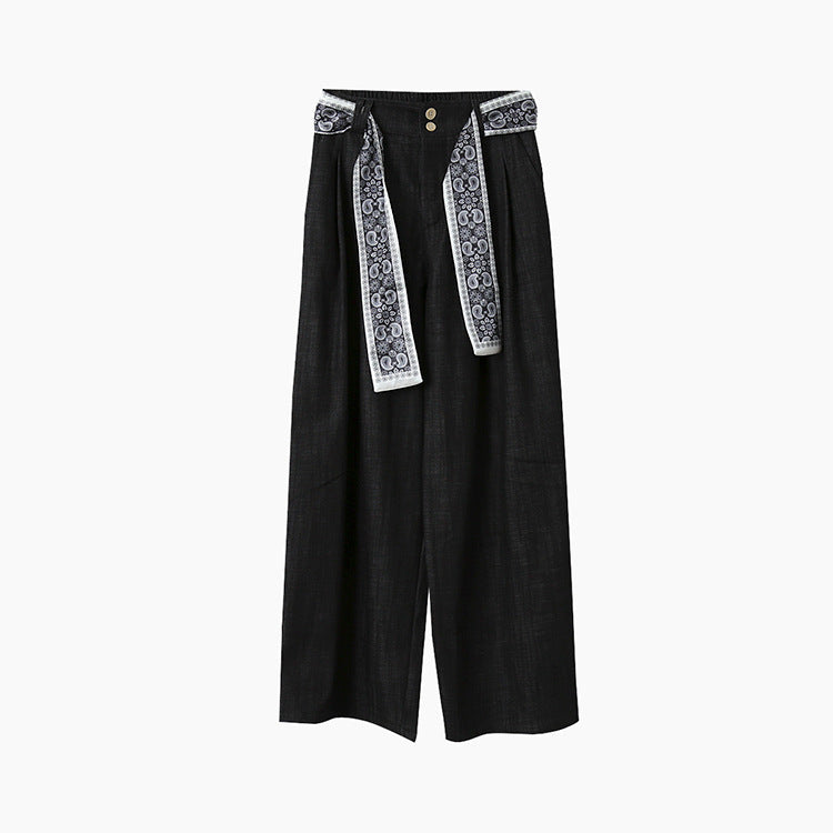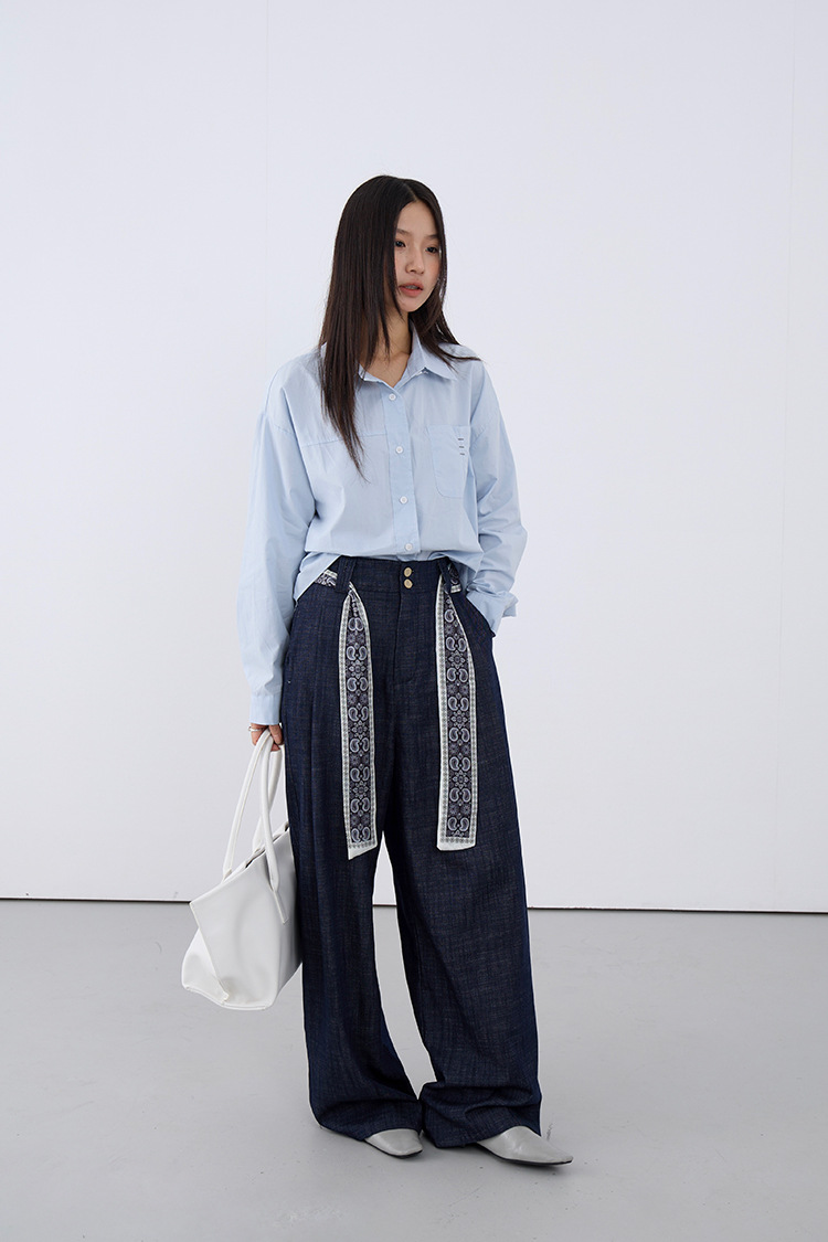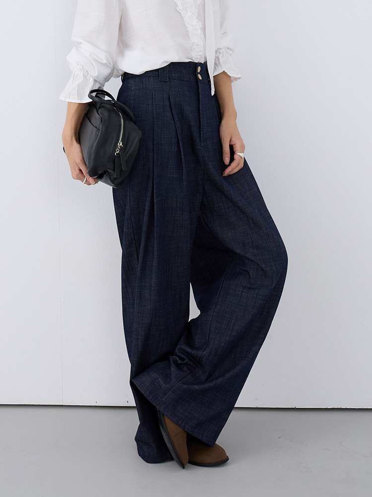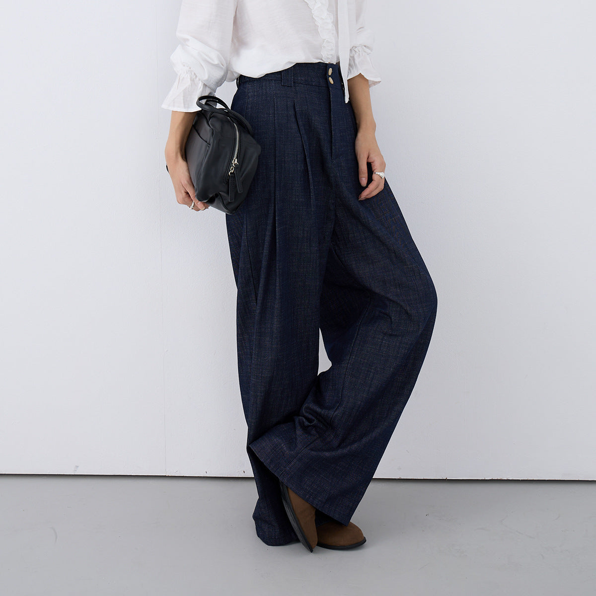 【LD3167】實拍高腰仿牛仔闊腿褲+絲巾250908
