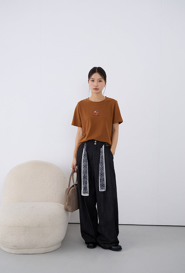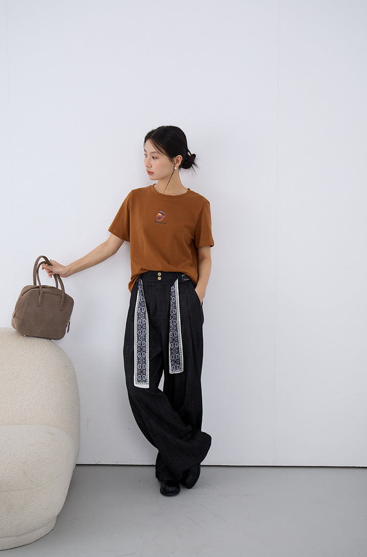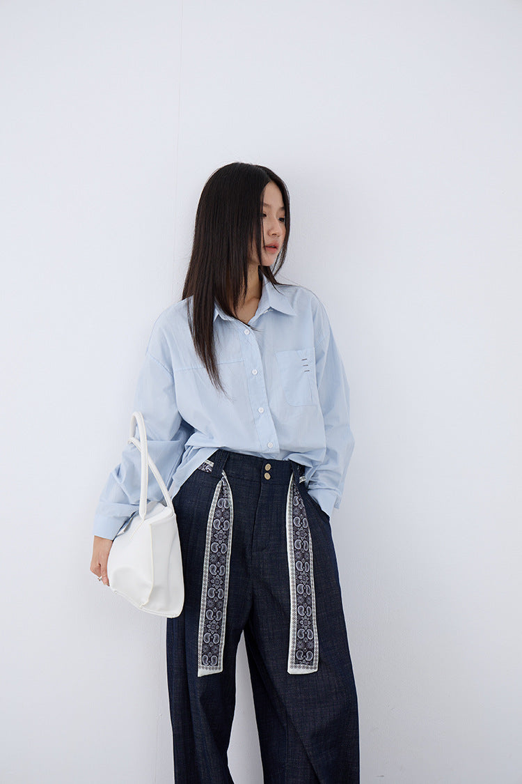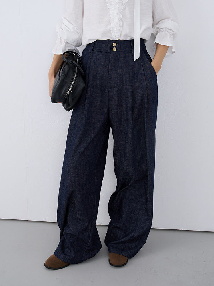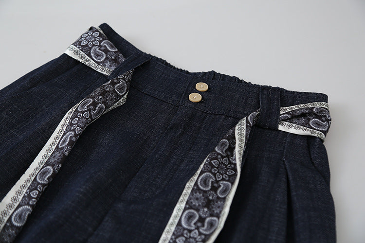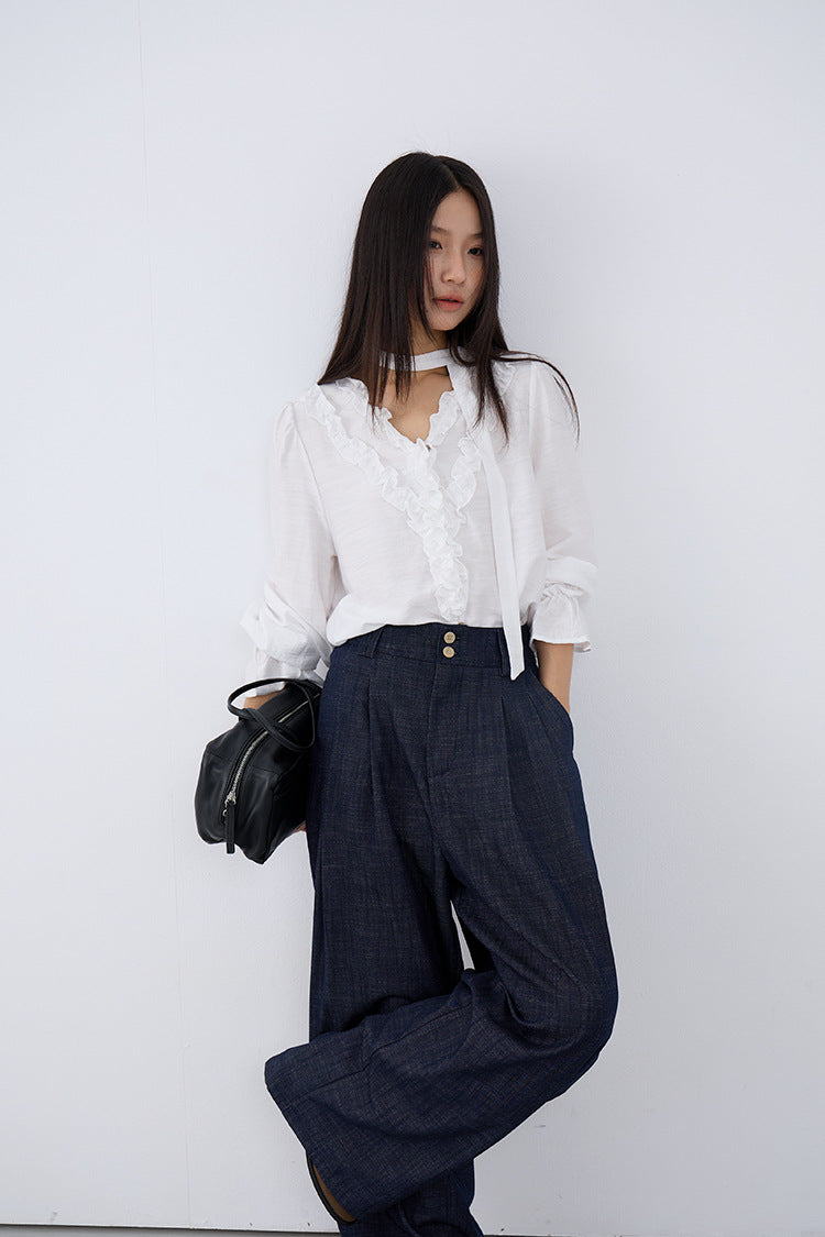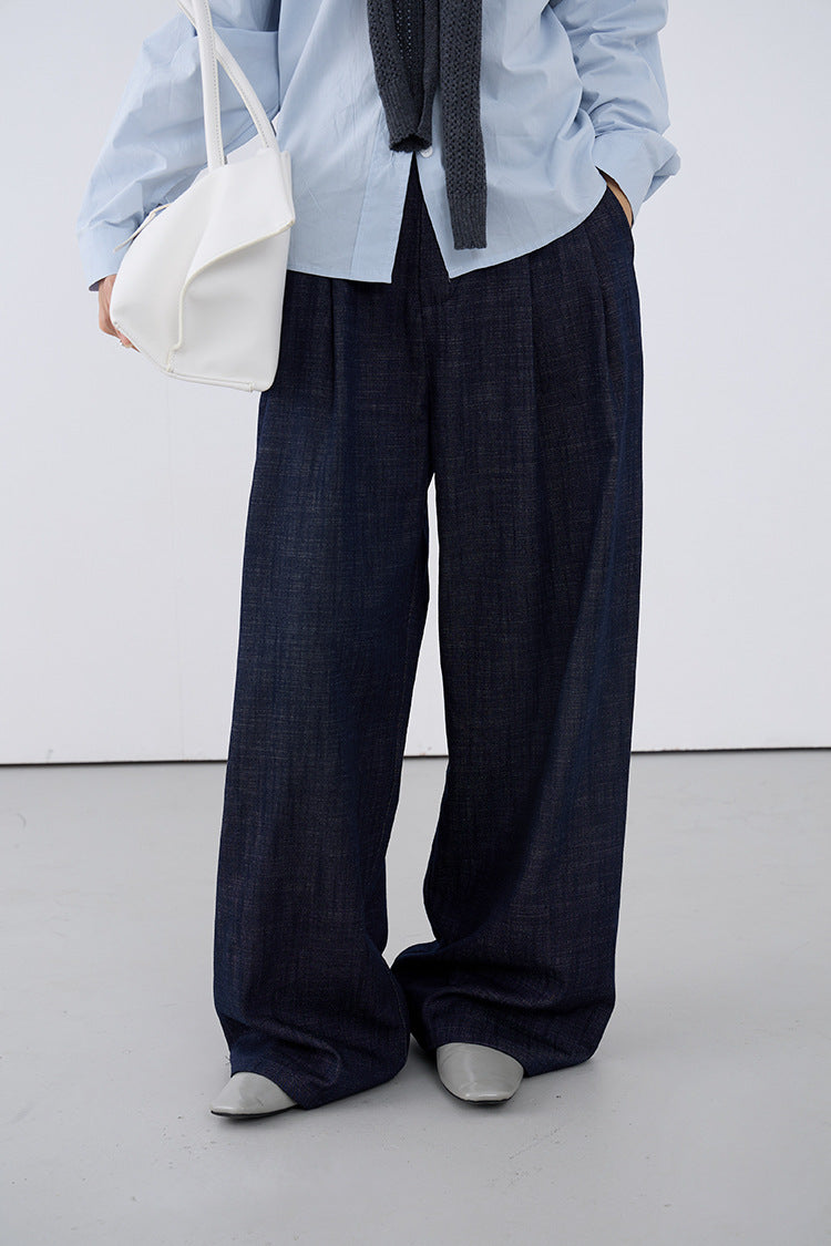 【LD3167】實拍高腰仿牛仔闊腿褲+絲巾250908