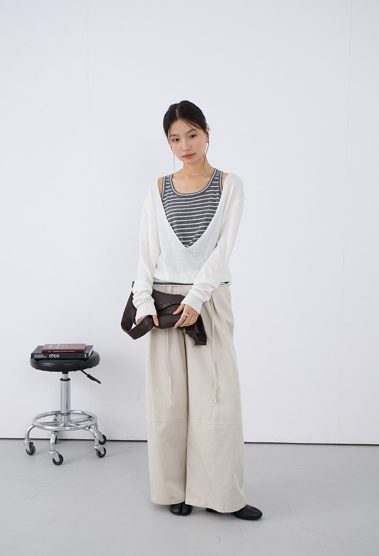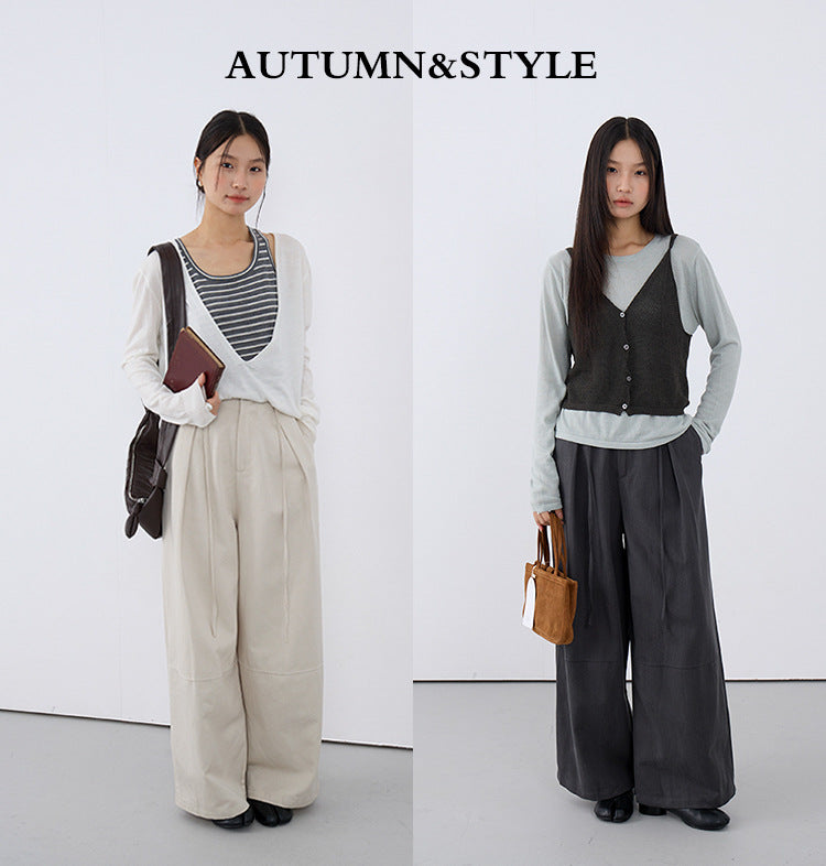 【LD3168】實拍設計感抽繩高腰工裝休閒褲250908