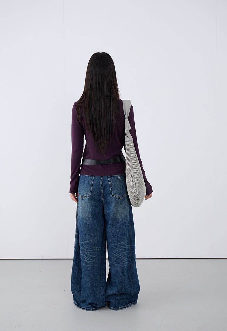【LD3169】實拍S~XL美式牛仔水洗貓須高腰牛仔褲250908
