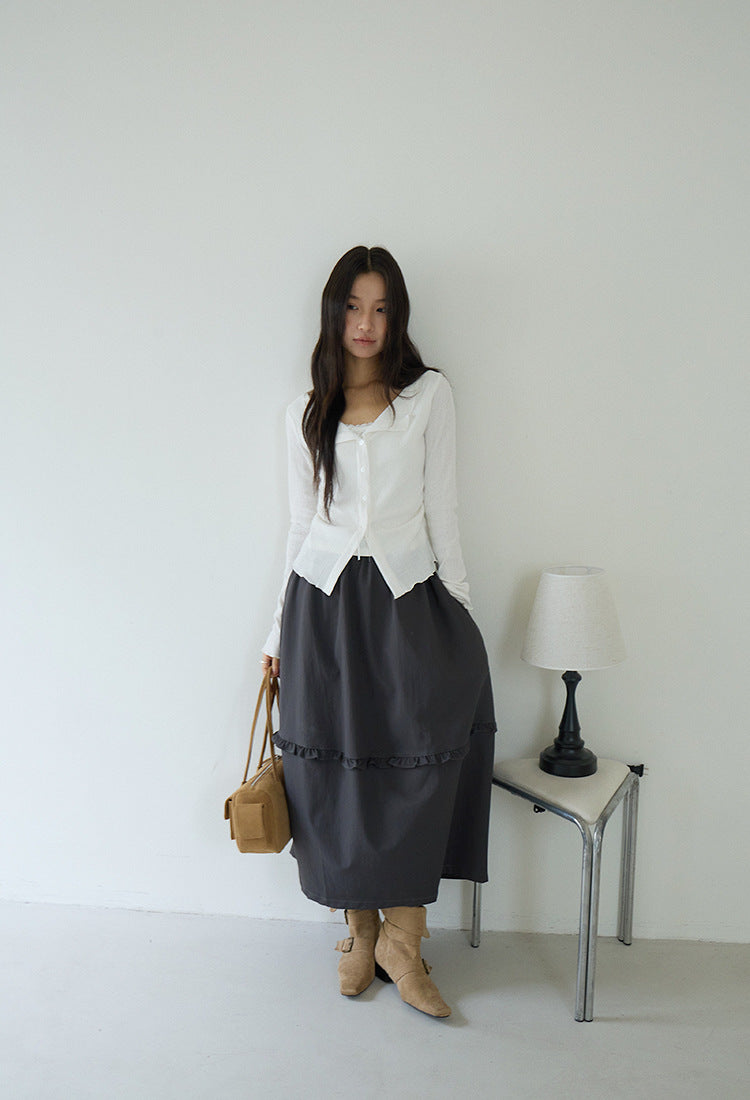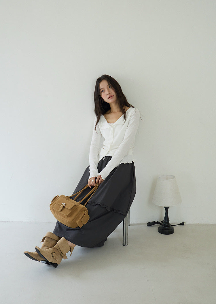 【LD3172】實拍法式簡約小設計高腰微氣球裙250908