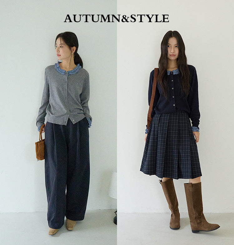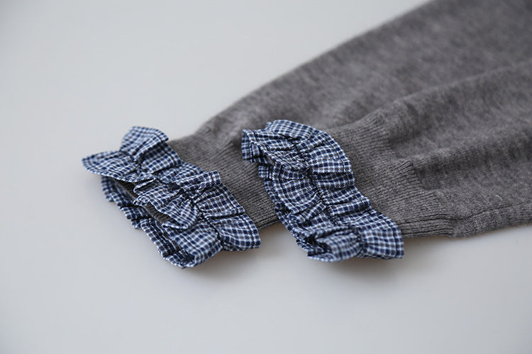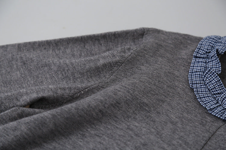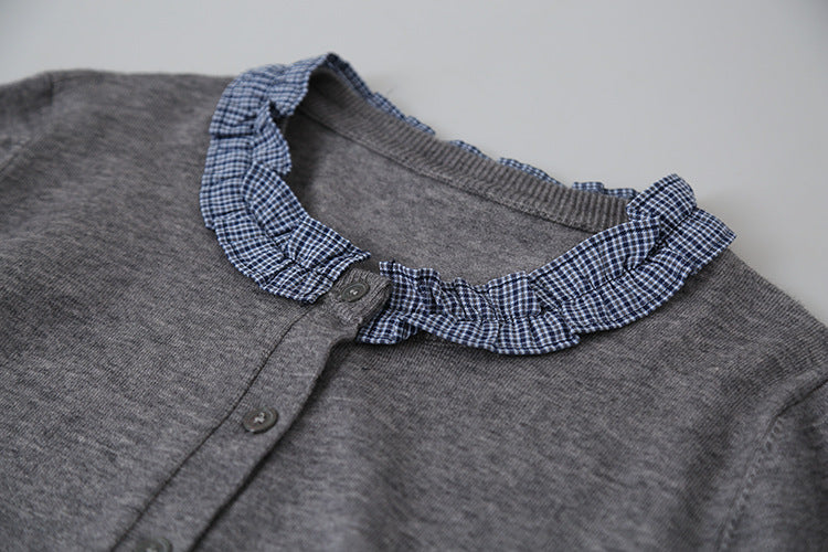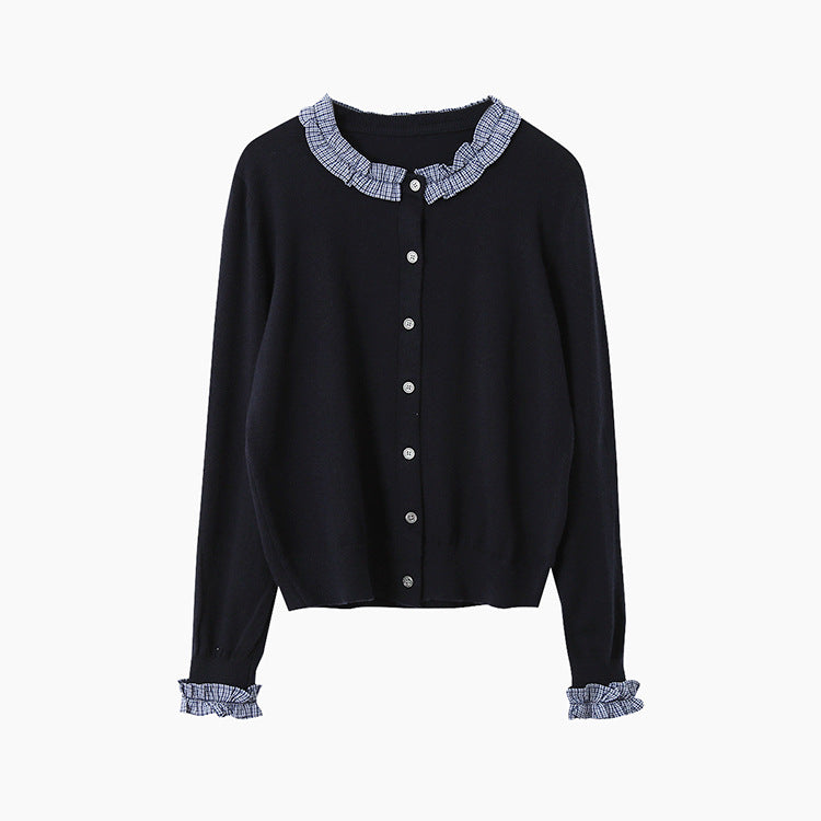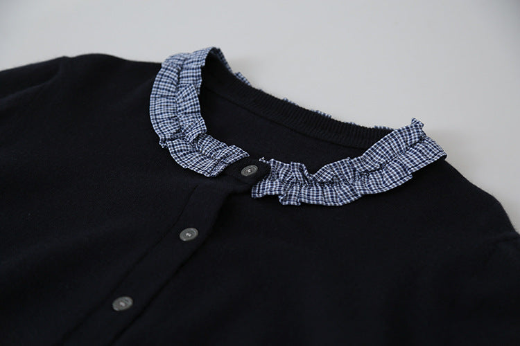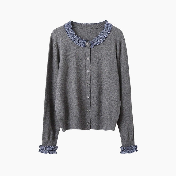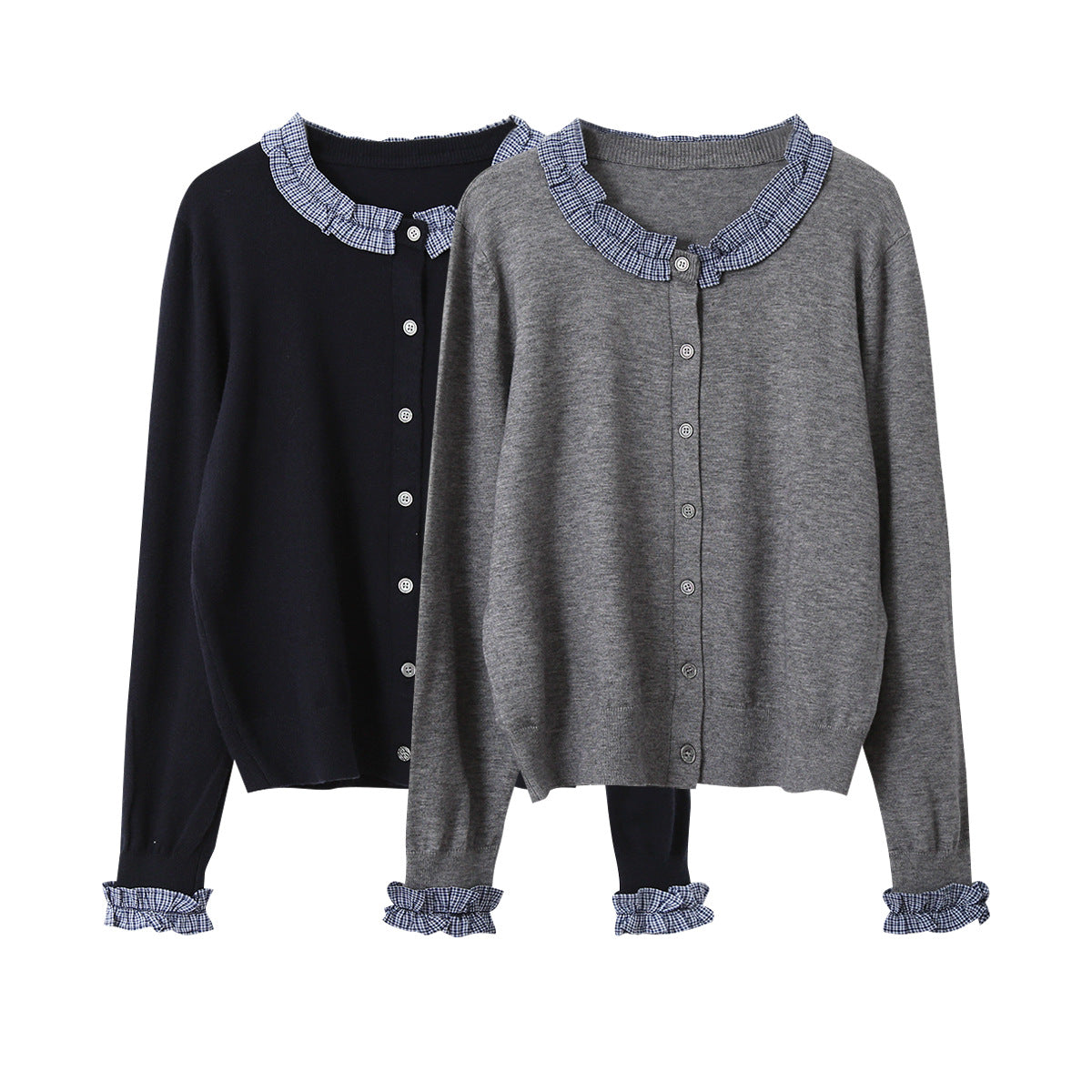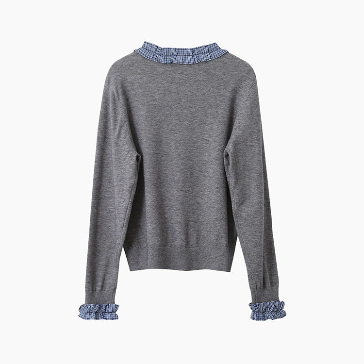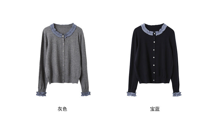 【LD3176】實拍小眾miu感小荷葉圓領針織衫250908