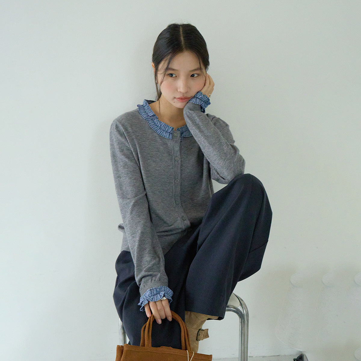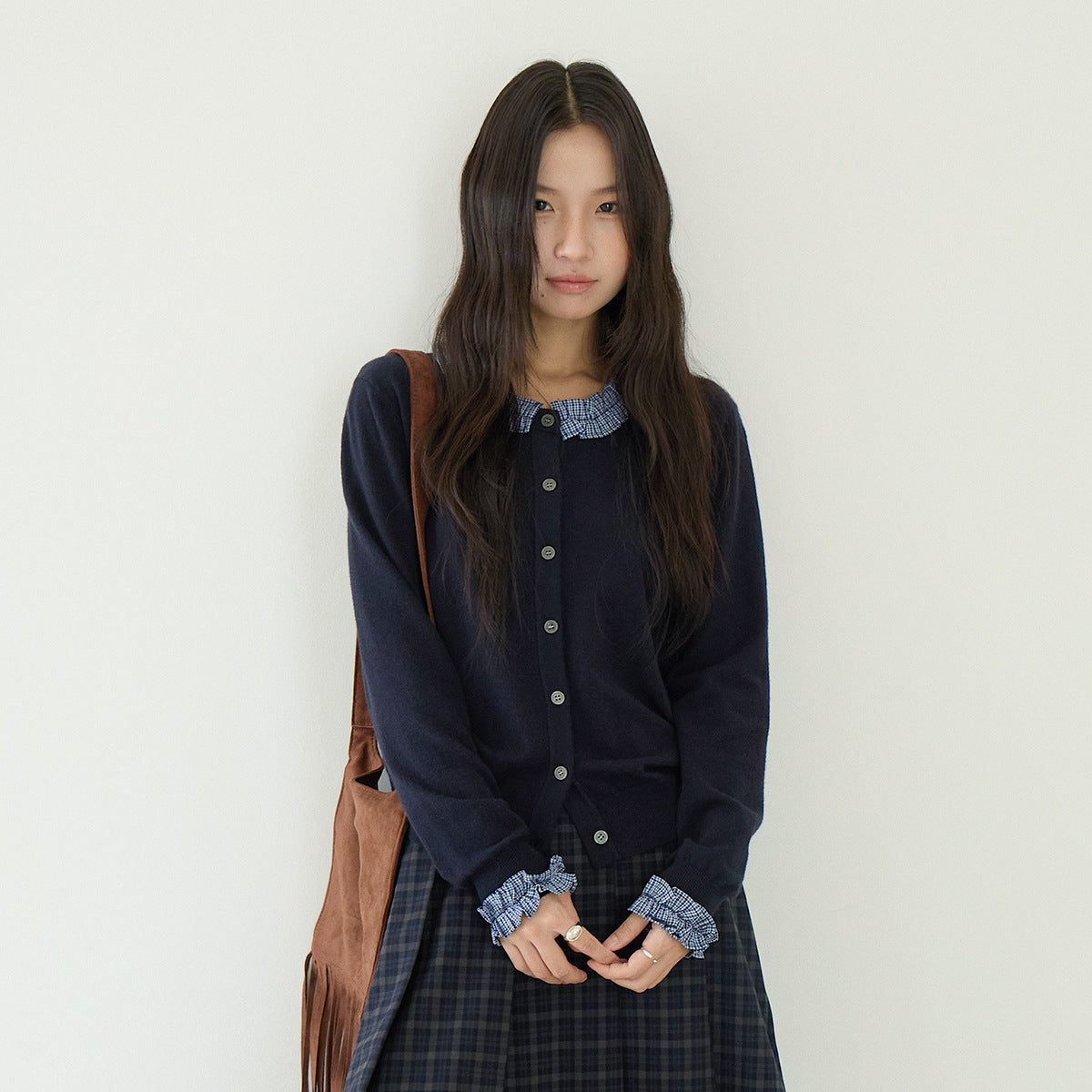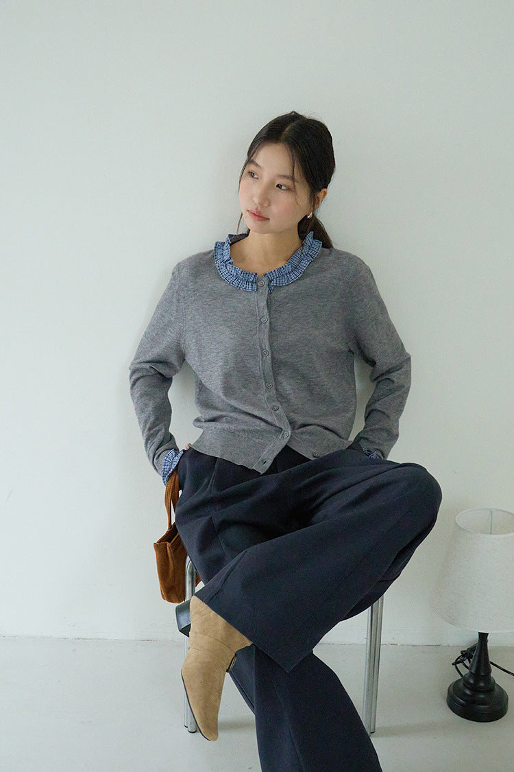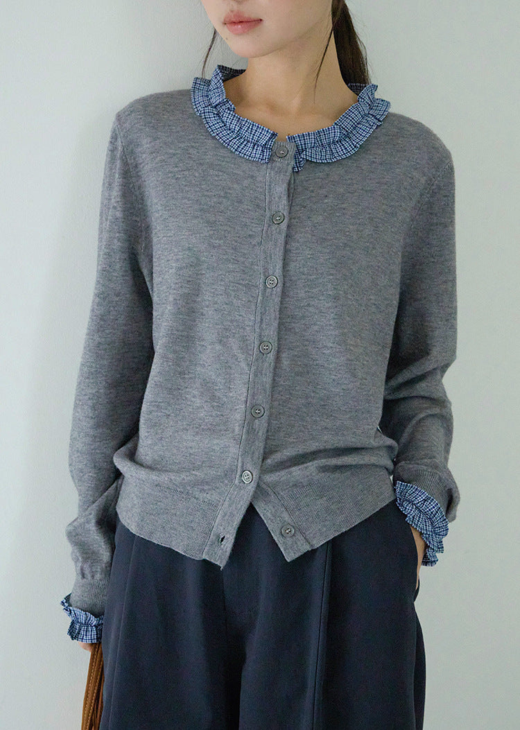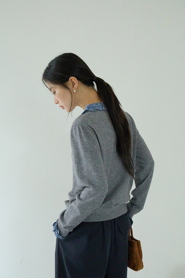 【LD3176】實拍小眾miu感小荷葉圓領針織衫250908