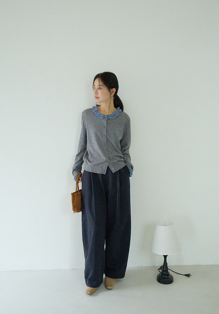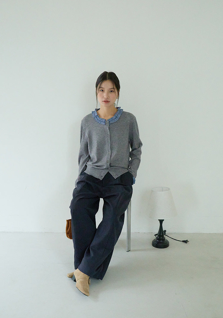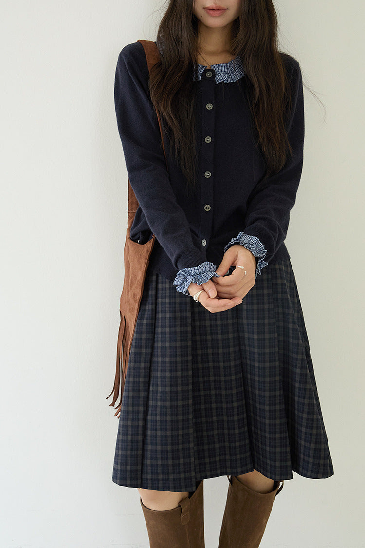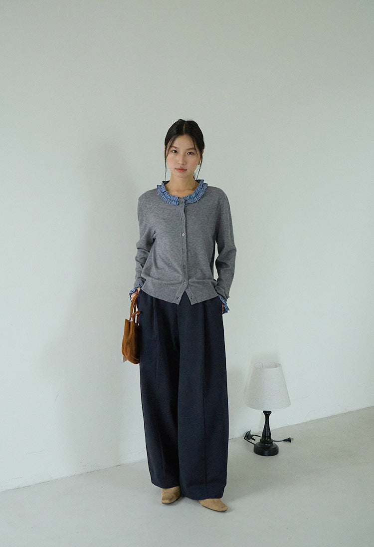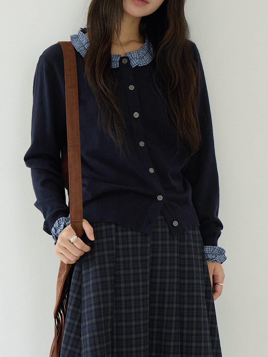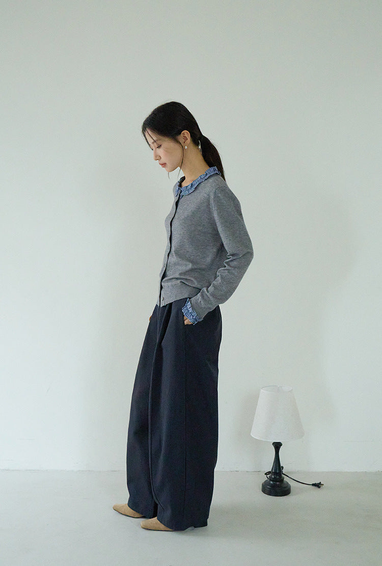 【LD3176】實拍小眾miu感小荷葉圓領針織衫250908