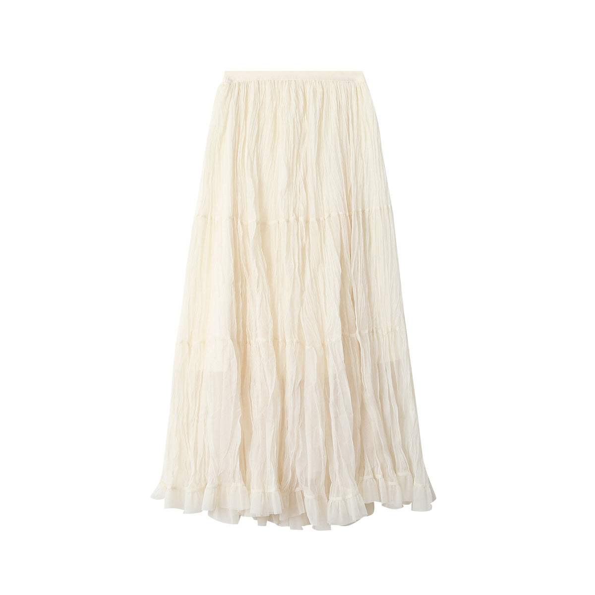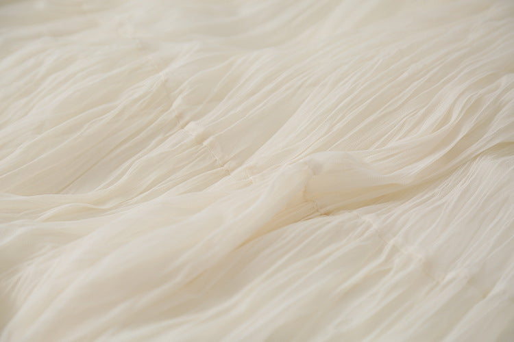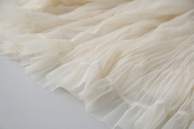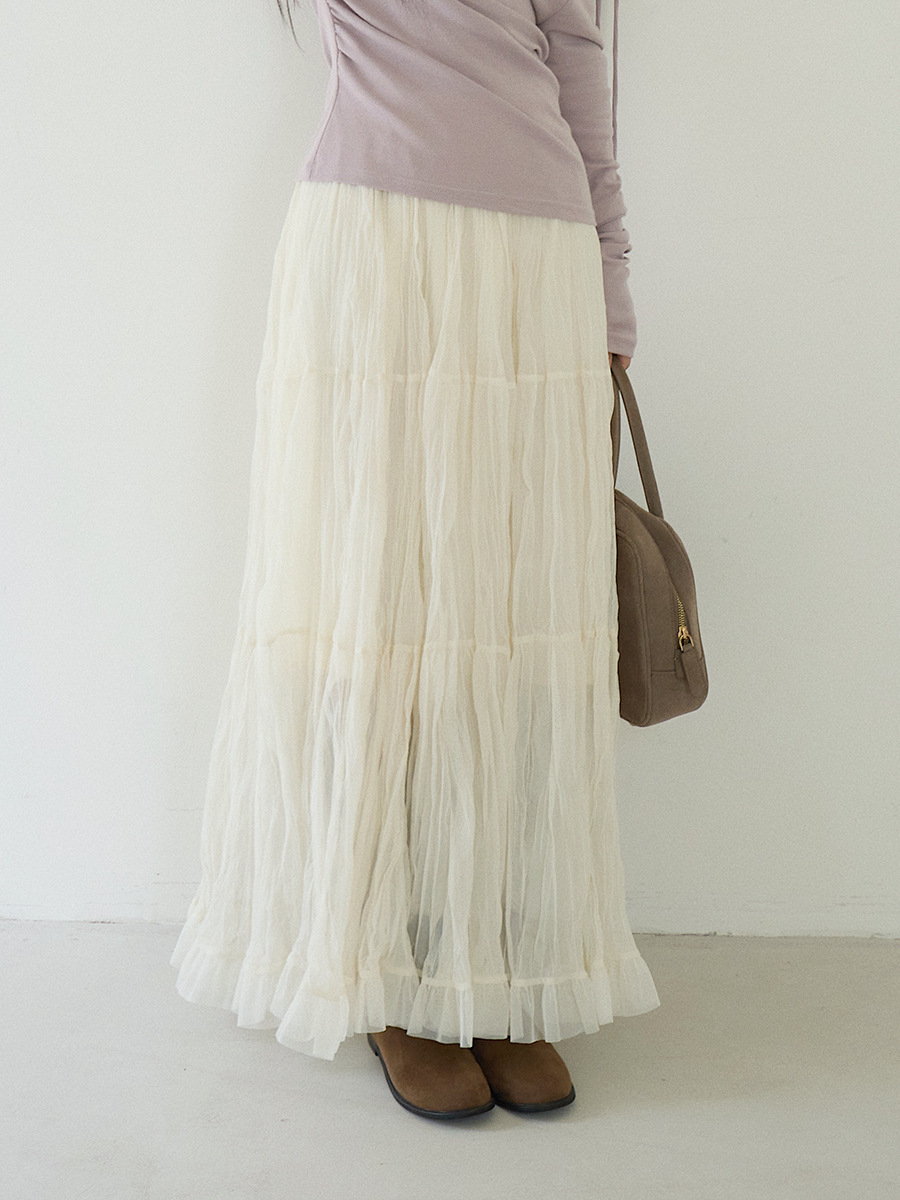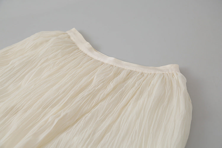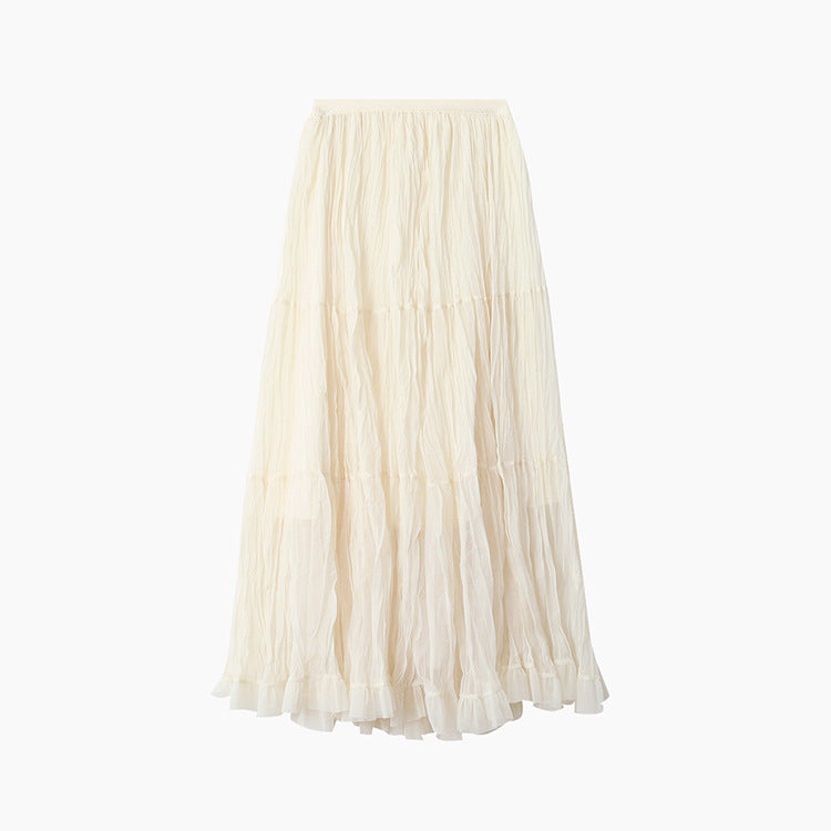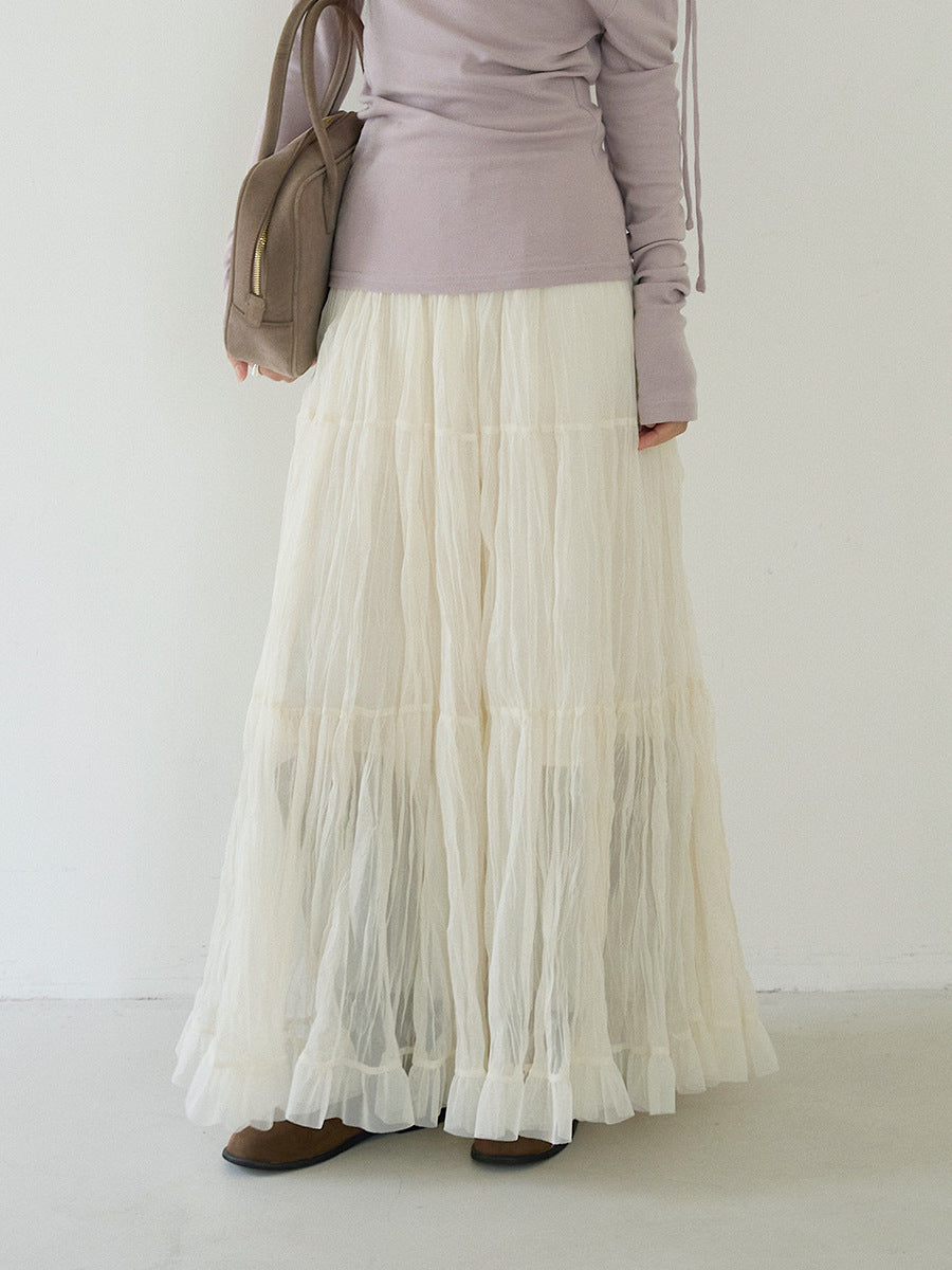 【LD3180】實拍法式個性網紗肌理褶皺高腰A字裙250908