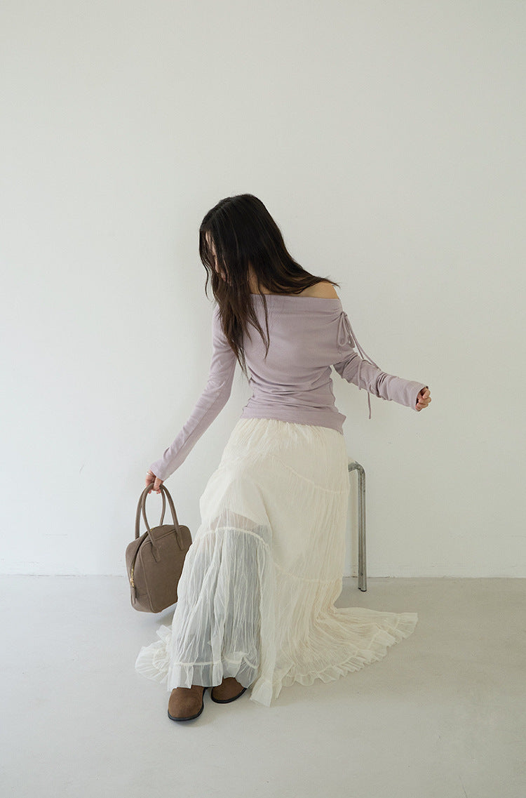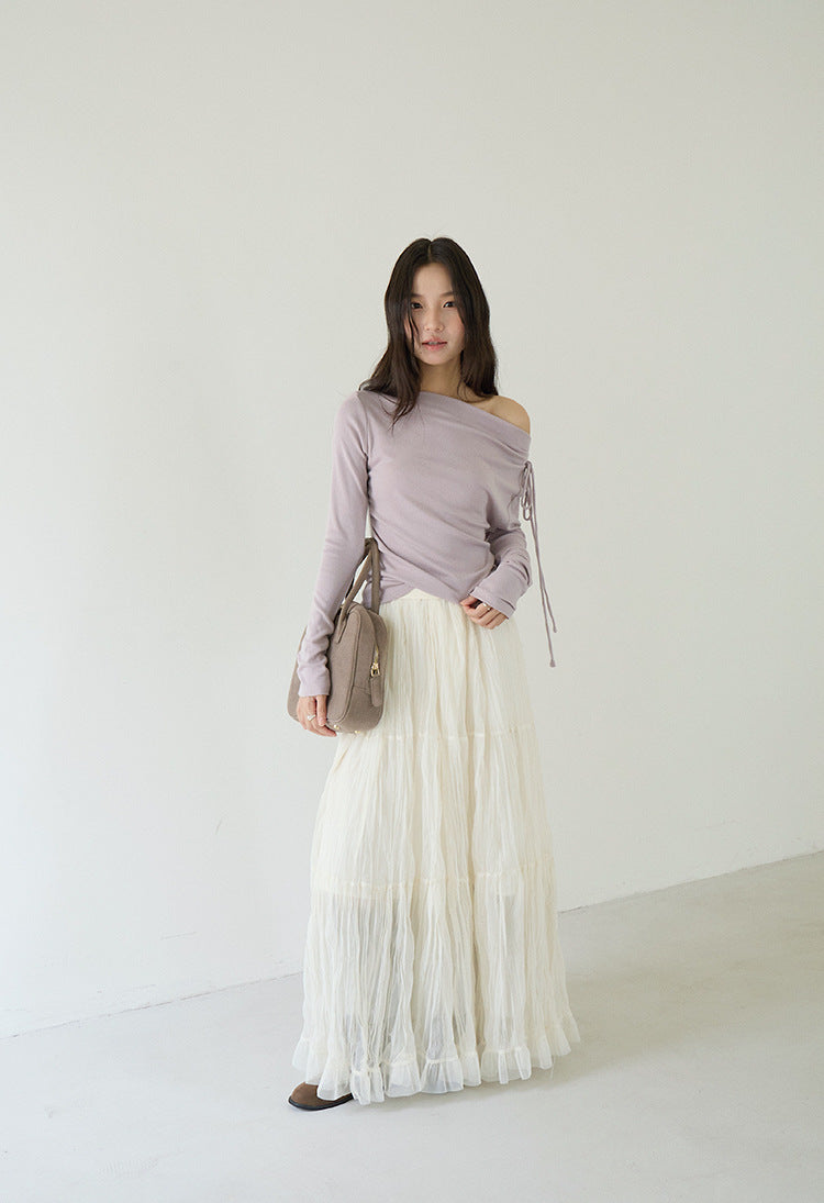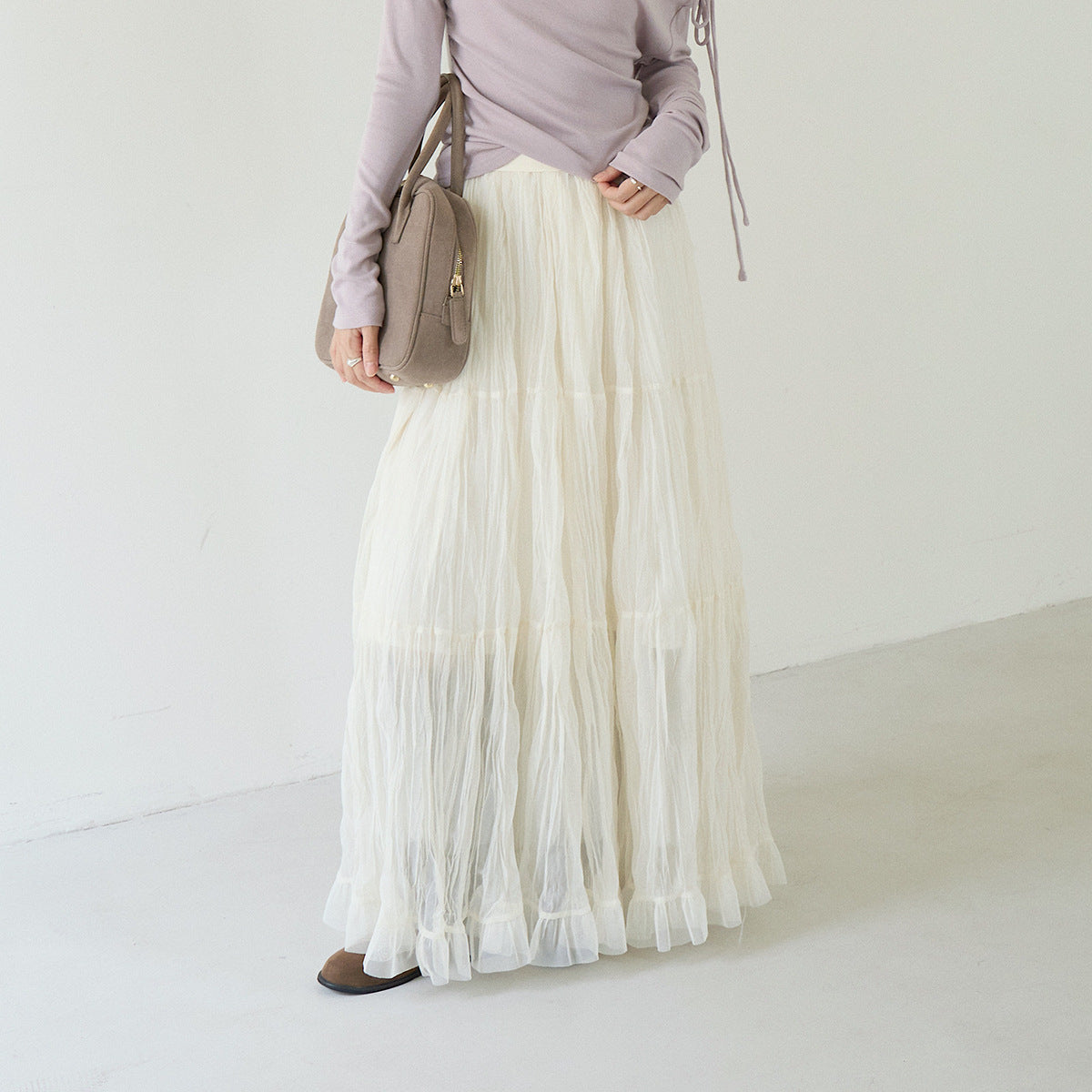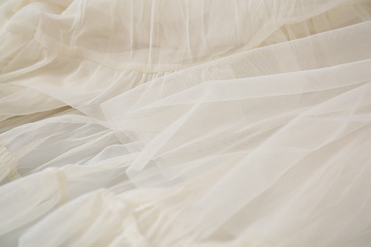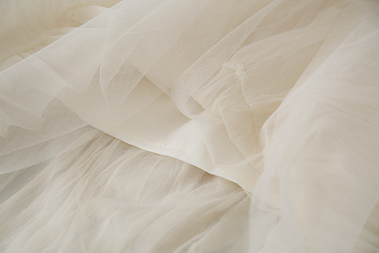 【LD3180】實拍法式個性網紗肌理褶皺高腰A字裙250908