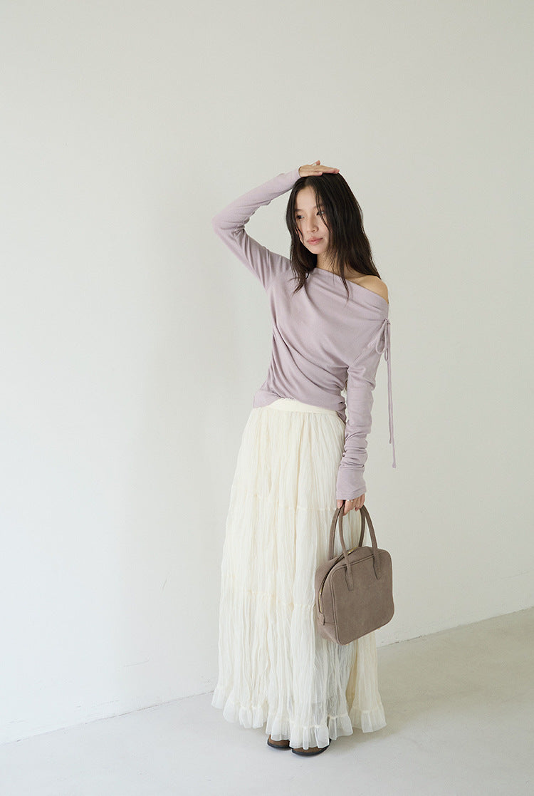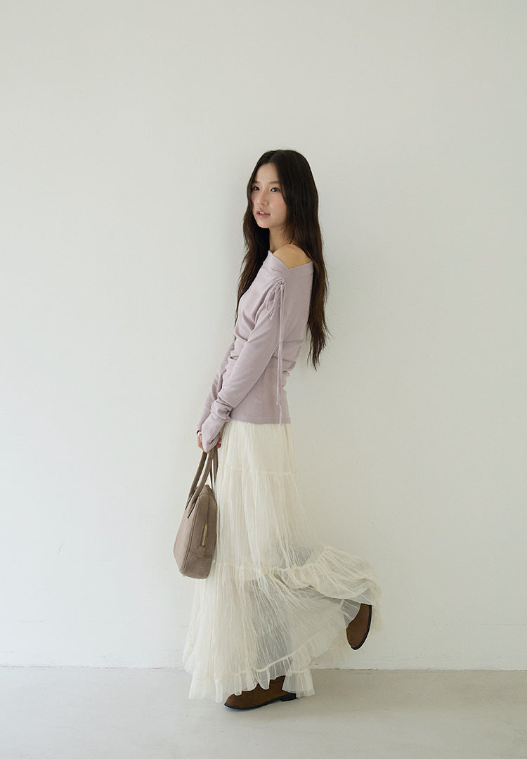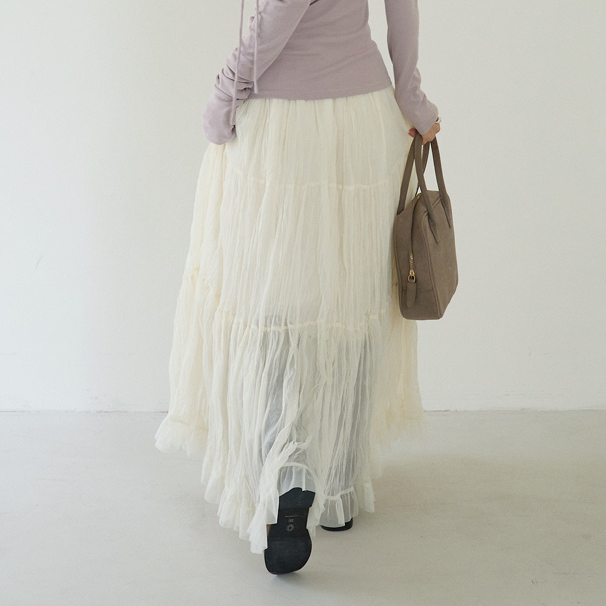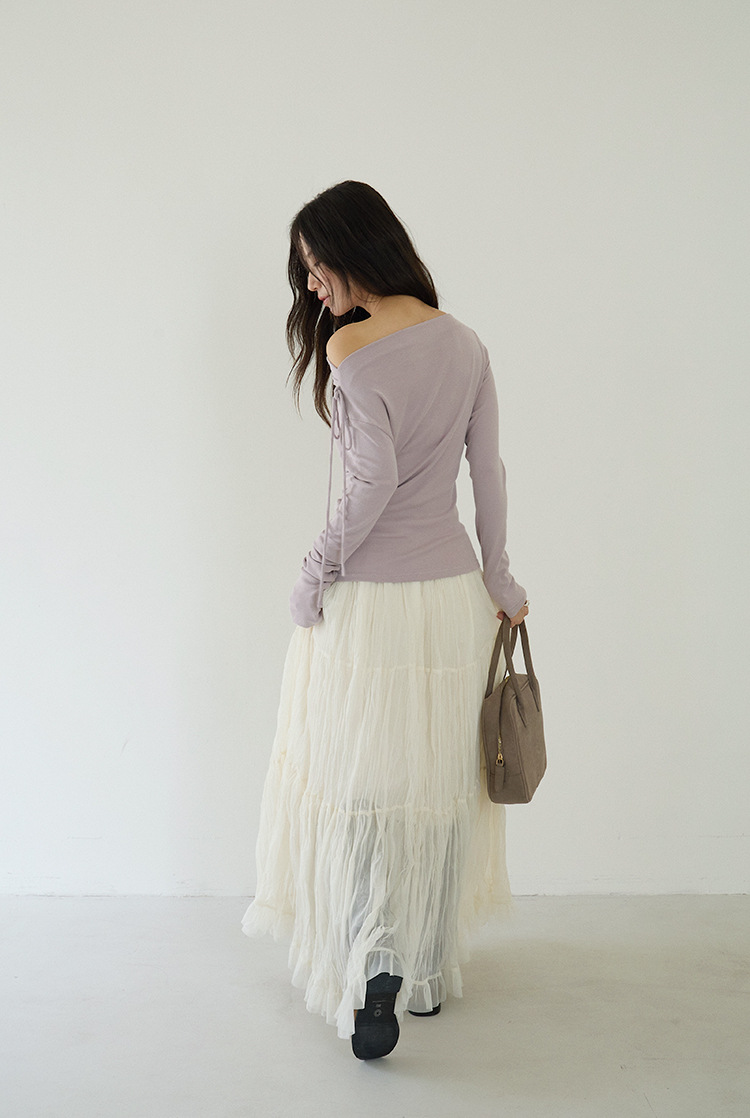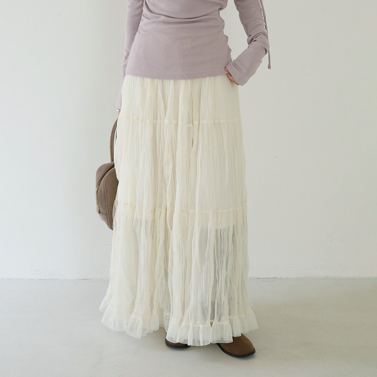 【LD3180】實拍法式個性網紗肌理褶皺高腰A字裙250908