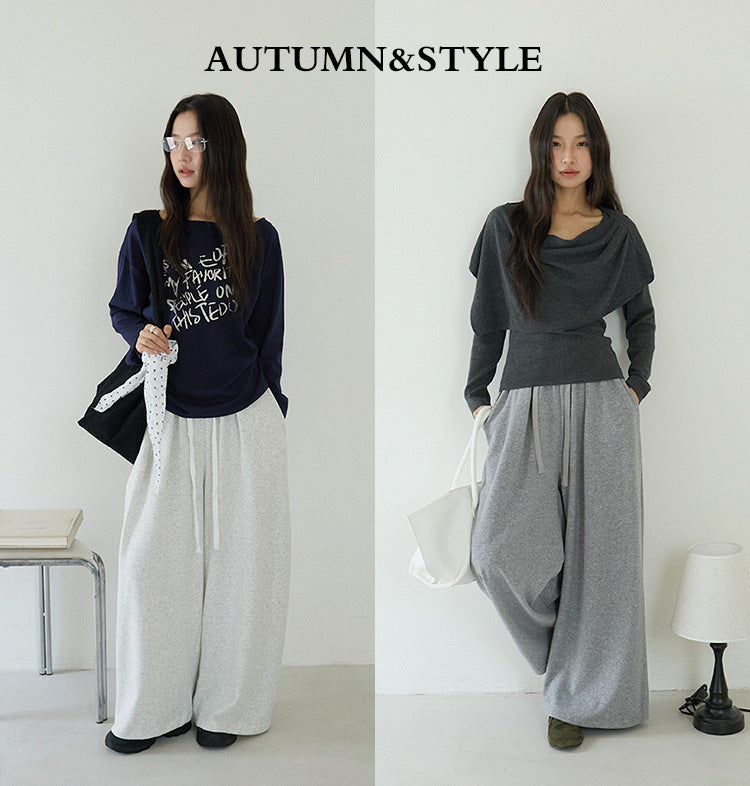【LD3181】實拍韓系舒適慵懶鬆緊腰廓形衞褲250908
