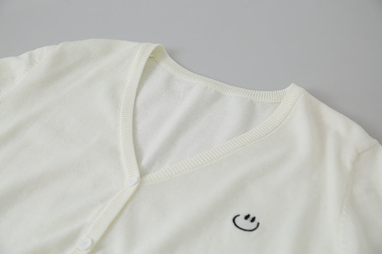 【LD3188】實拍初秋刺繡笑臉氣質針織外套(含羊毛6%) 250922