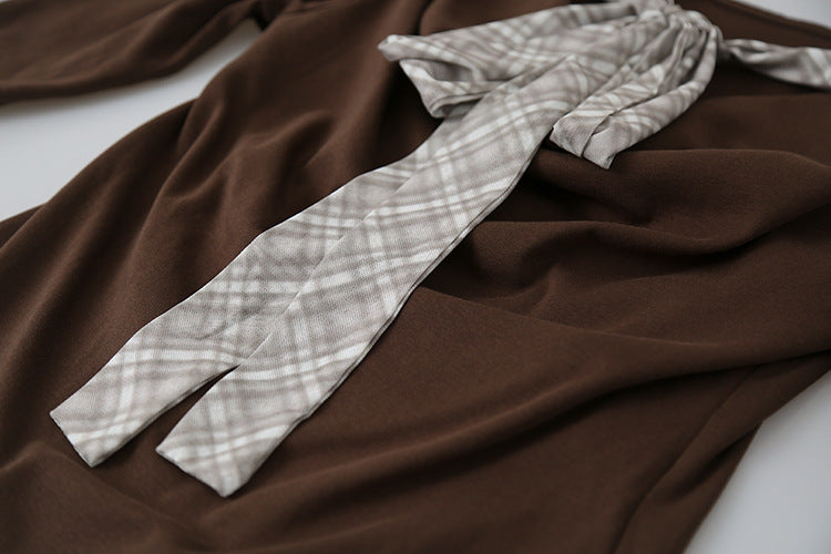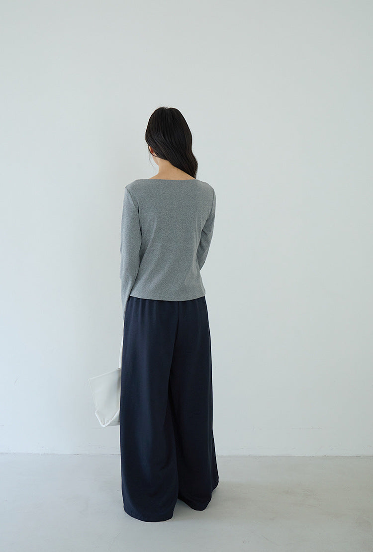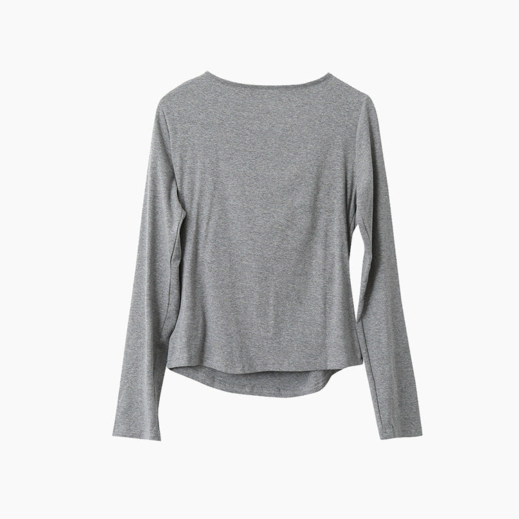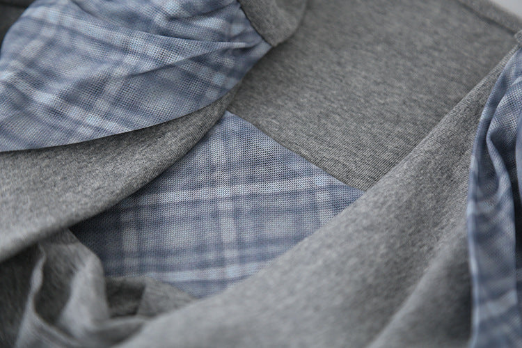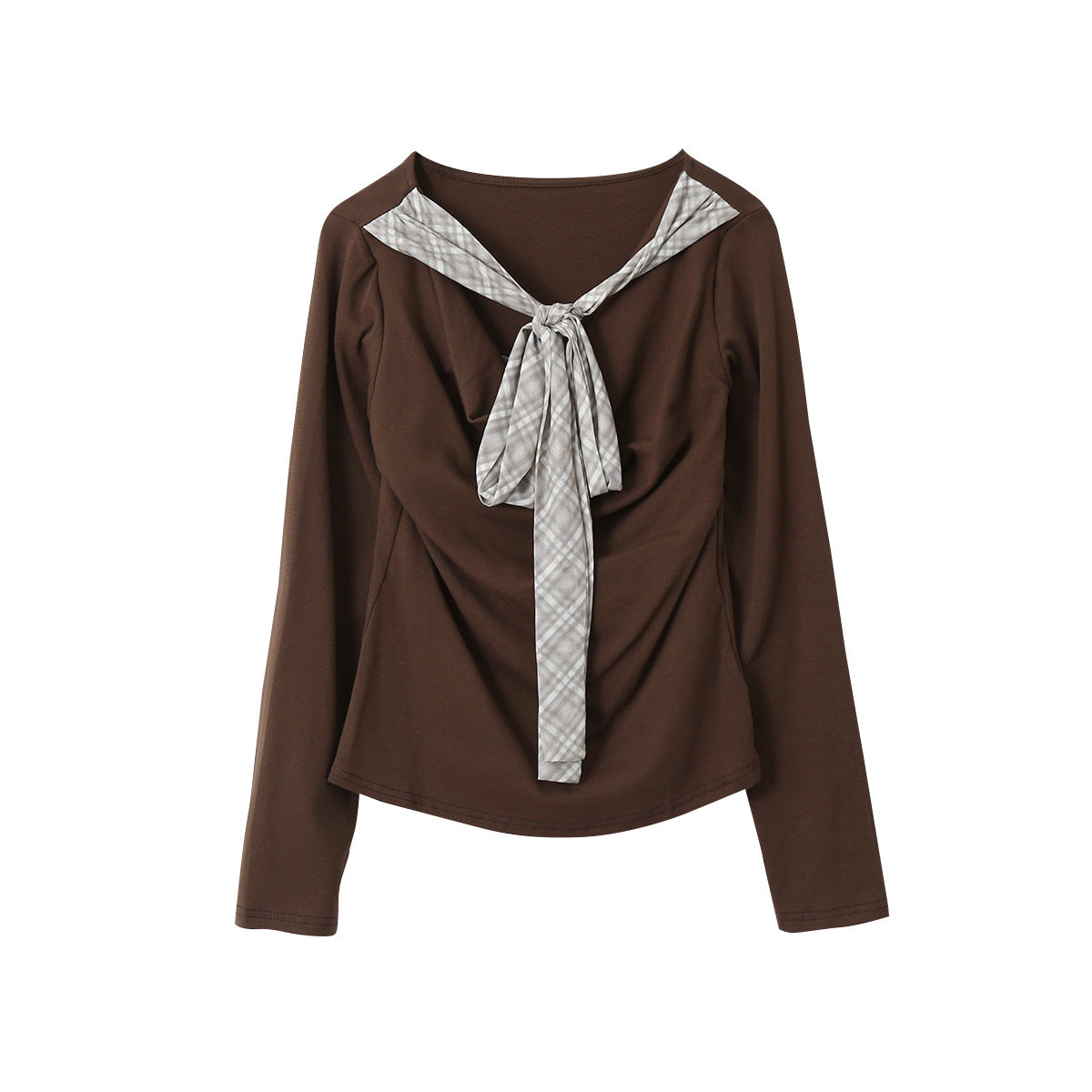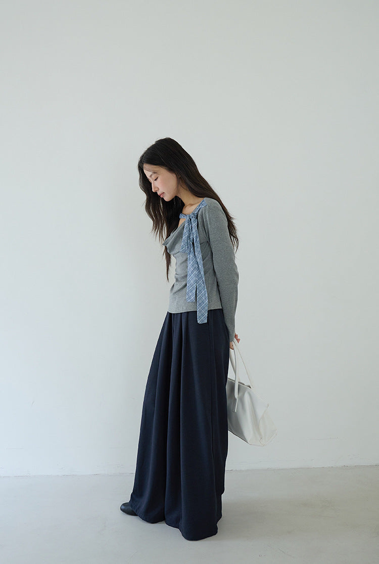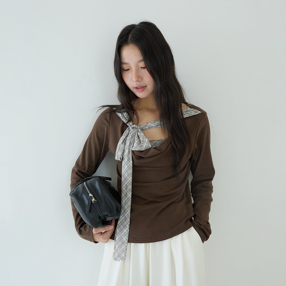 【LD3192】實拍法式菱格飄帶假兩件蕩領T恤250922