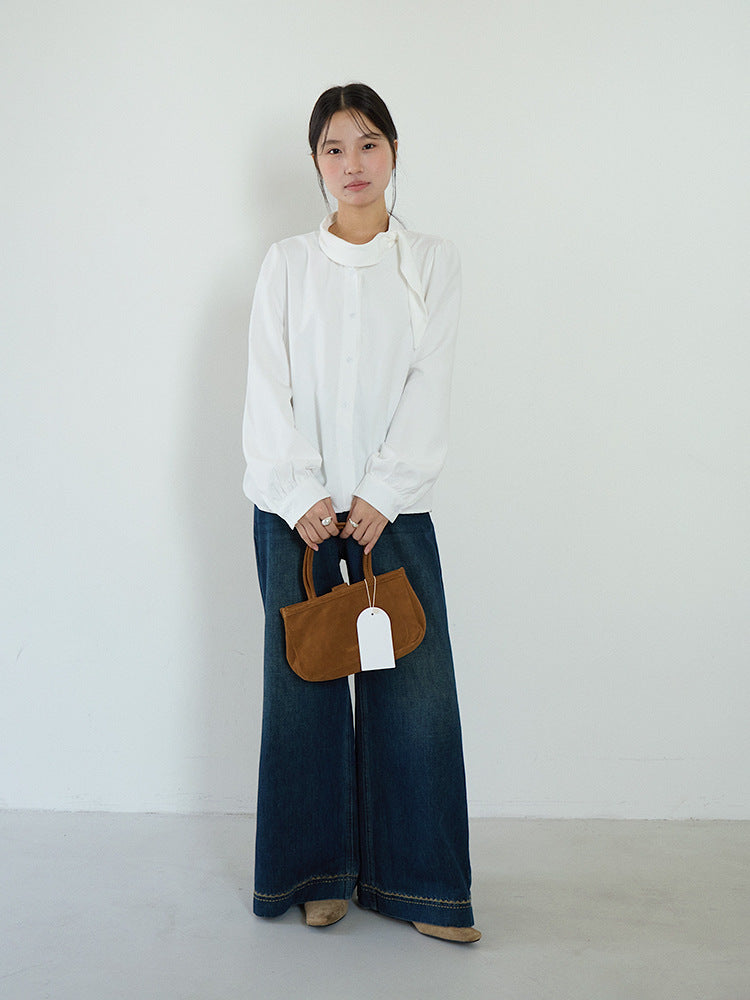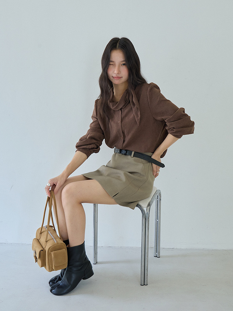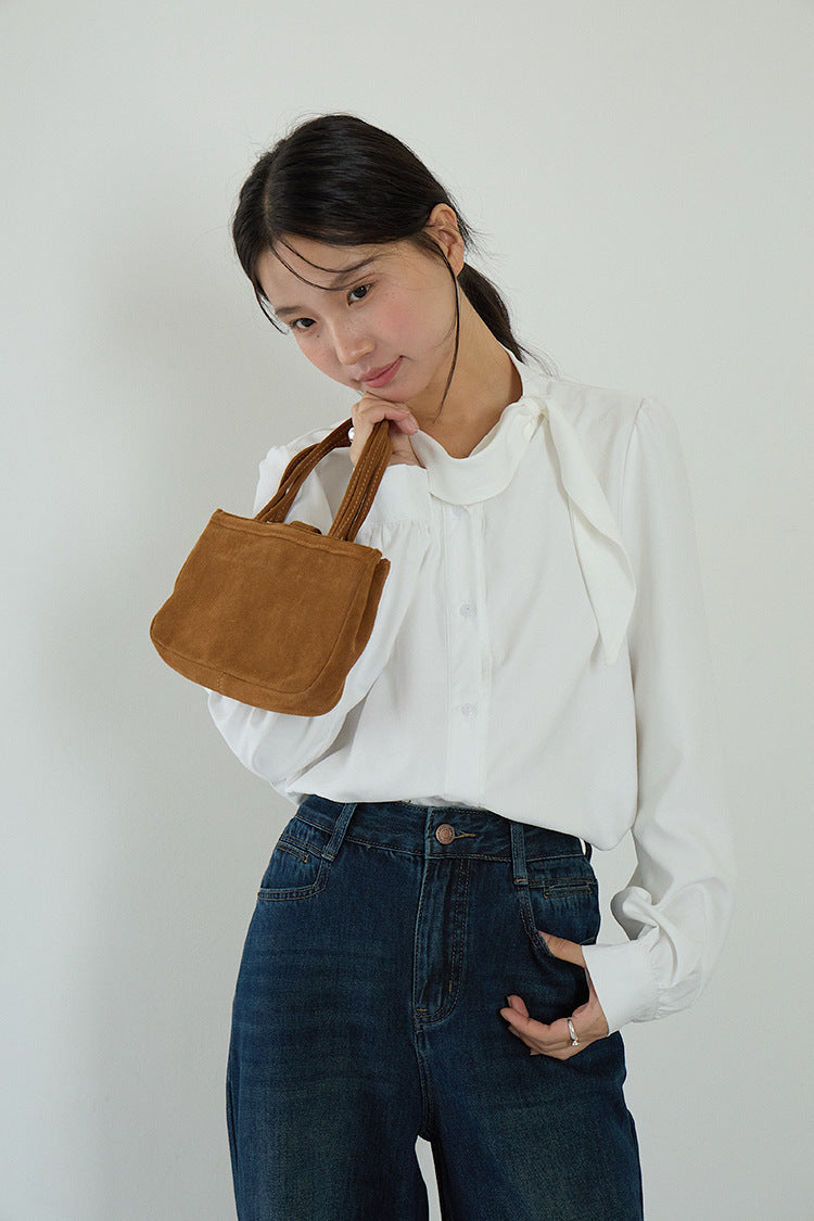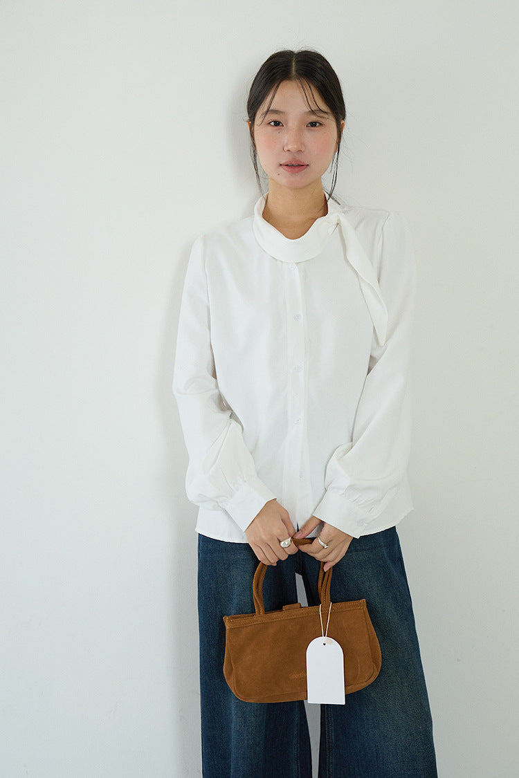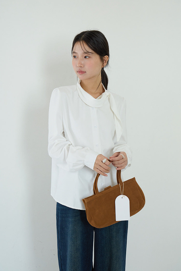【LD3194】實拍法式氣質麂皮絨小眾圍巾領長袖襯衫250922