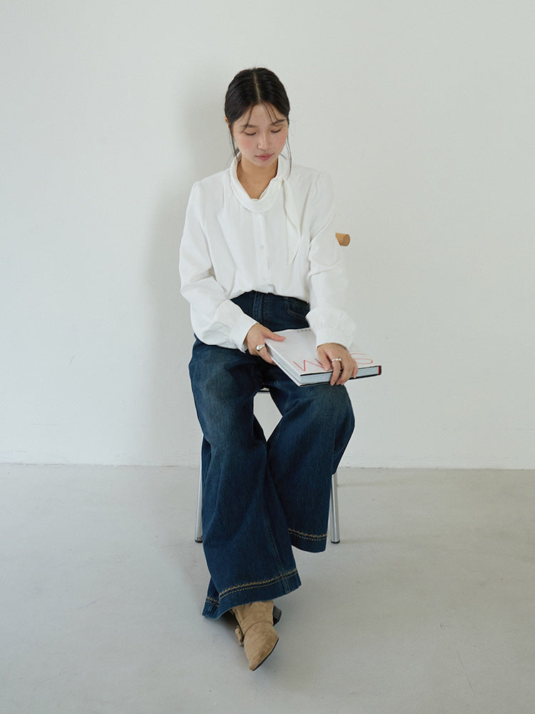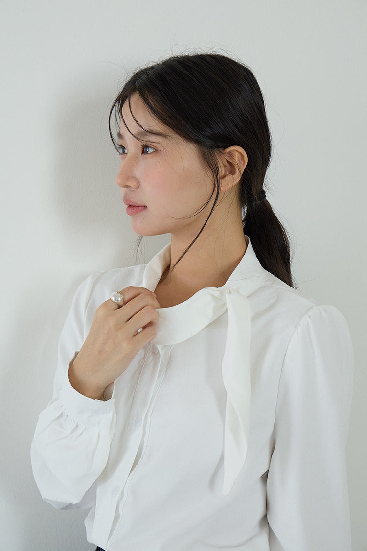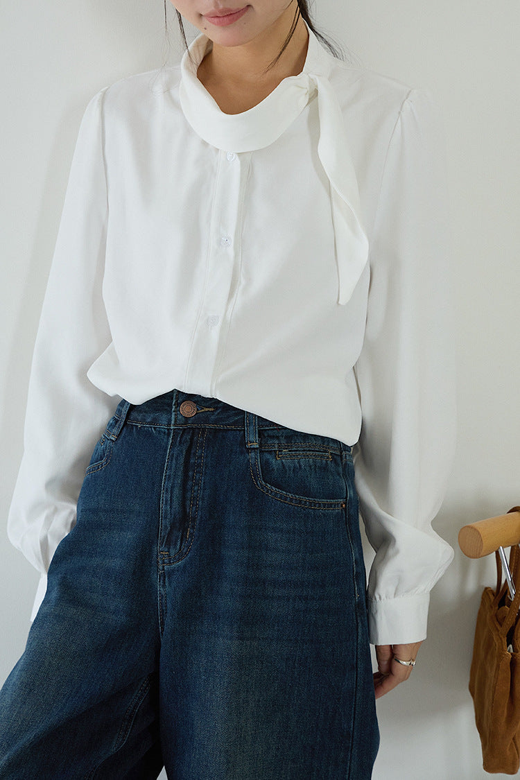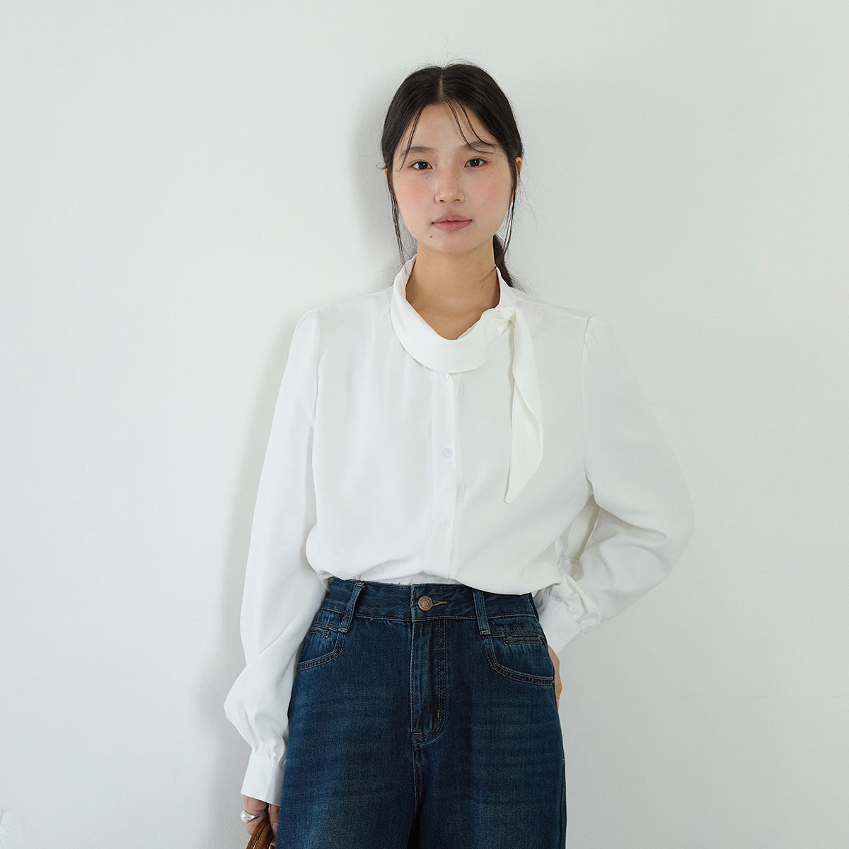 【LD3194】實拍法式氣質麂皮絨小眾圍巾領長袖襯衫250922