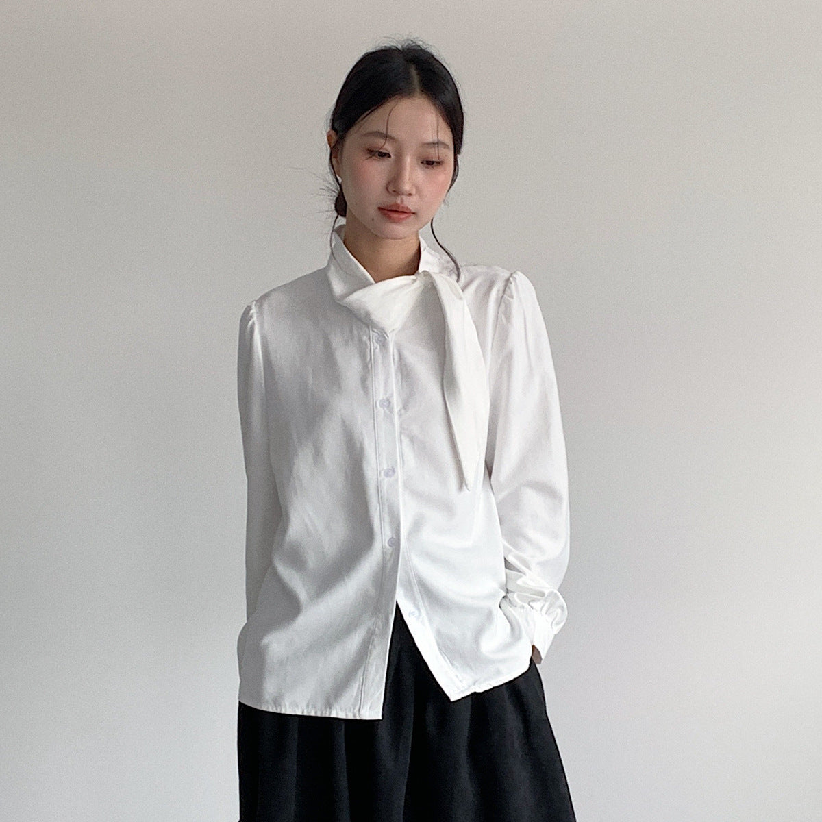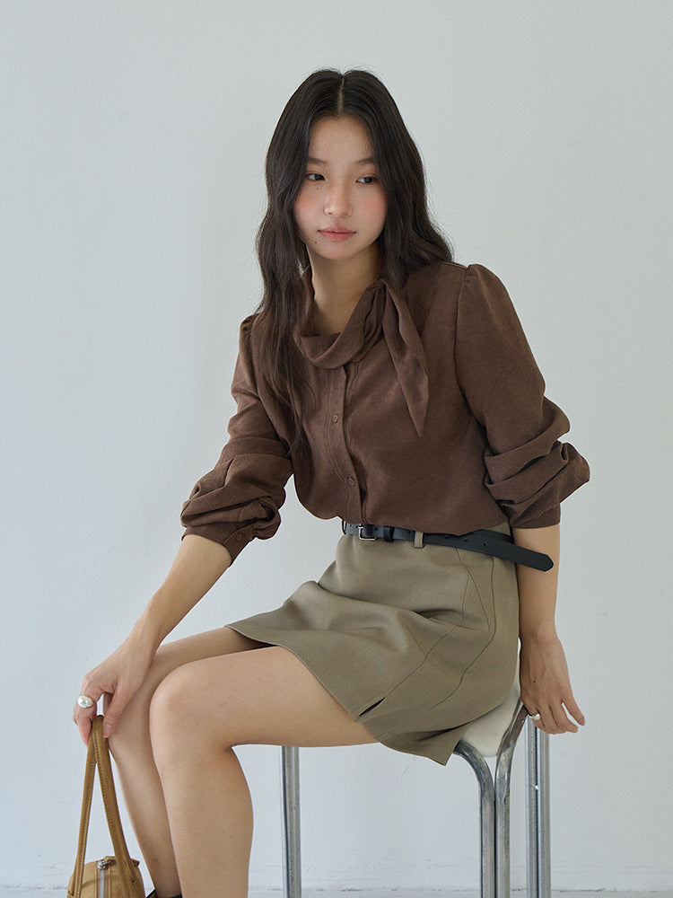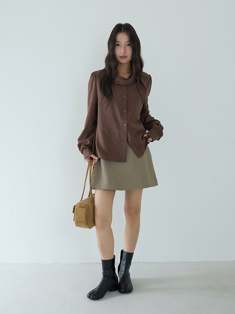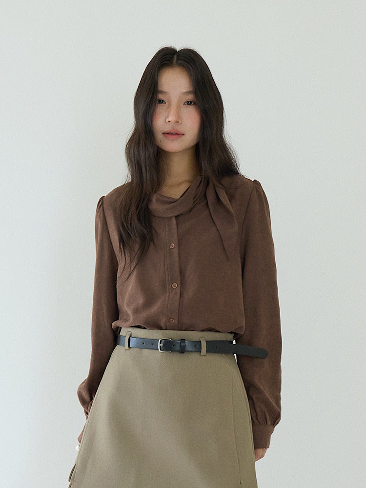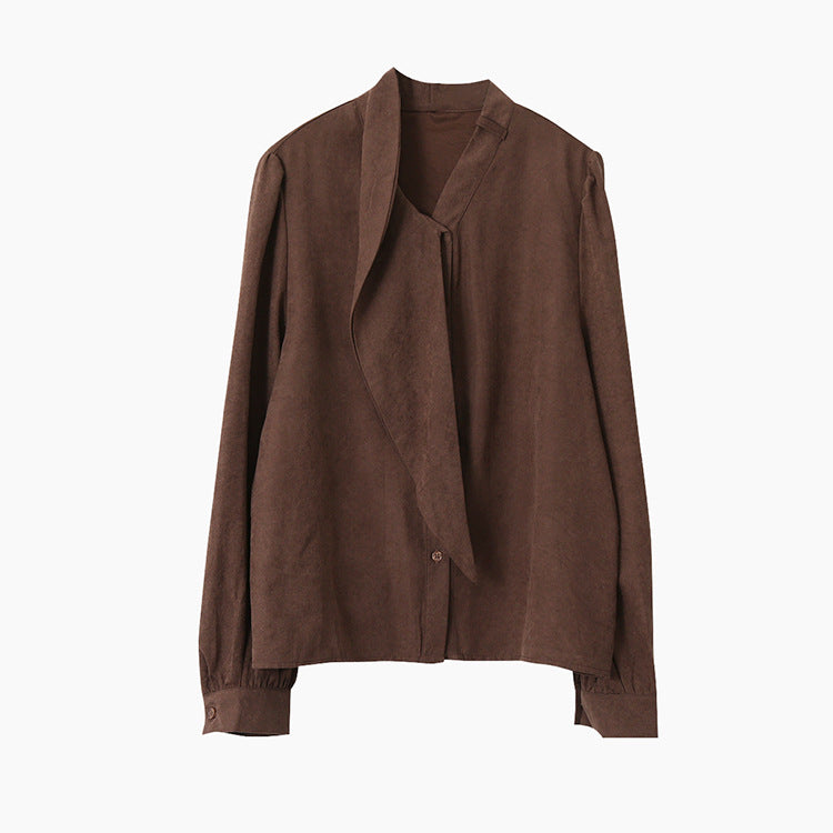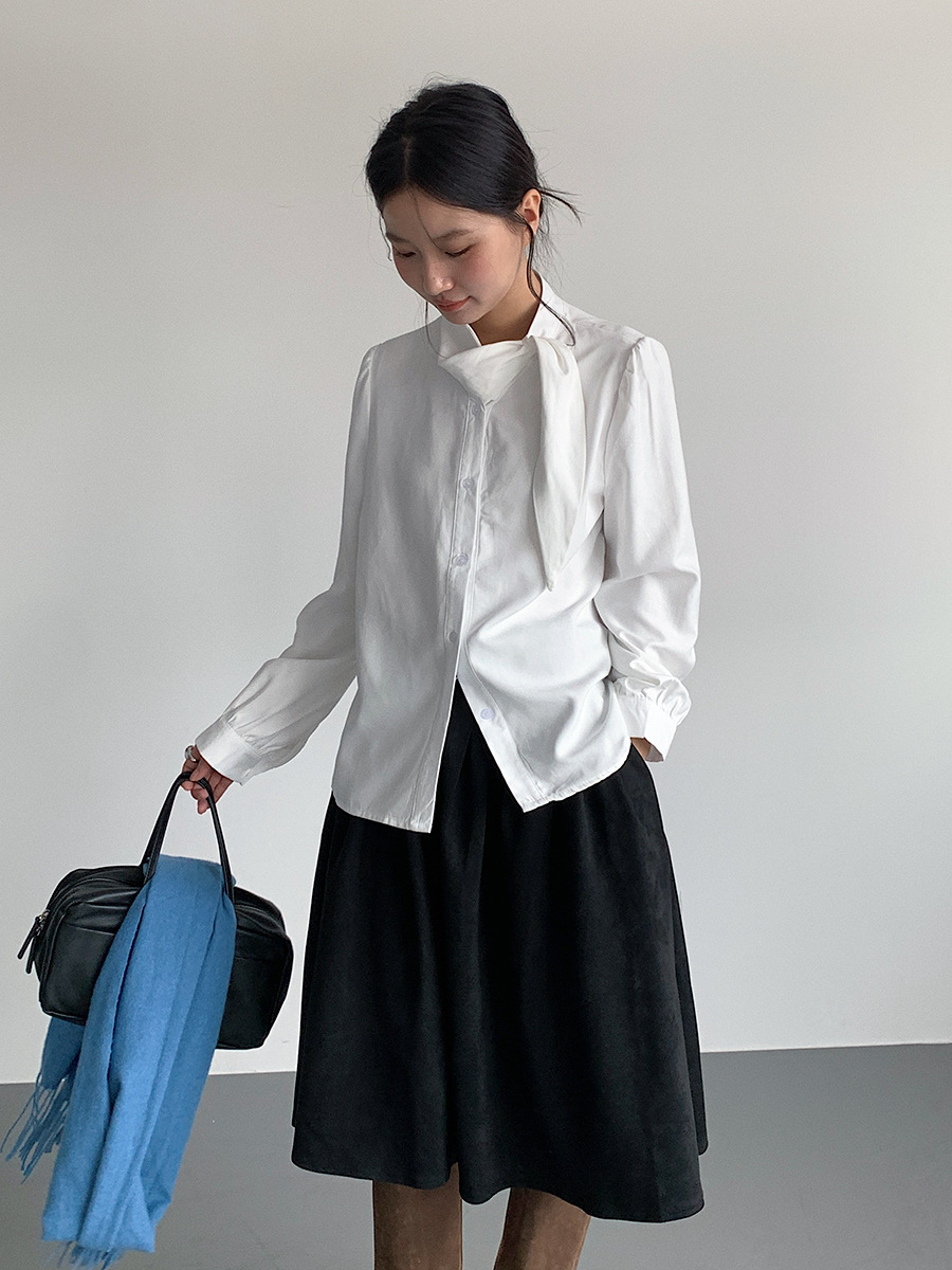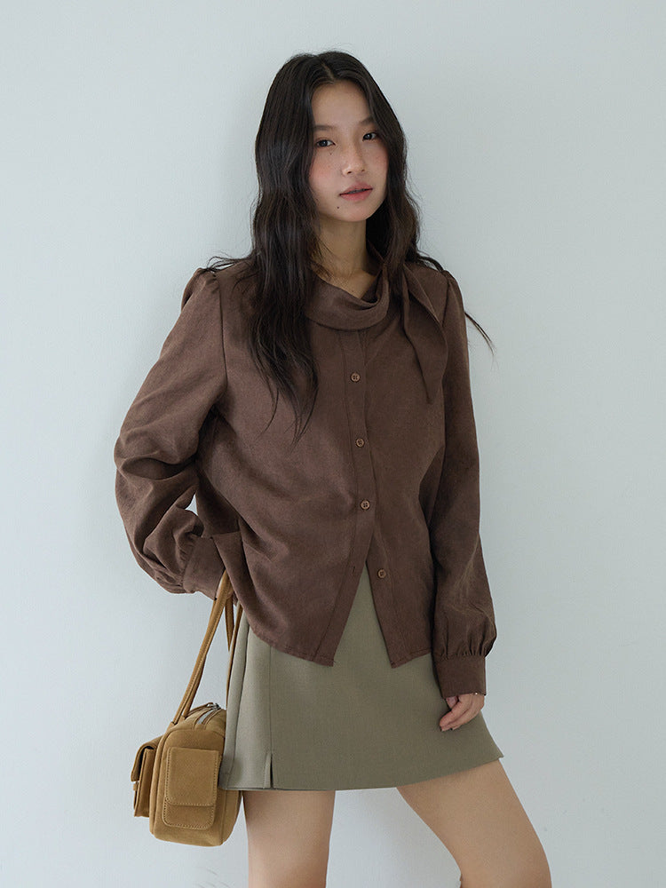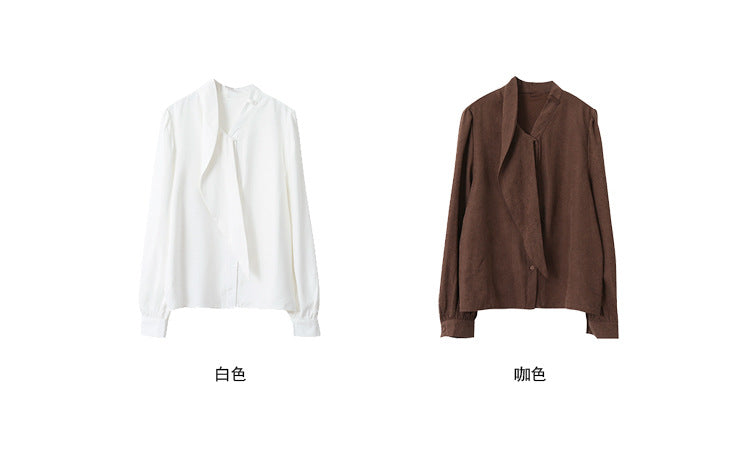 【LD3194】實拍秋冬個性立領飄帶襯衫251110