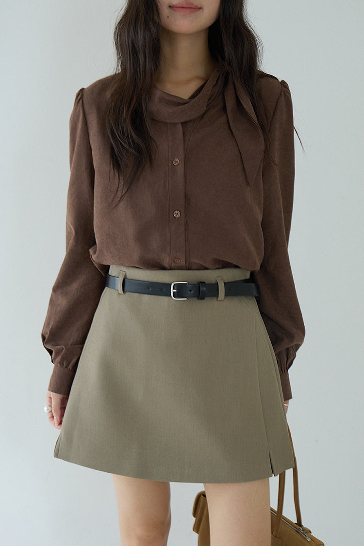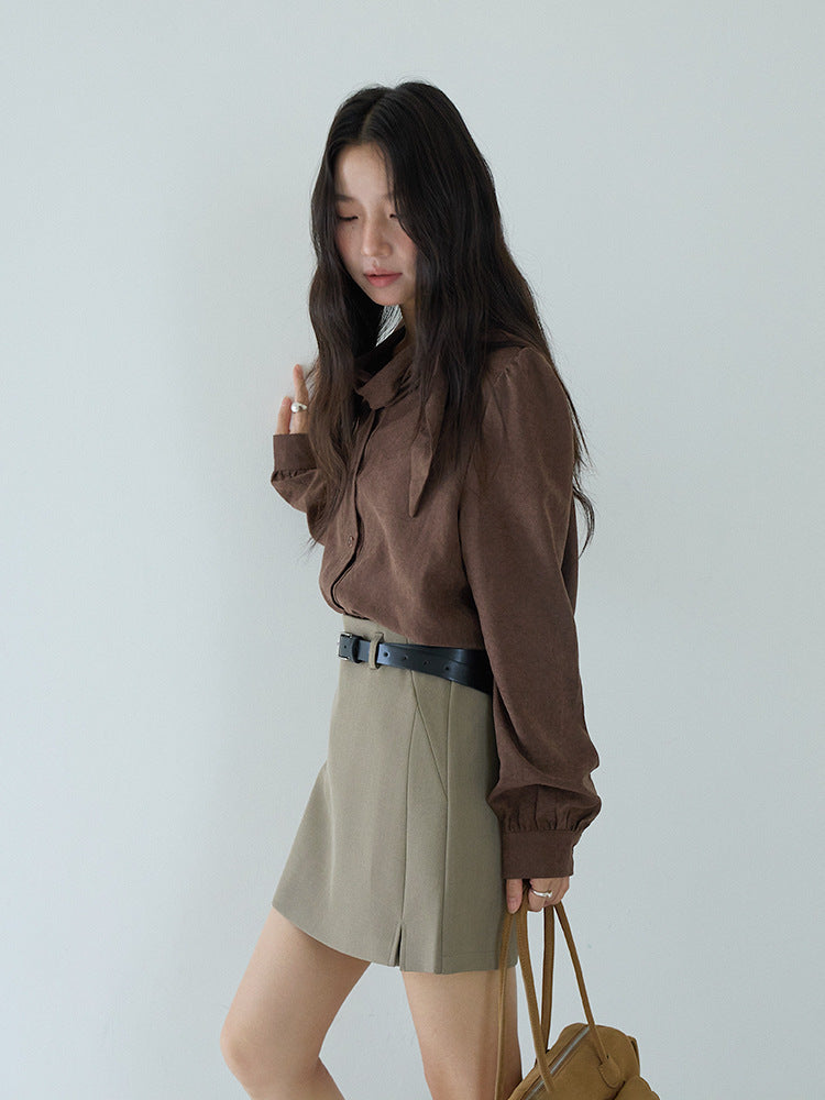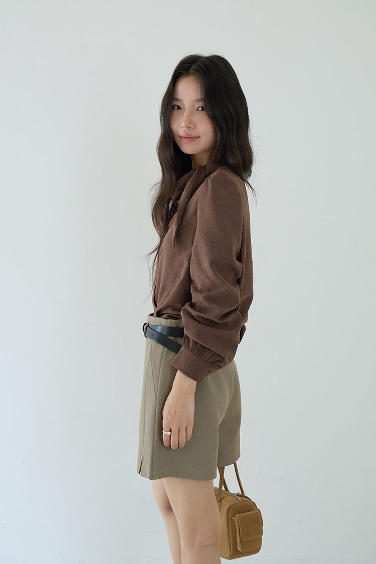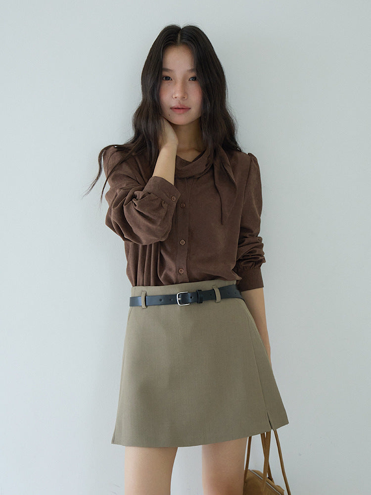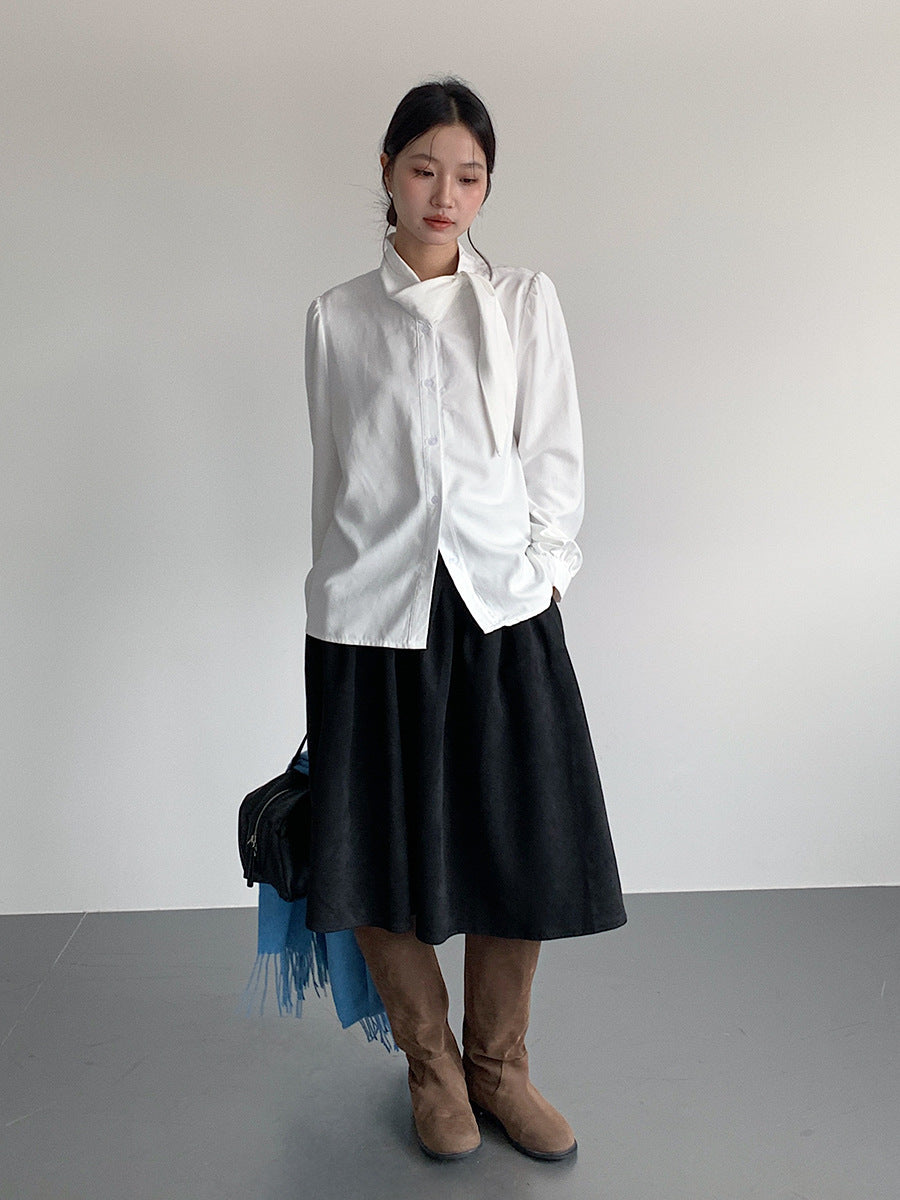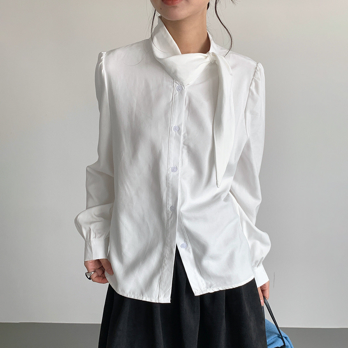 【LD3194】實拍秋冬個性立領飄帶襯衫251110