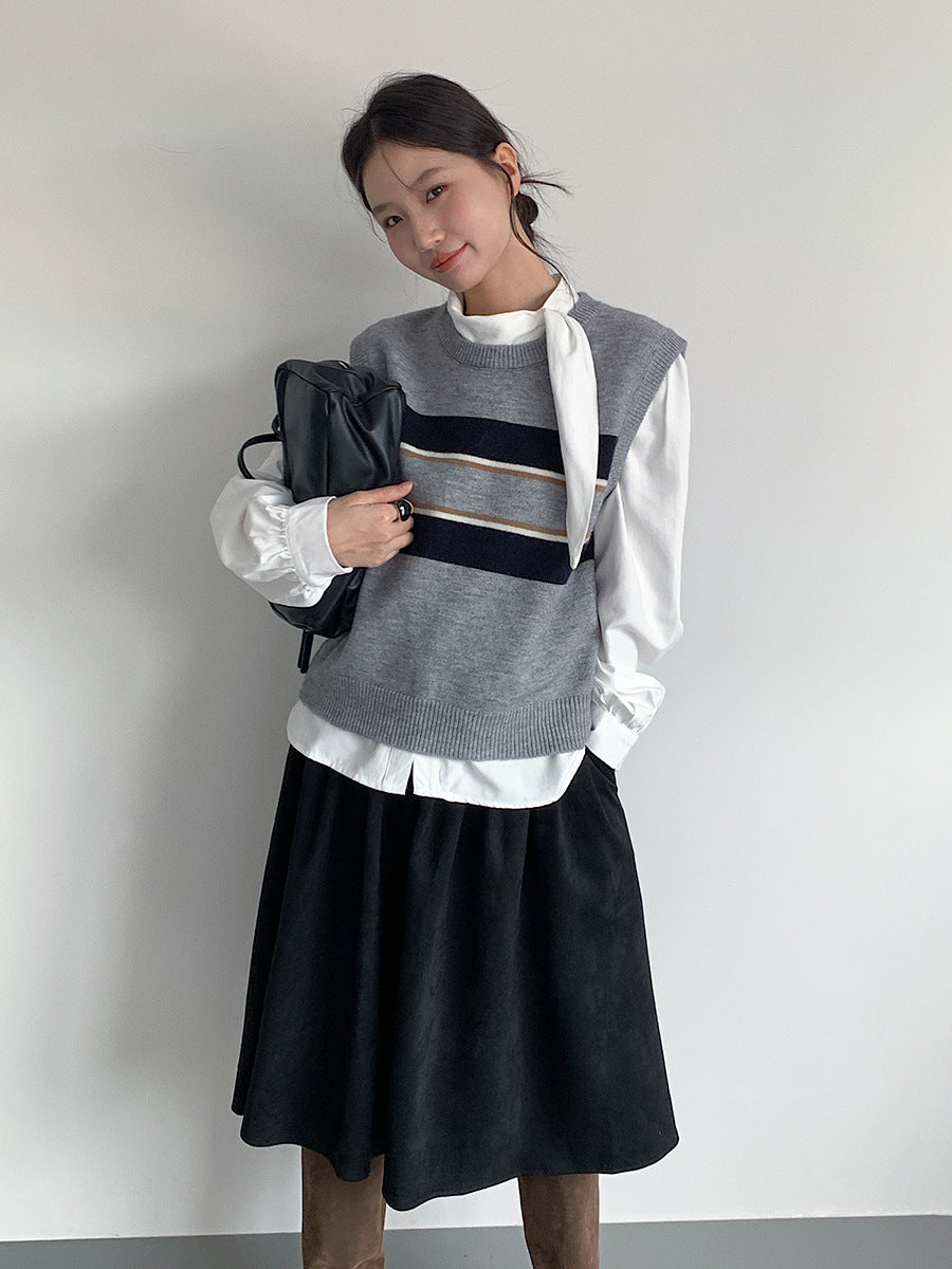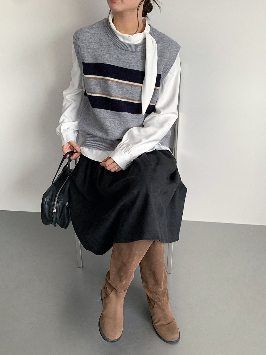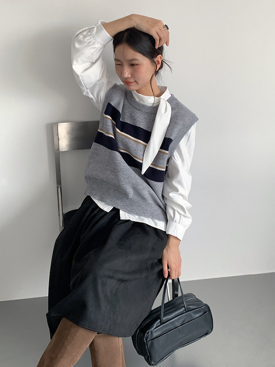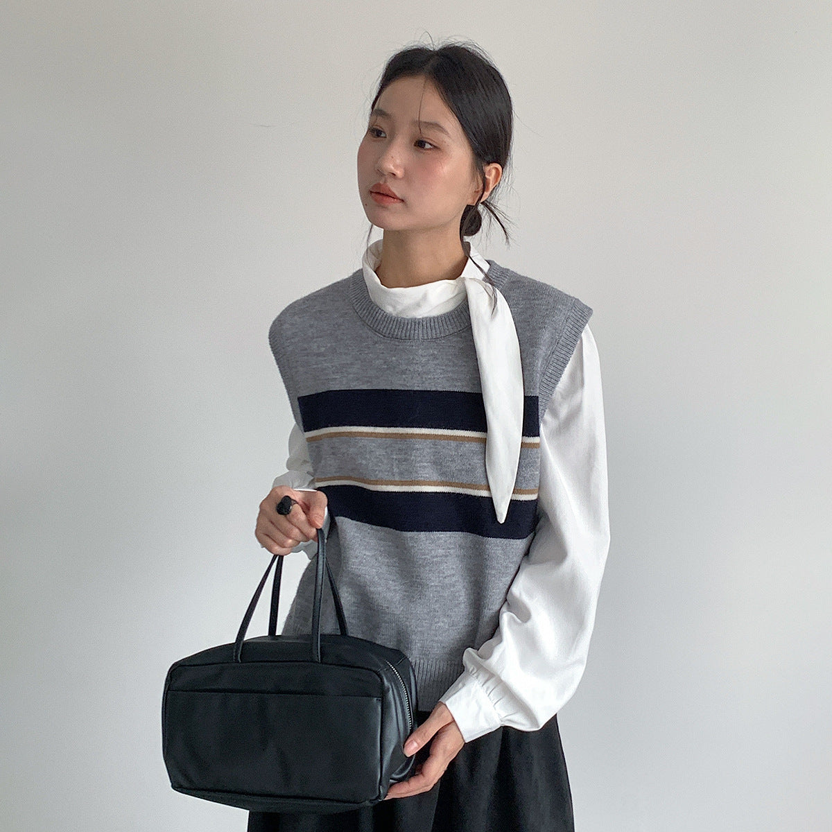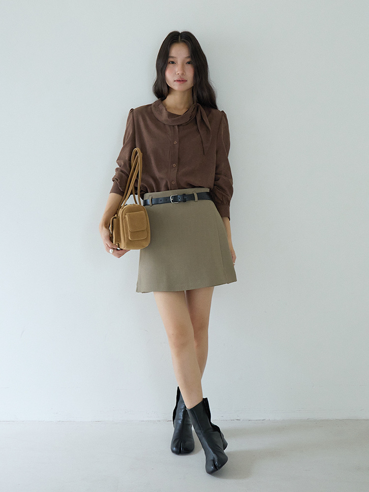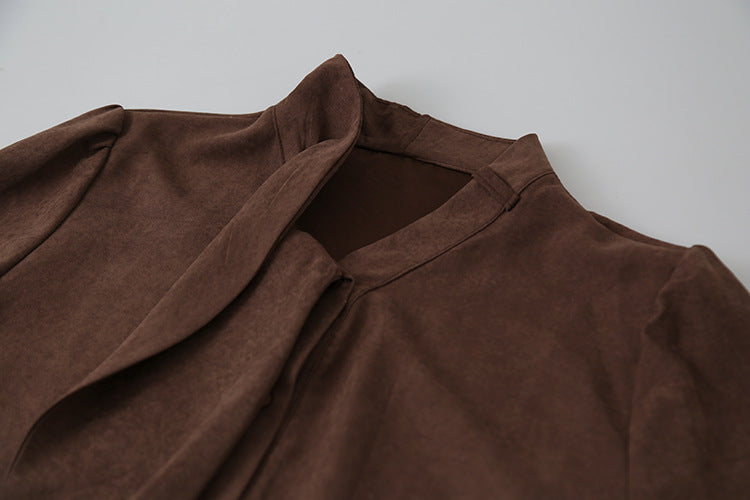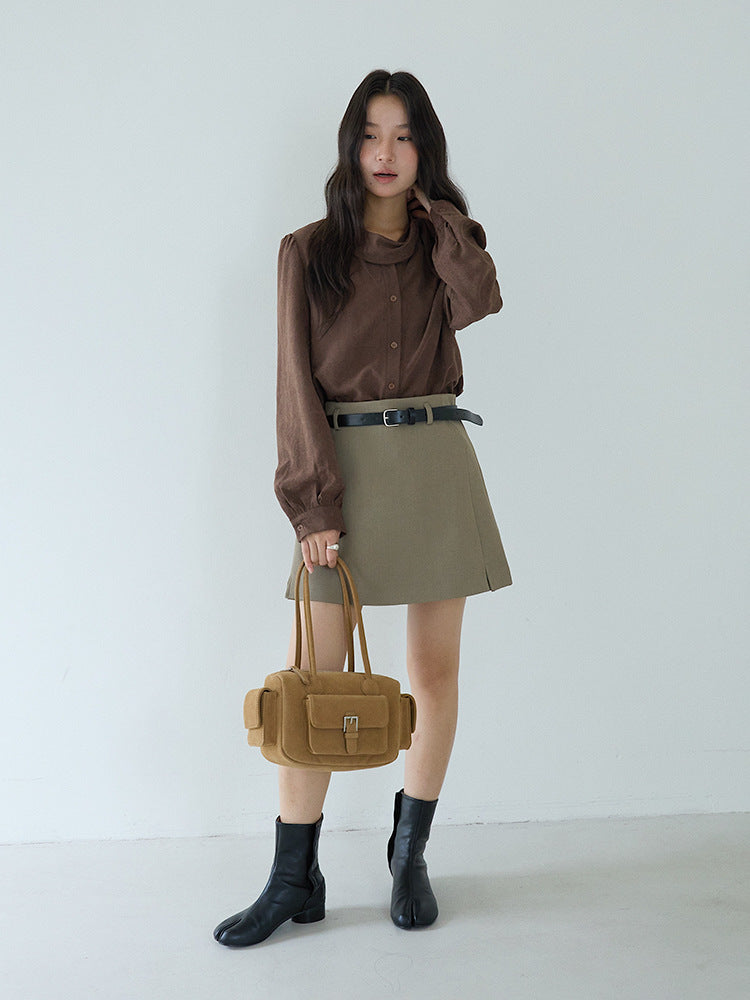 【LD3194】實拍秋冬個性立領飄帶襯衫251110