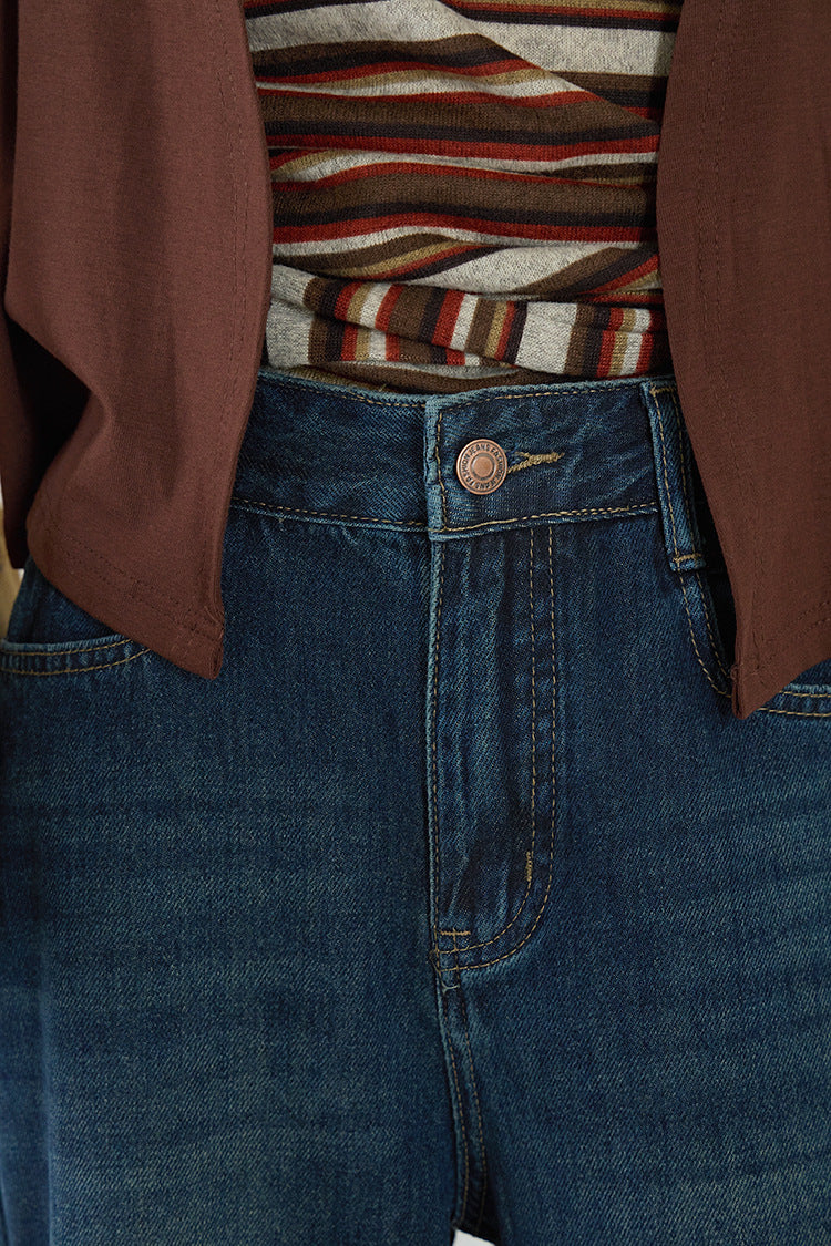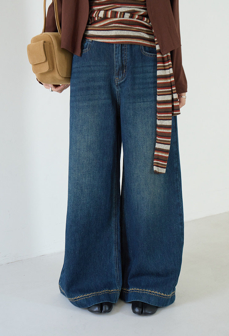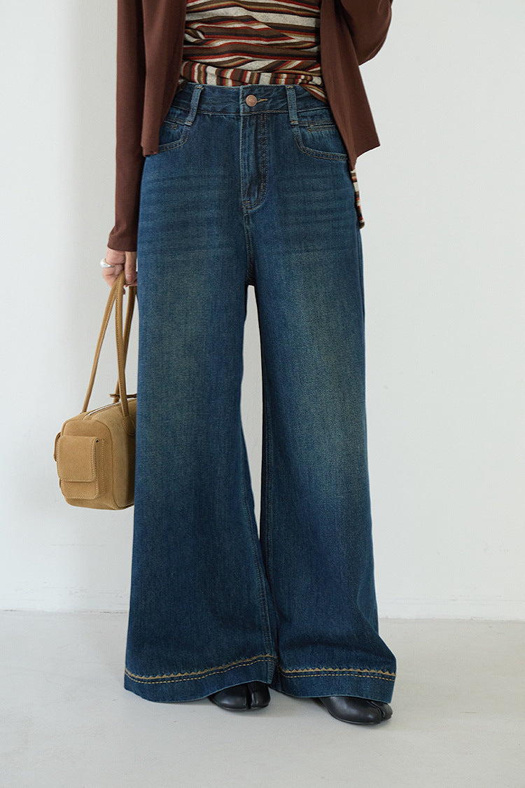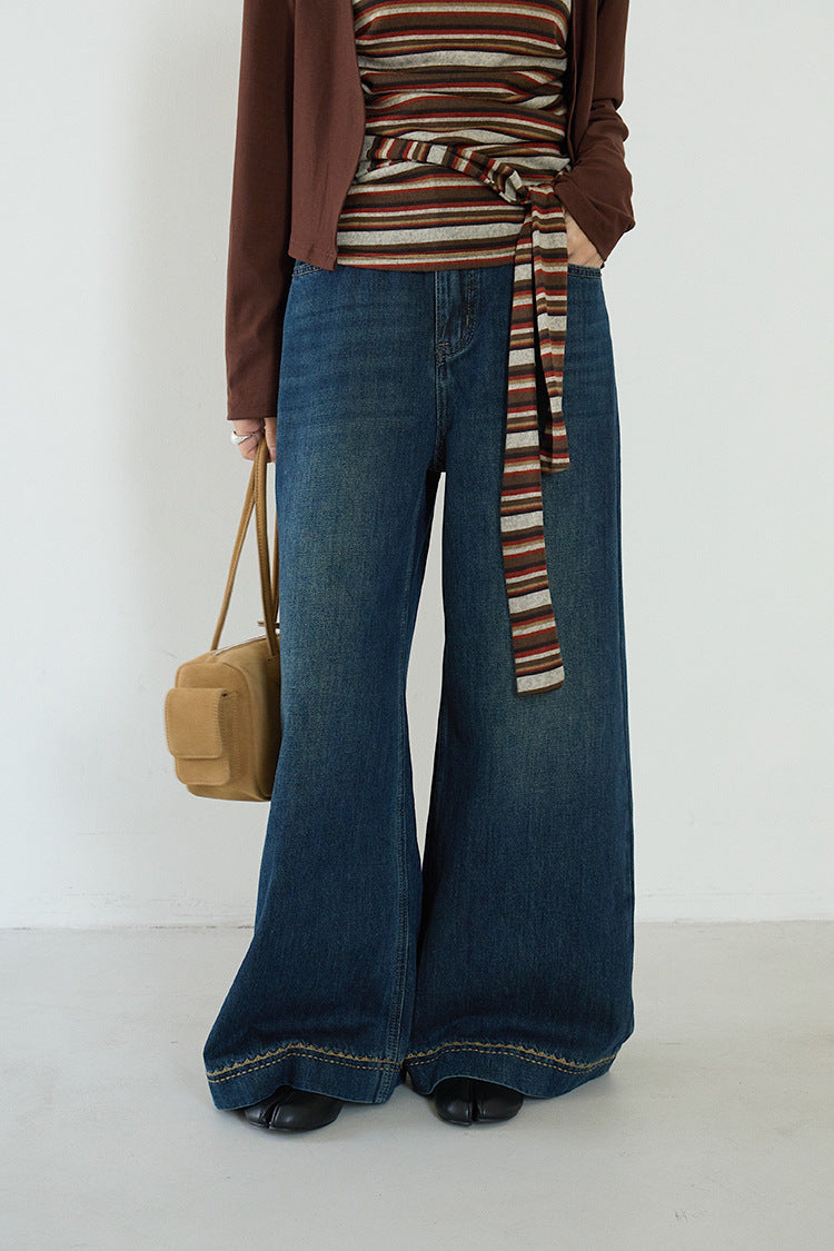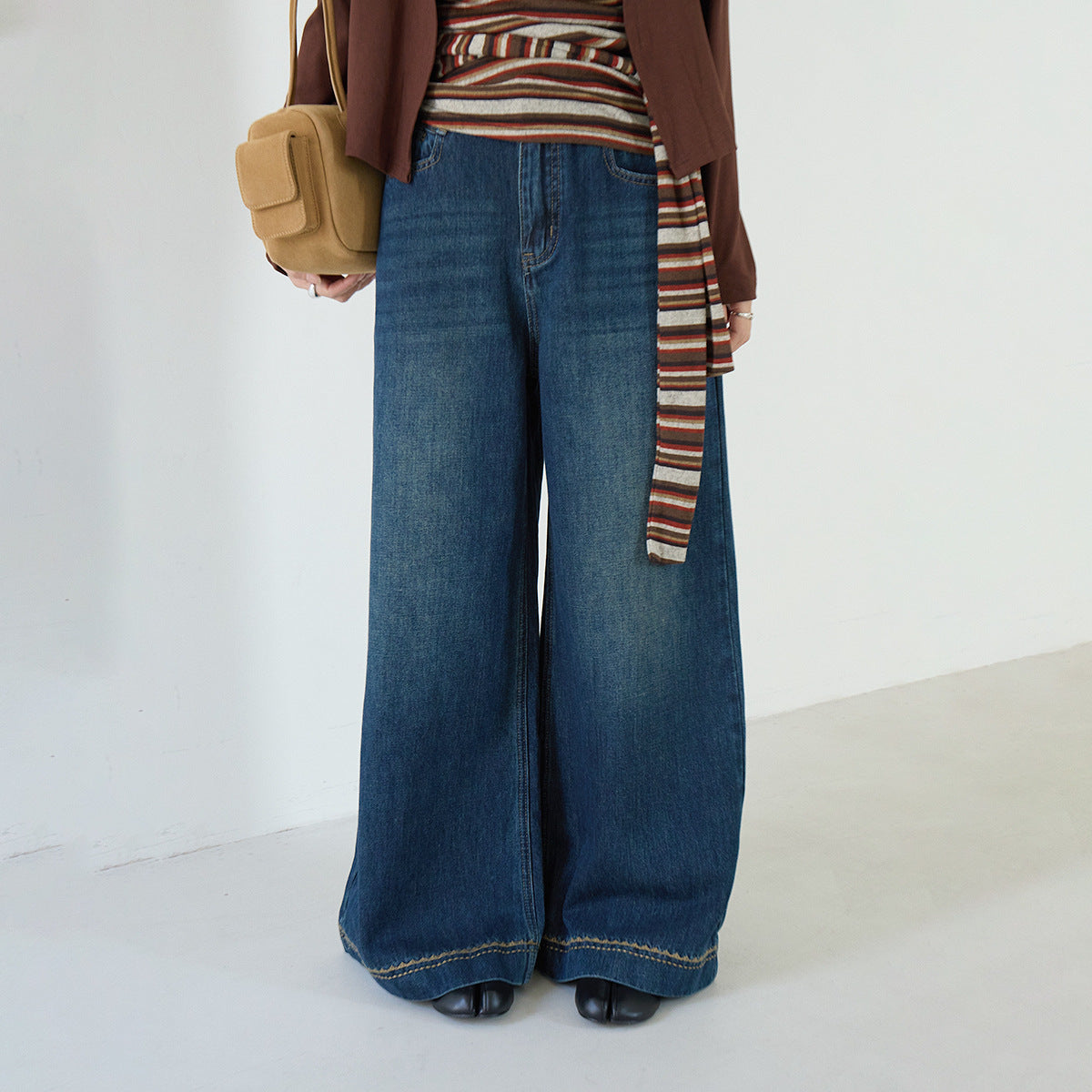 【LD3201】實拍S~XL秋冬高腰闊腿漂亮微喇牛仔褲250922