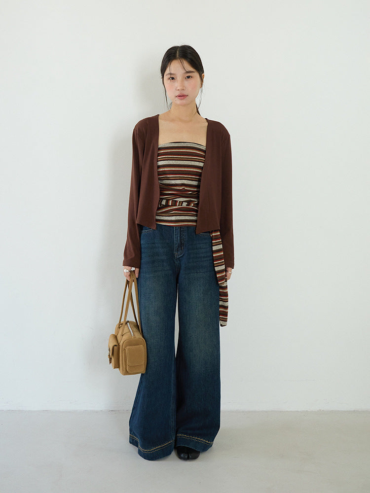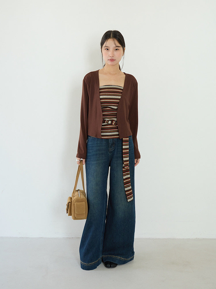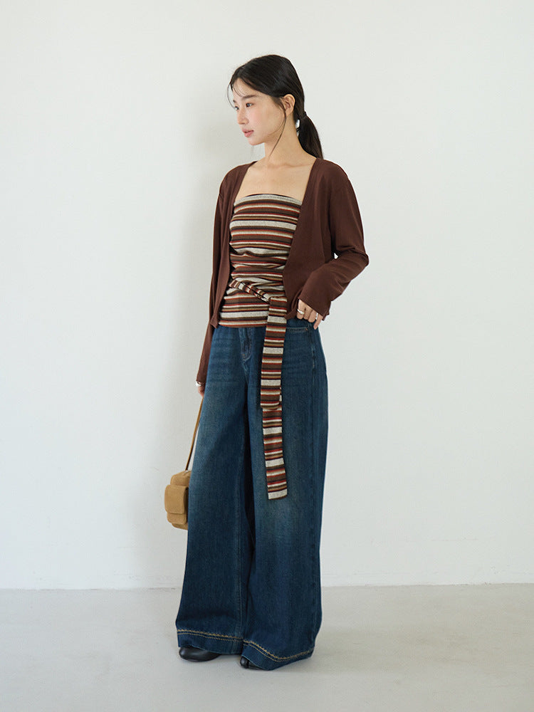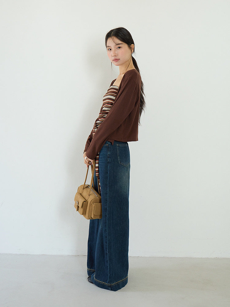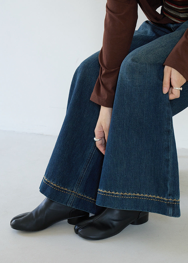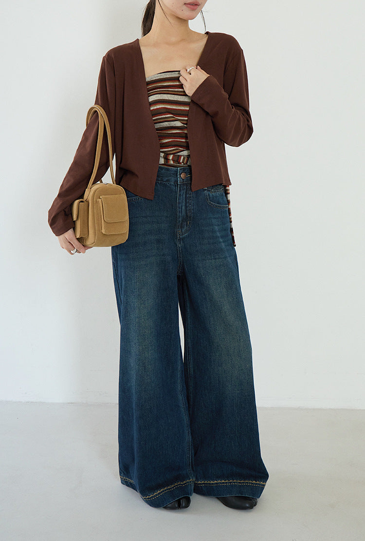 【LD3201】實拍S~XL秋冬高腰闊腿漂亮微喇牛仔褲250922