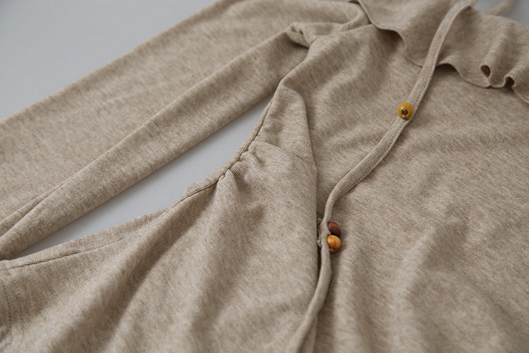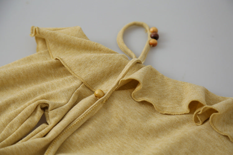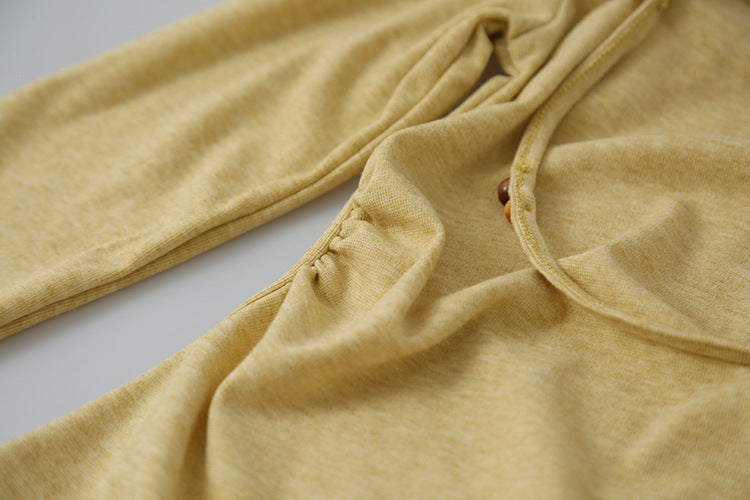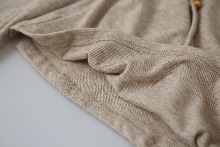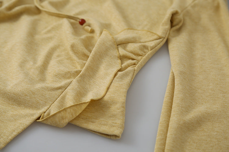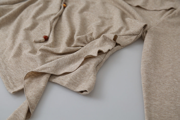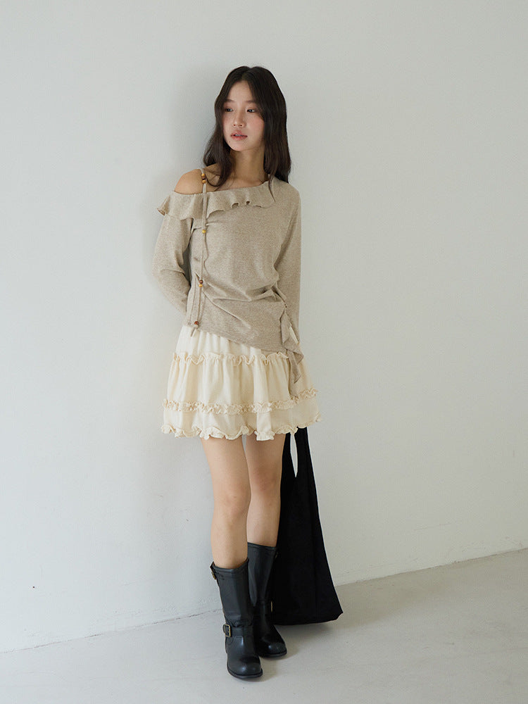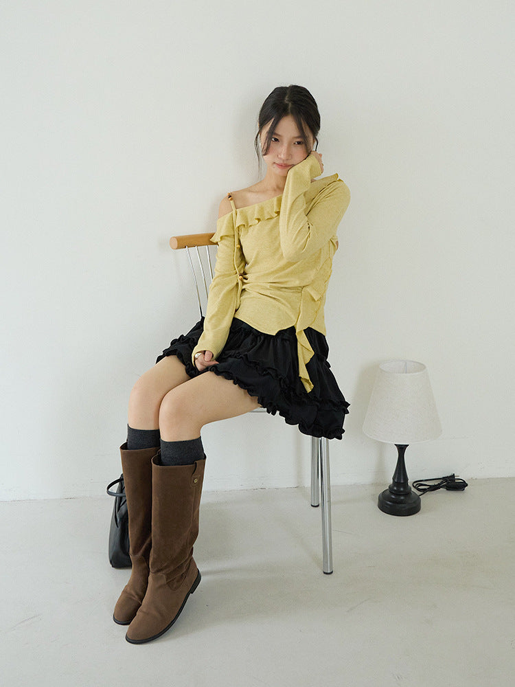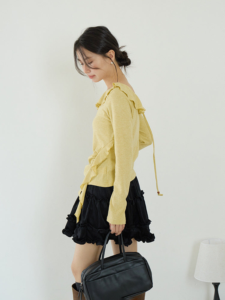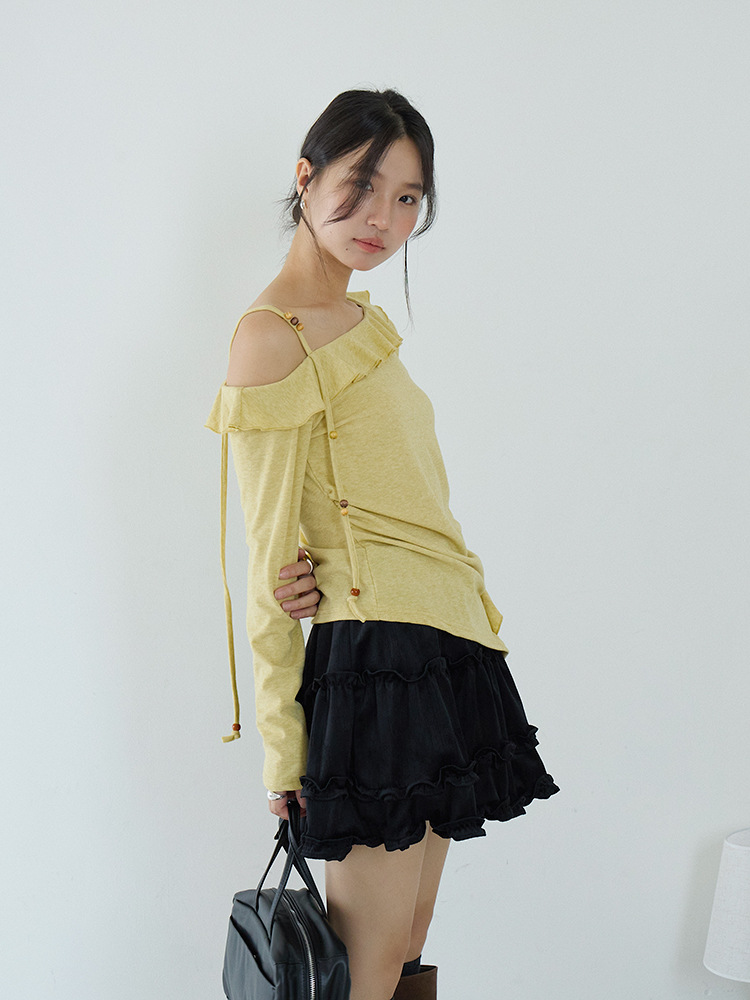 【LD3216】實拍斜肩小荷葉混紡棉長袖T恤250929