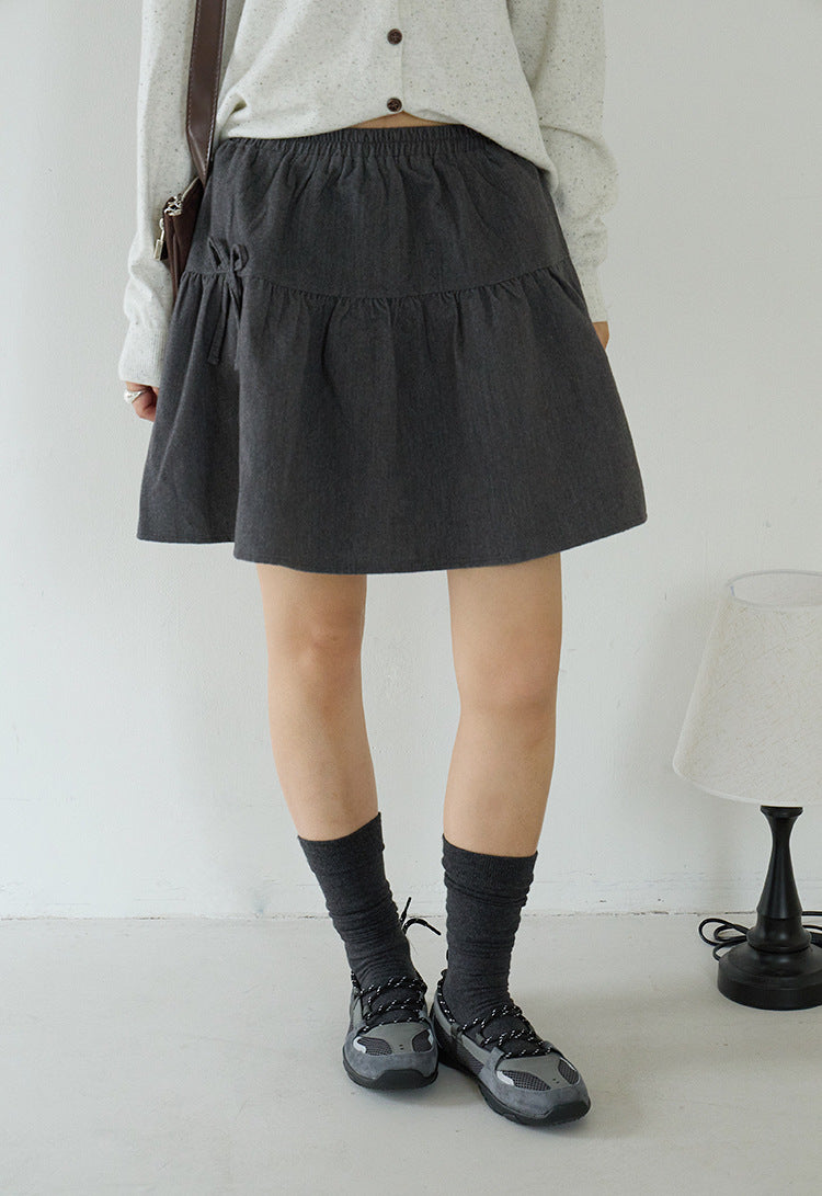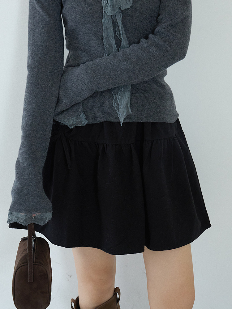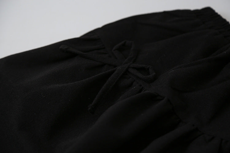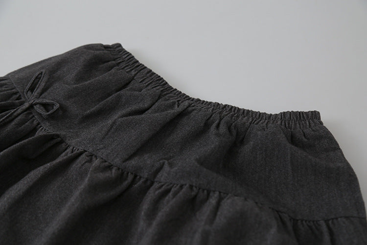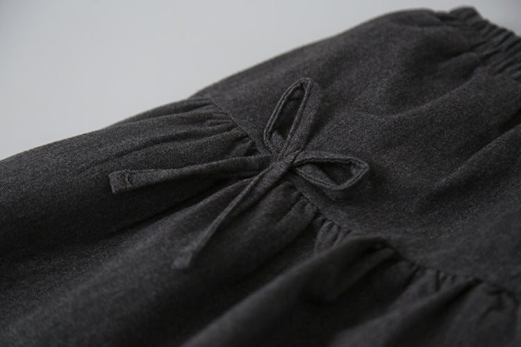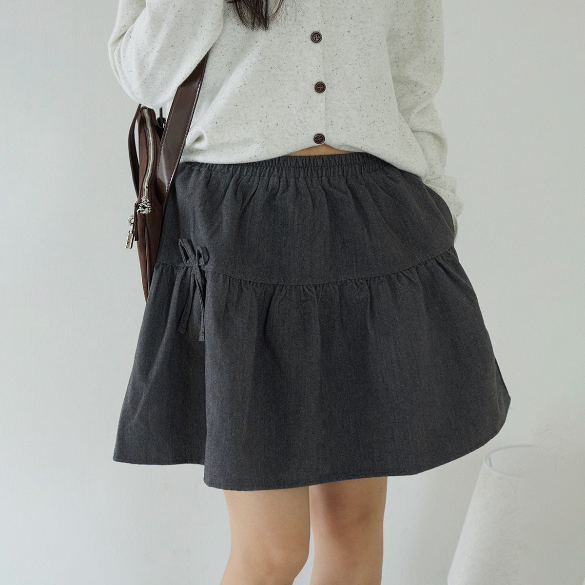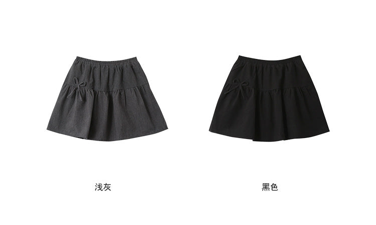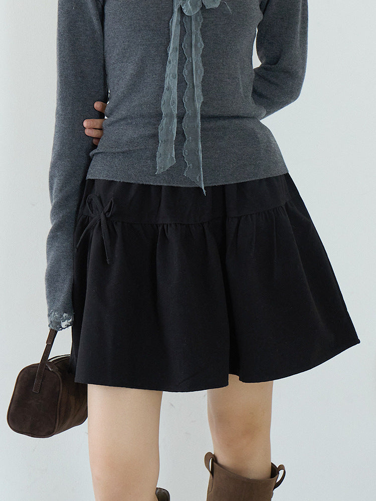 【LD3219】實拍蝴蝶結毛呢A字短裙250929
