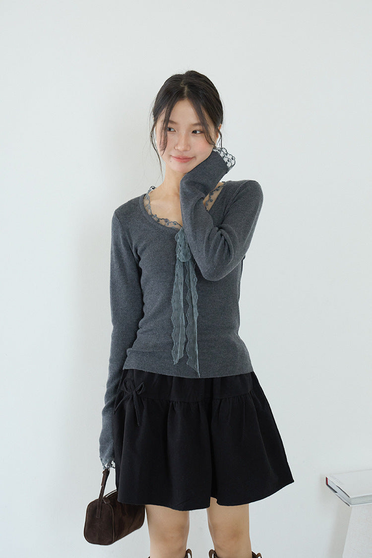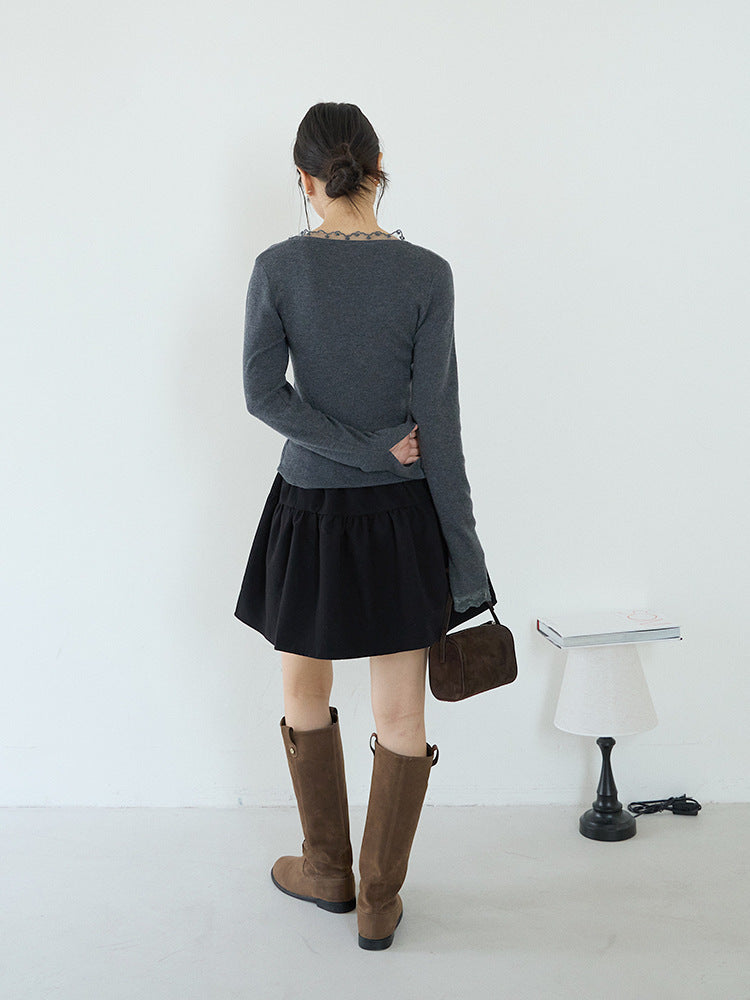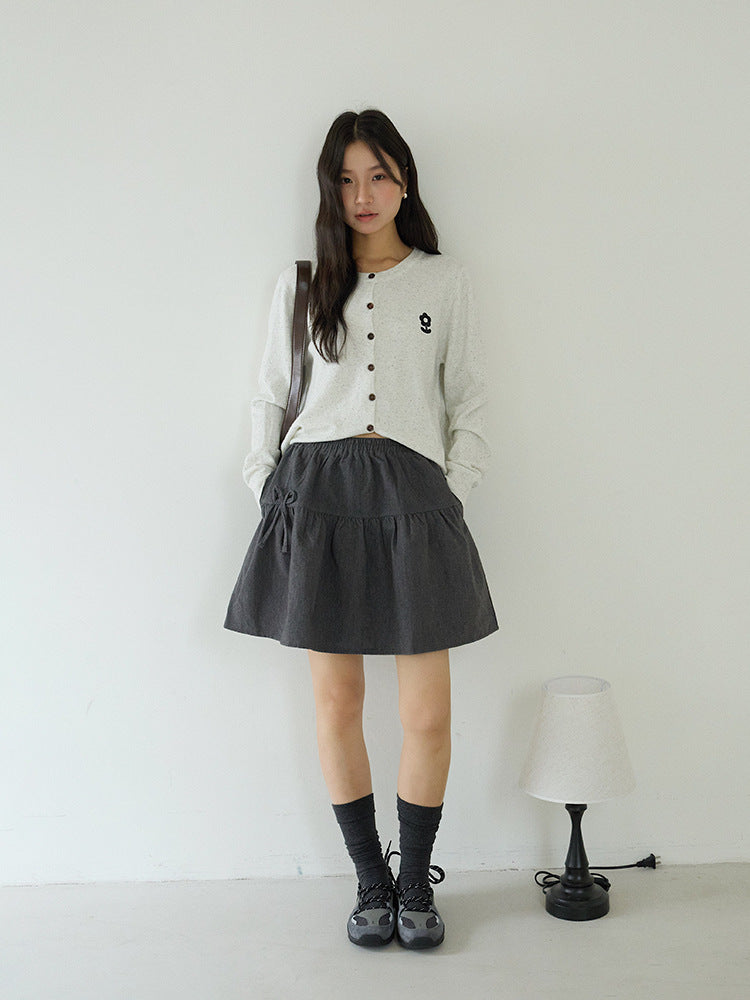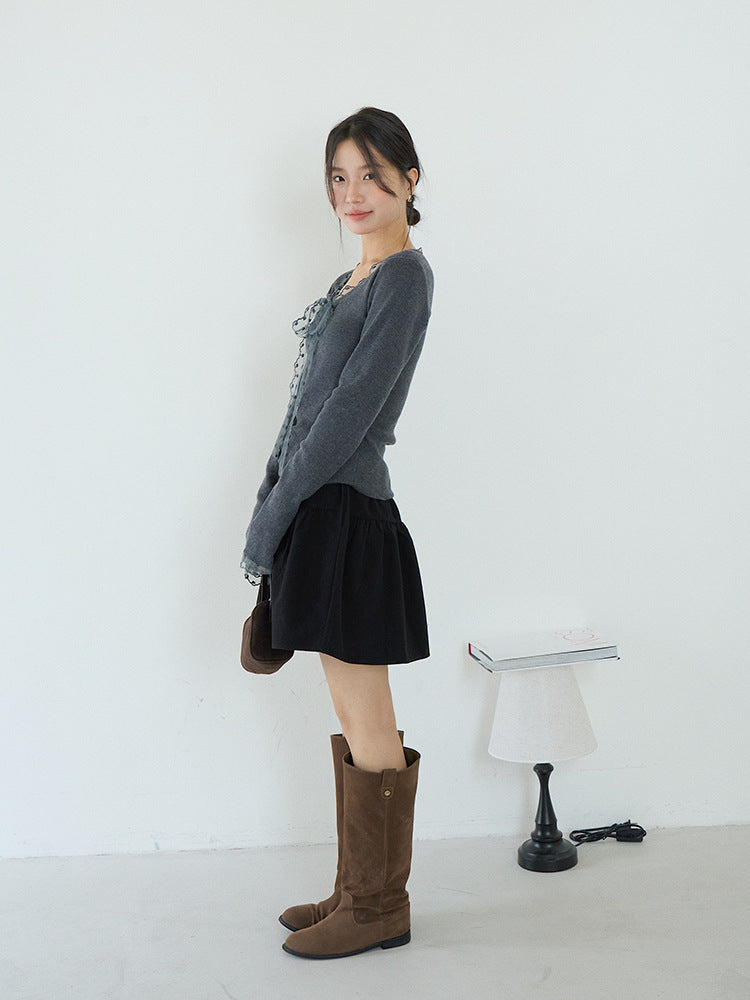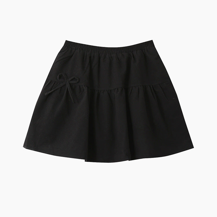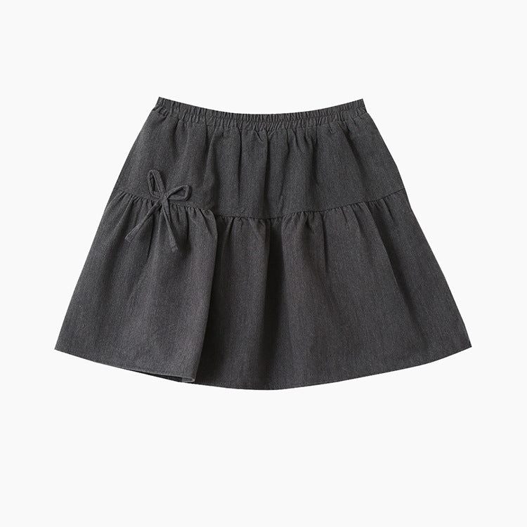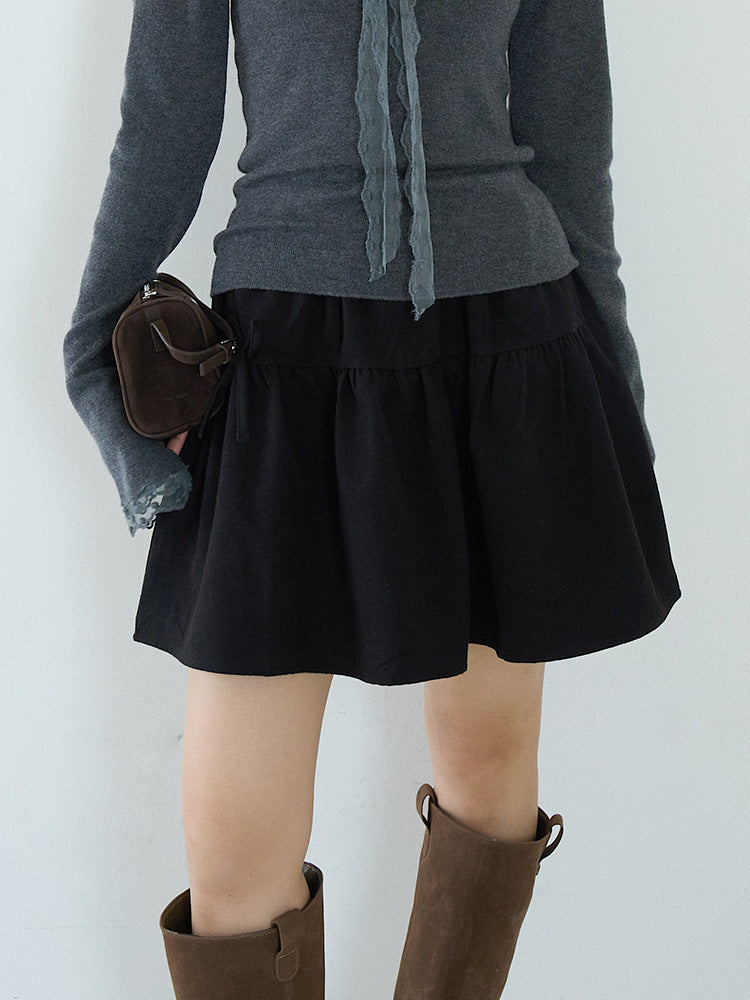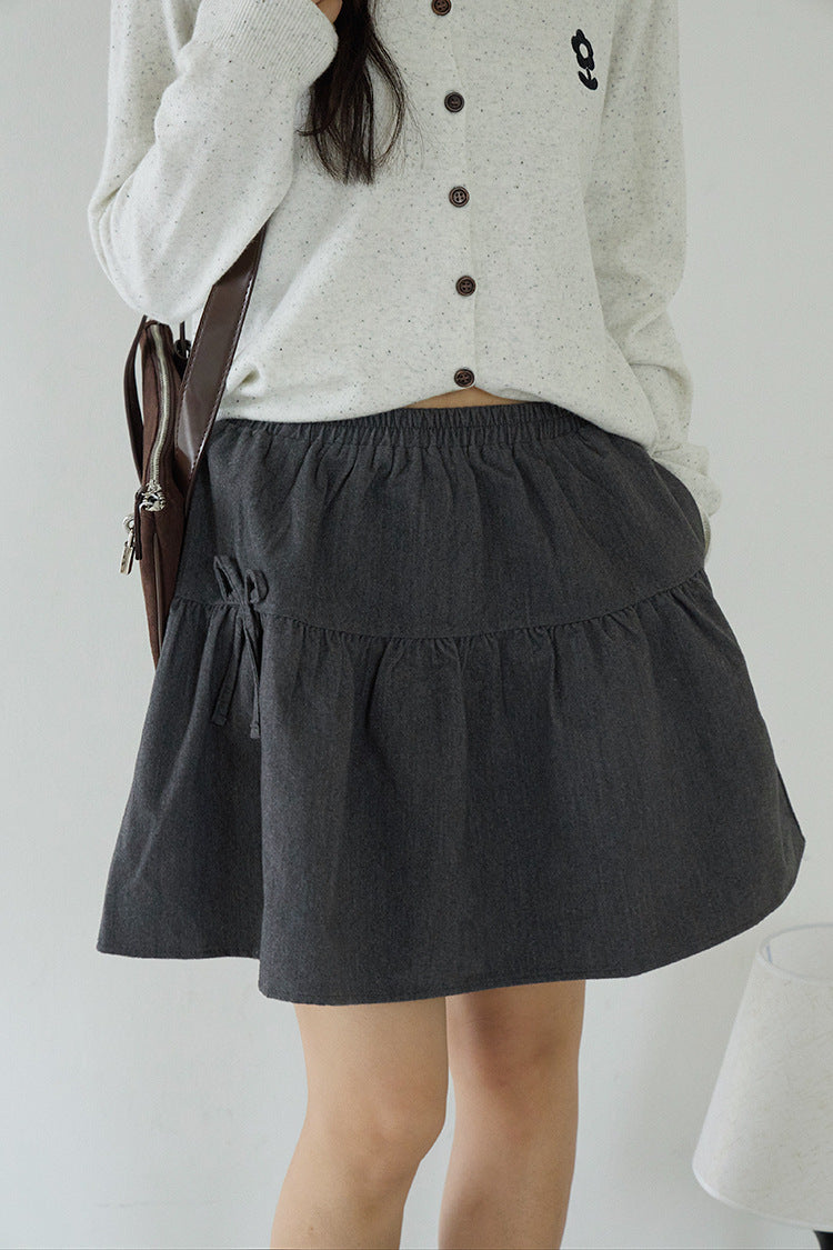 【LD3219】實拍蝴蝶結毛呢A字短裙250929