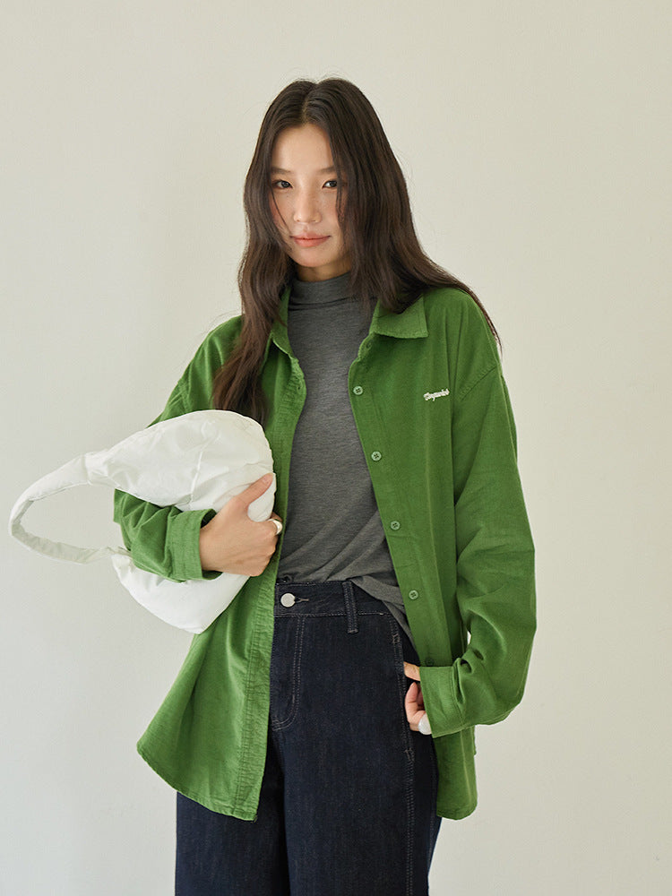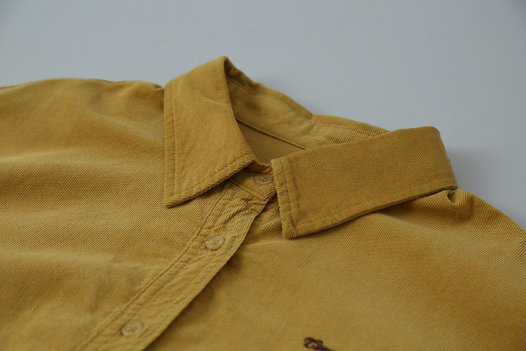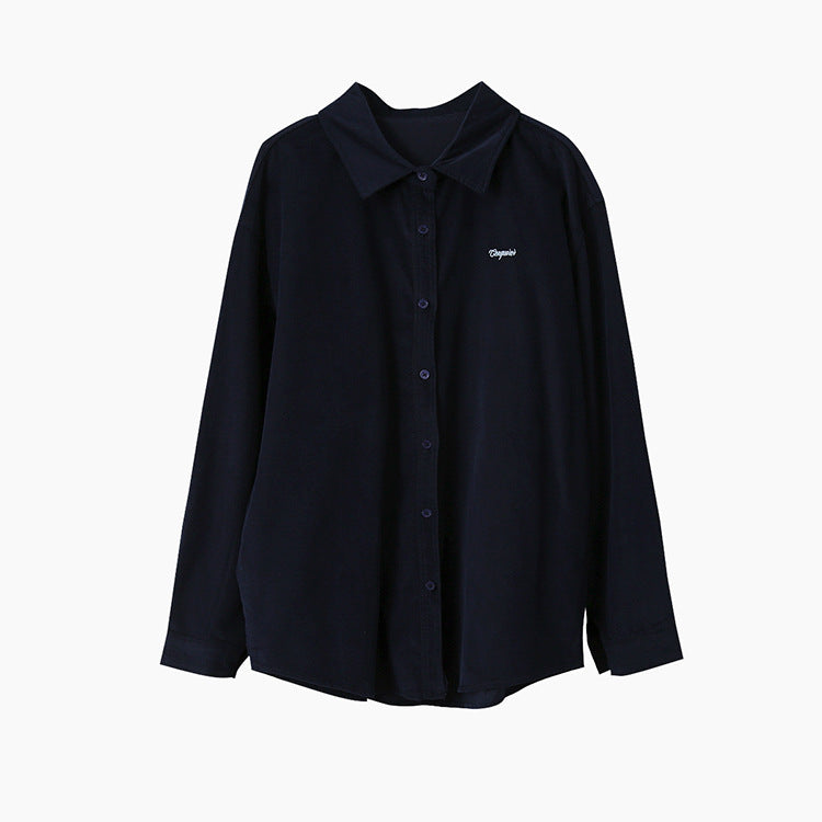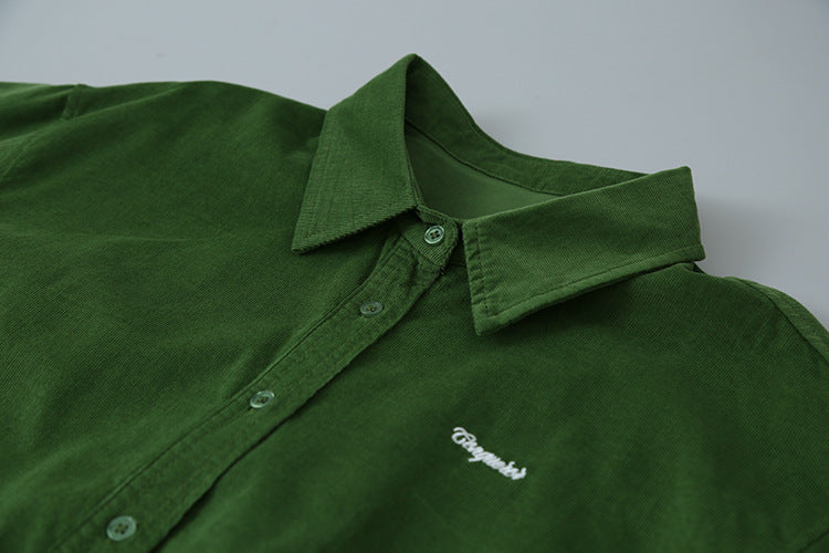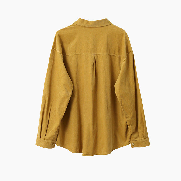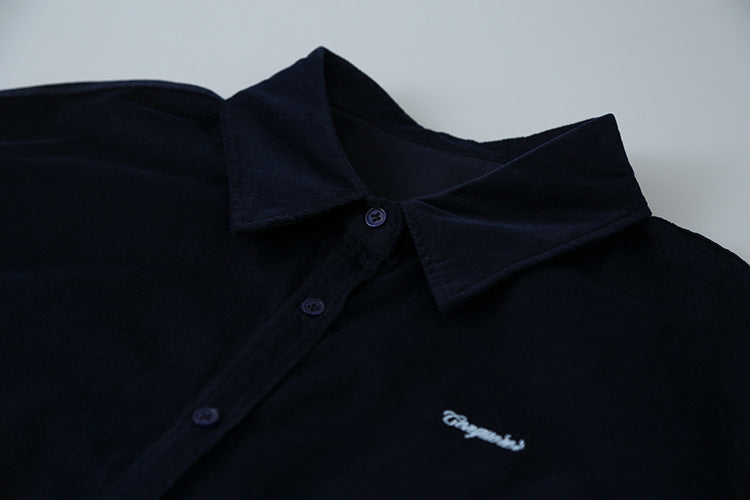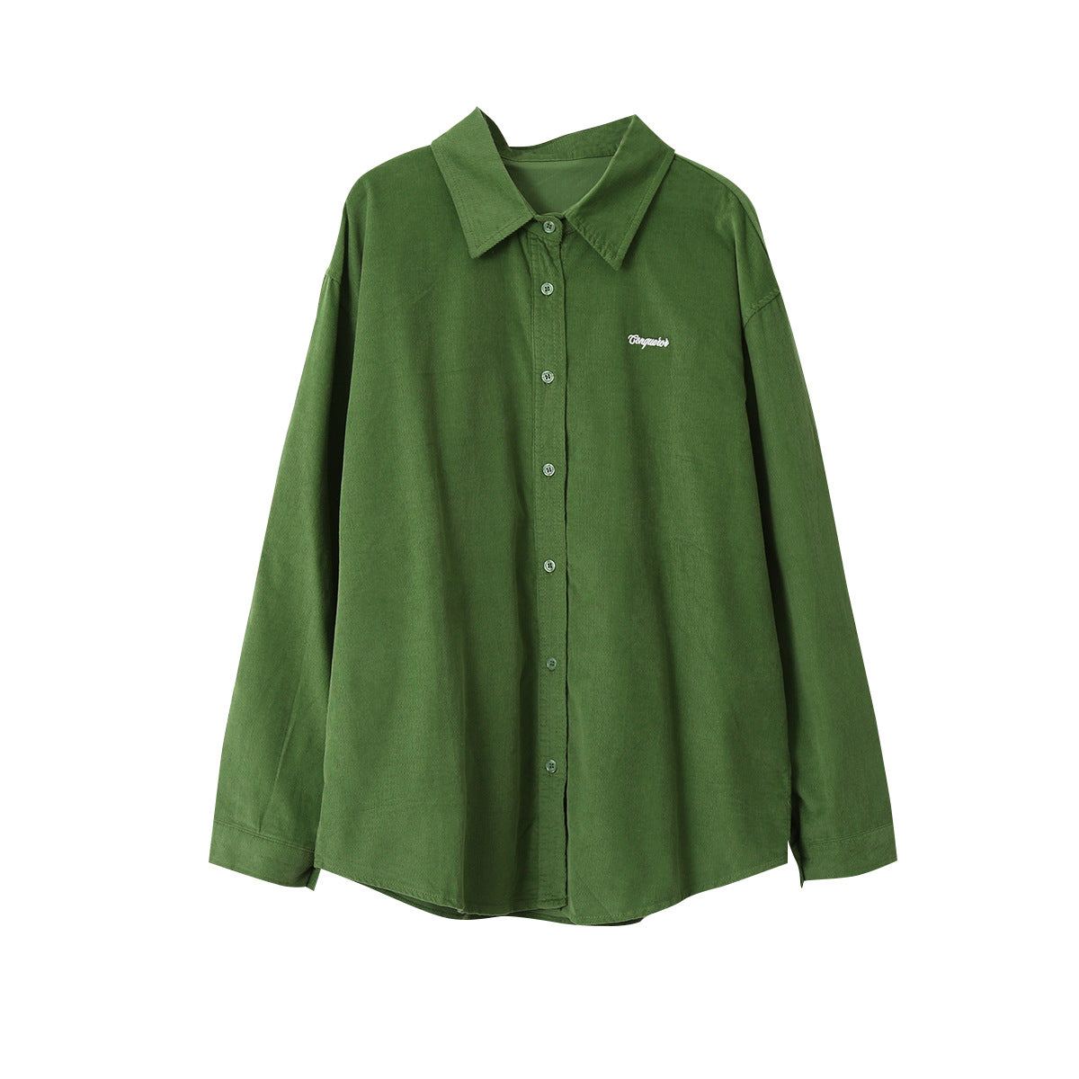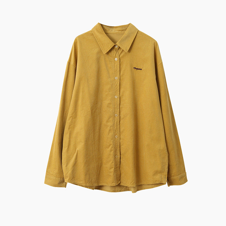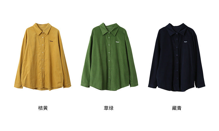 【LD3232】實拍燈芯絨薄款簡約寬鬆刺繡長袖襯衫250929