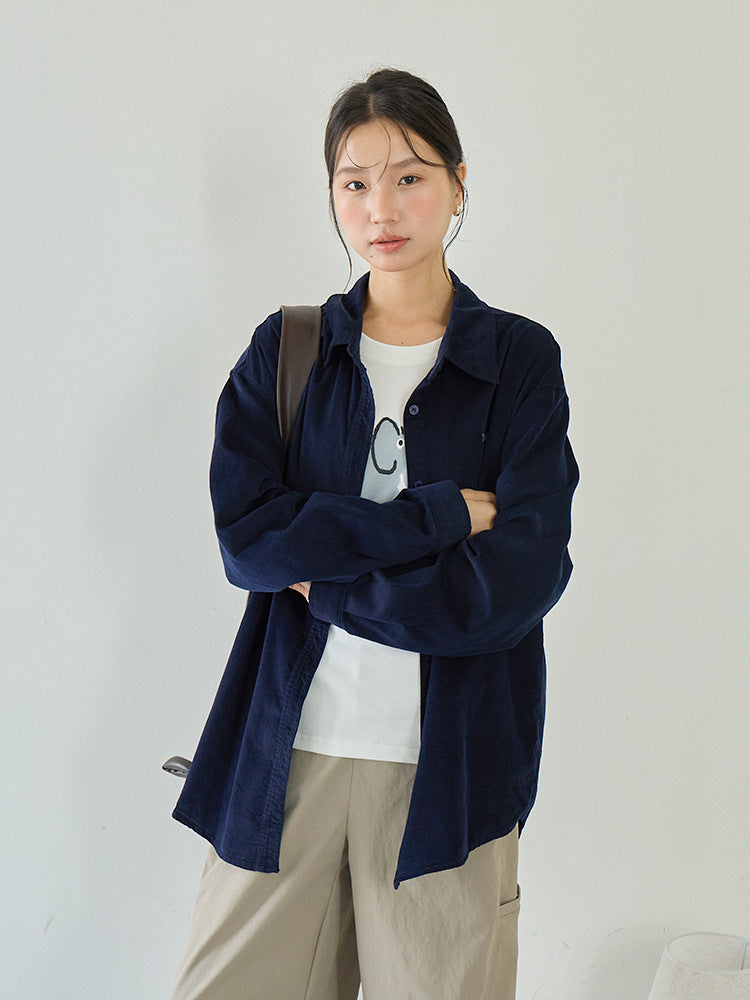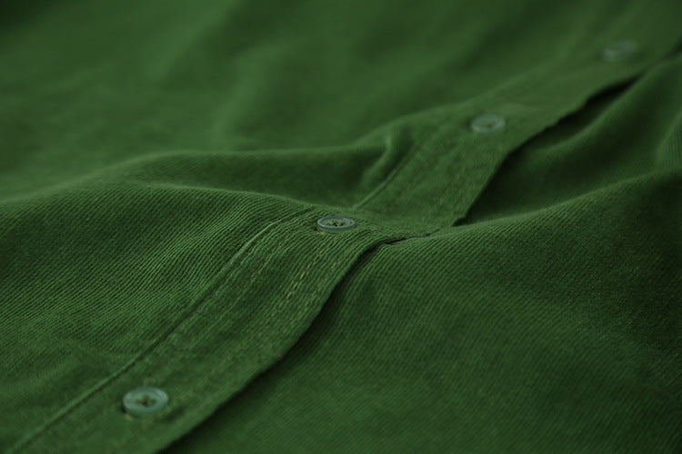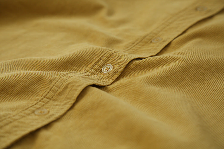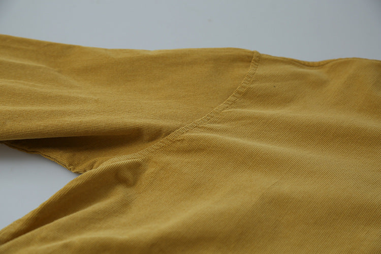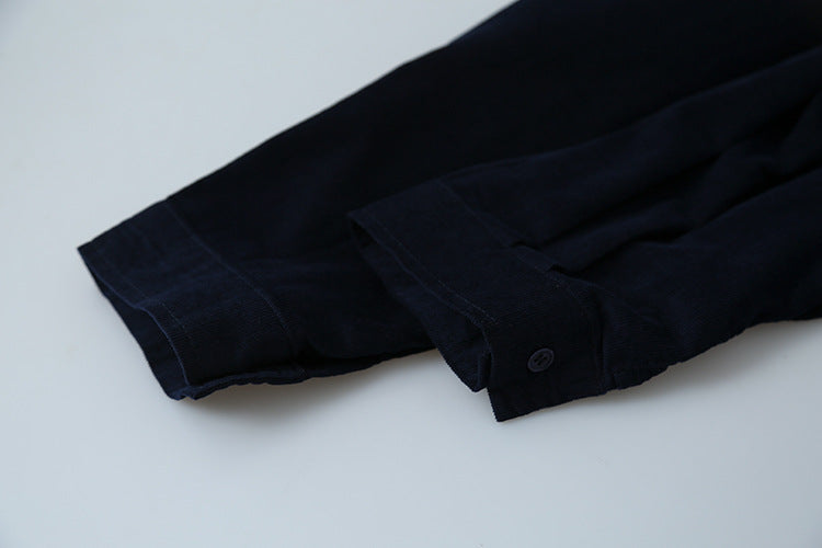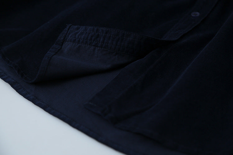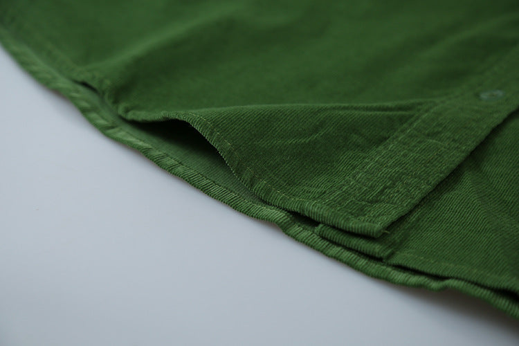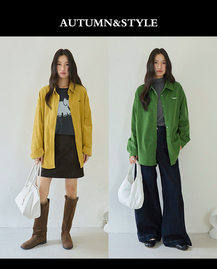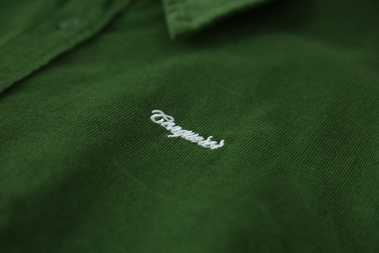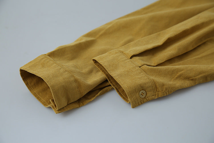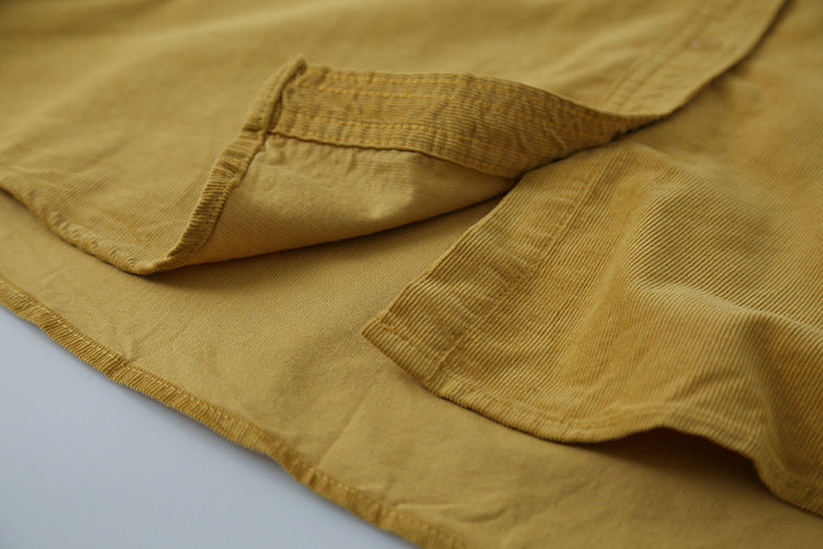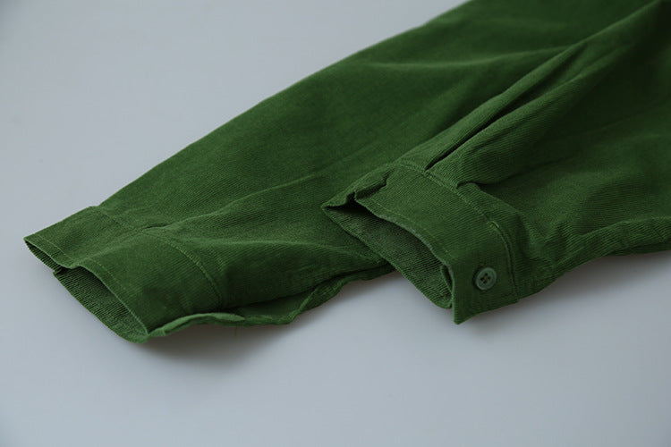 【LD3232】實拍燈芯絨薄款簡約寬鬆刺繡長袖襯衫250929