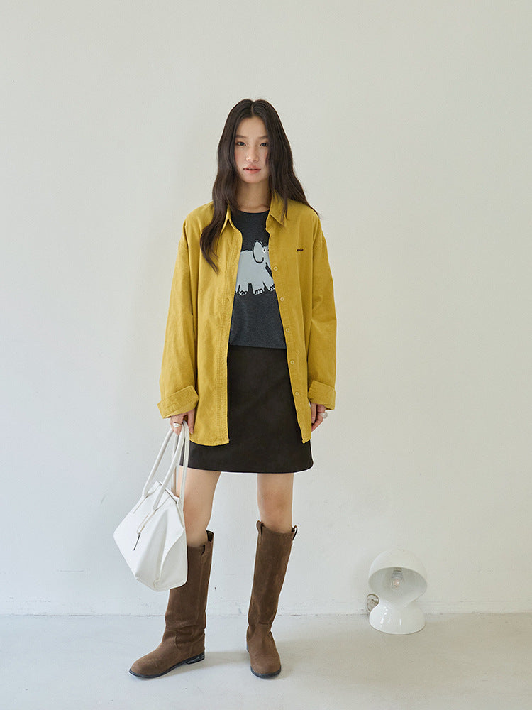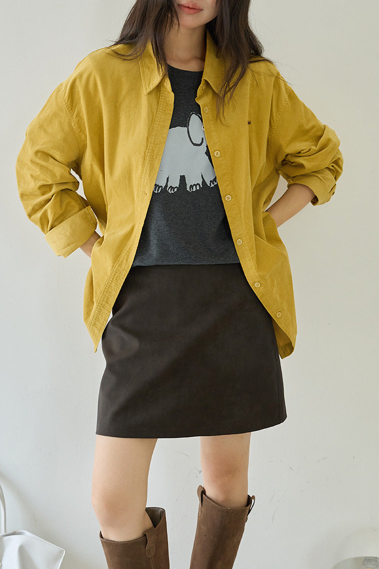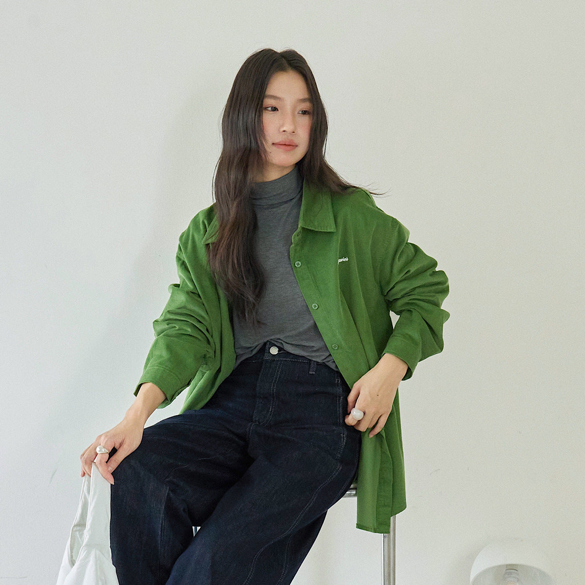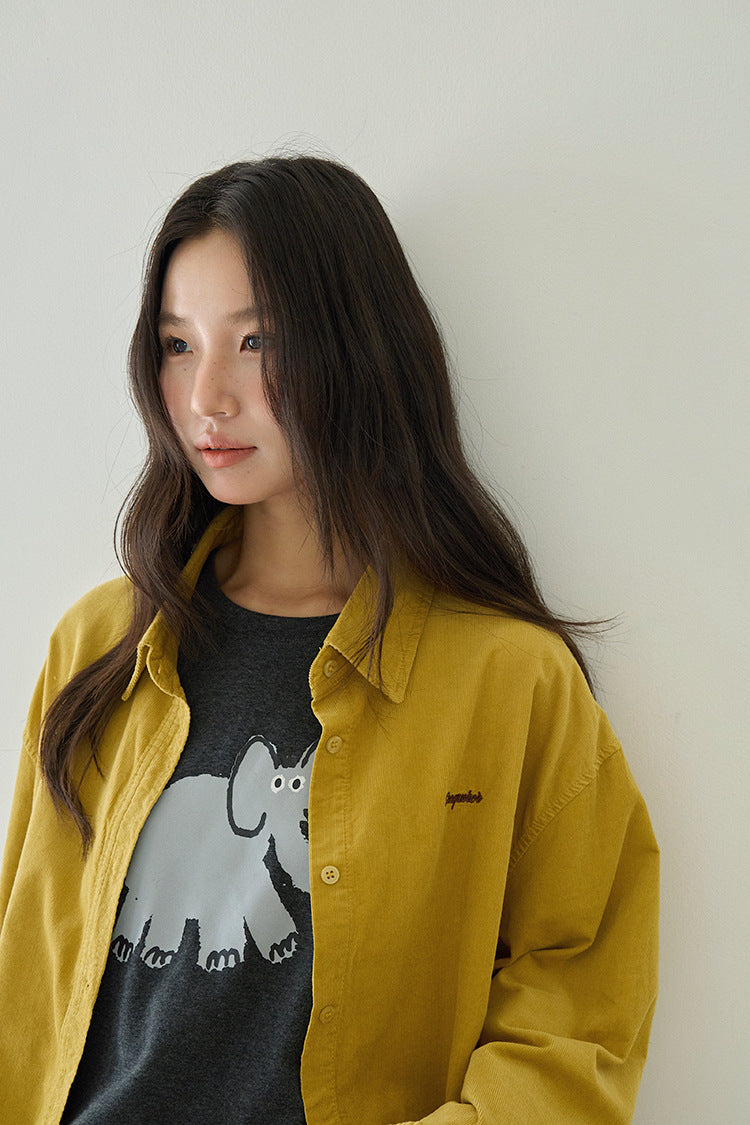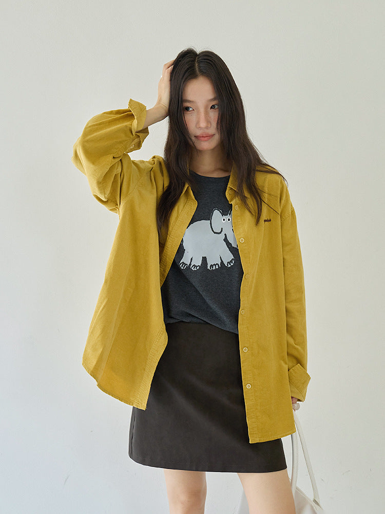 【LD3232】實拍燈芯絨薄款簡約寬鬆刺繡長袖襯衫250929