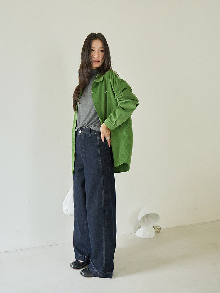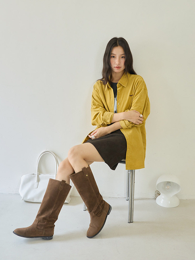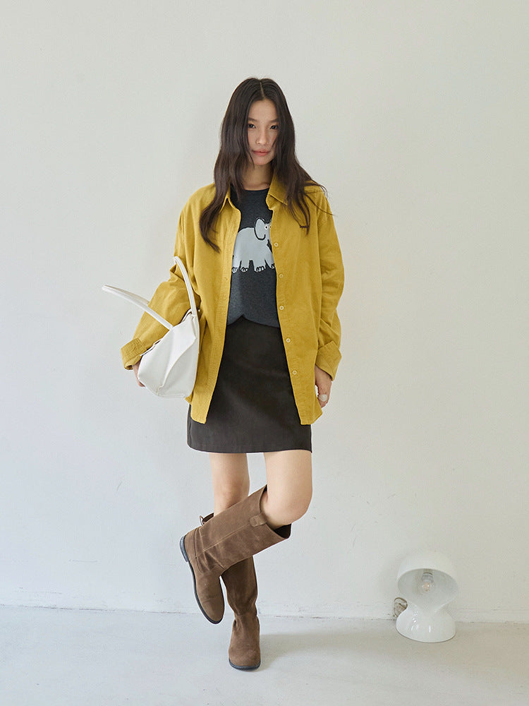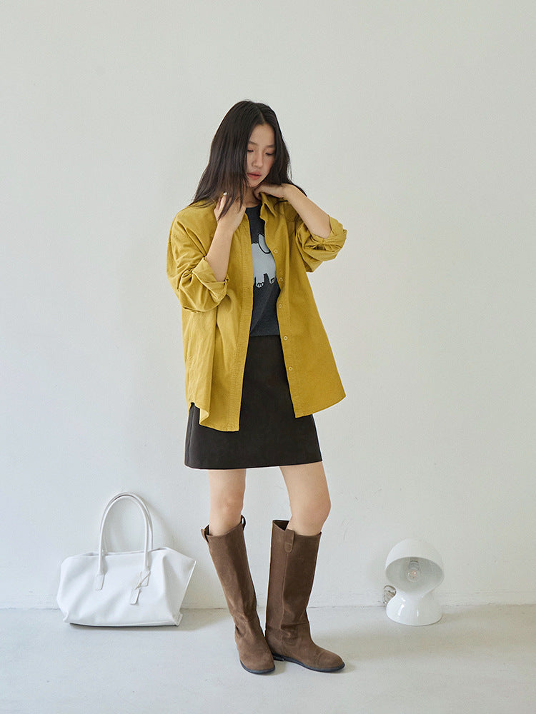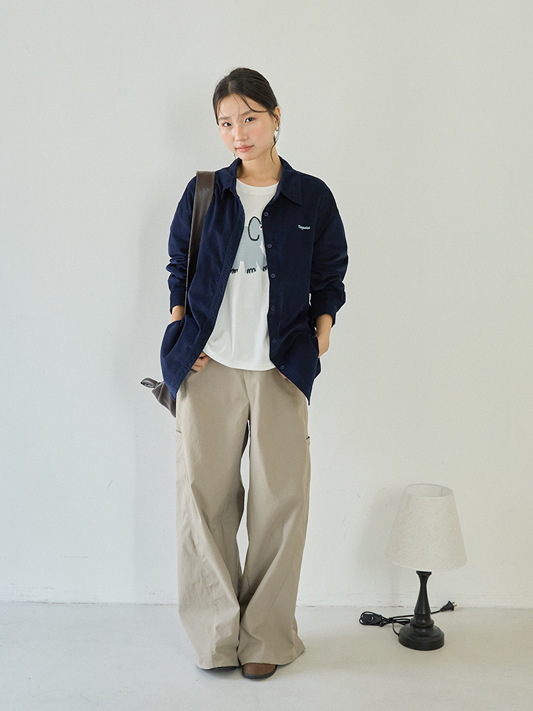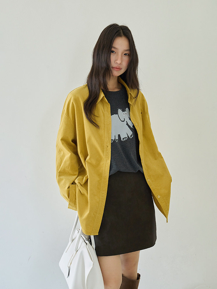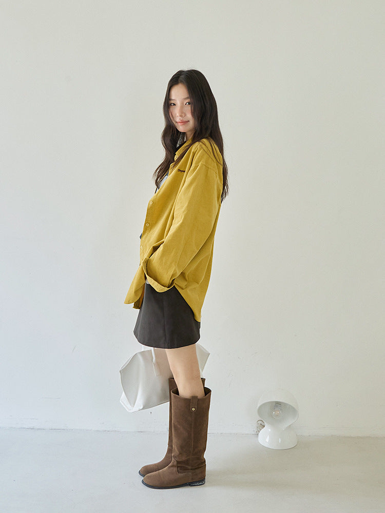 【LD3232】實拍燈芯絨薄款簡約寬鬆刺繡長袖襯衫250929