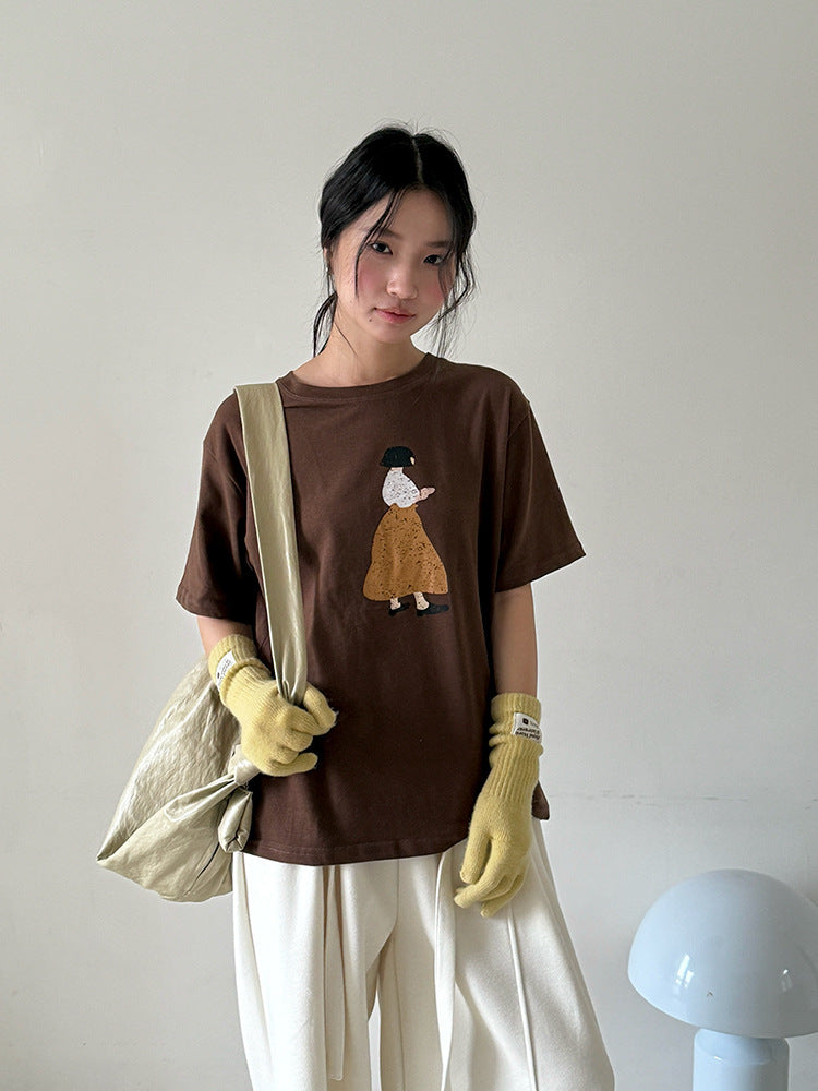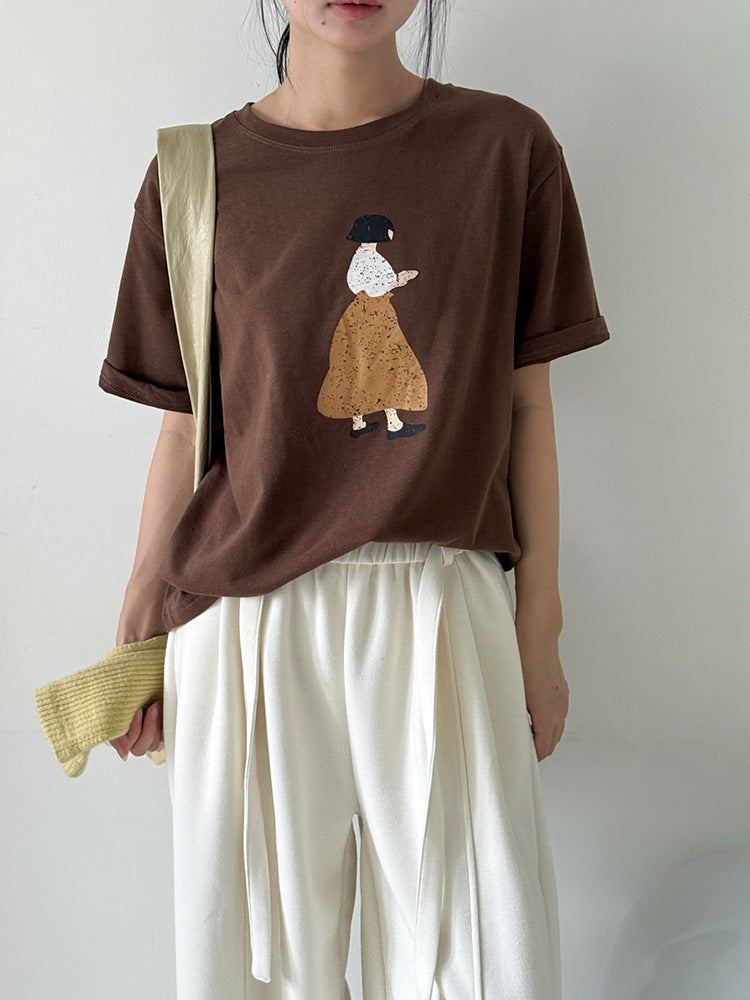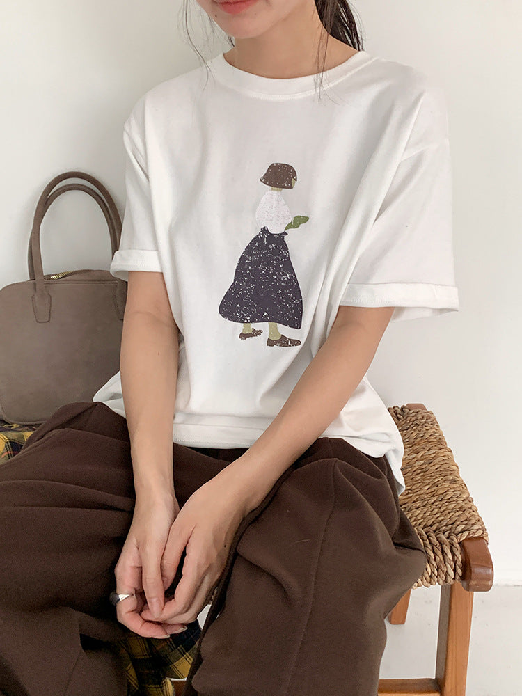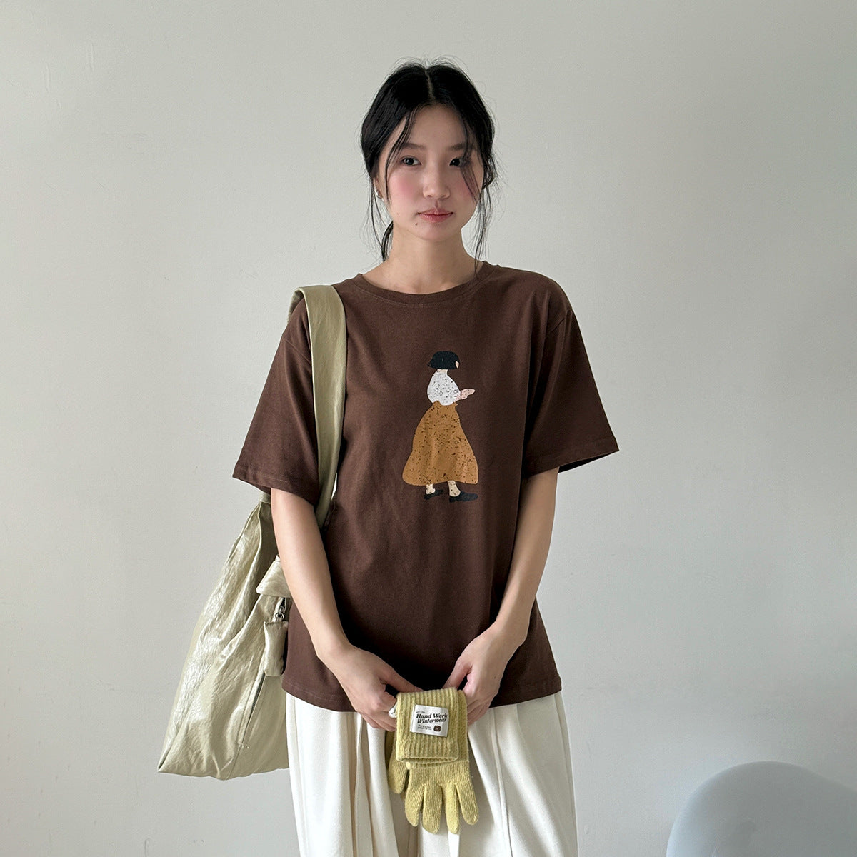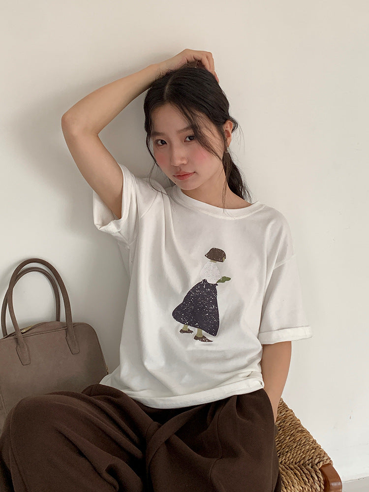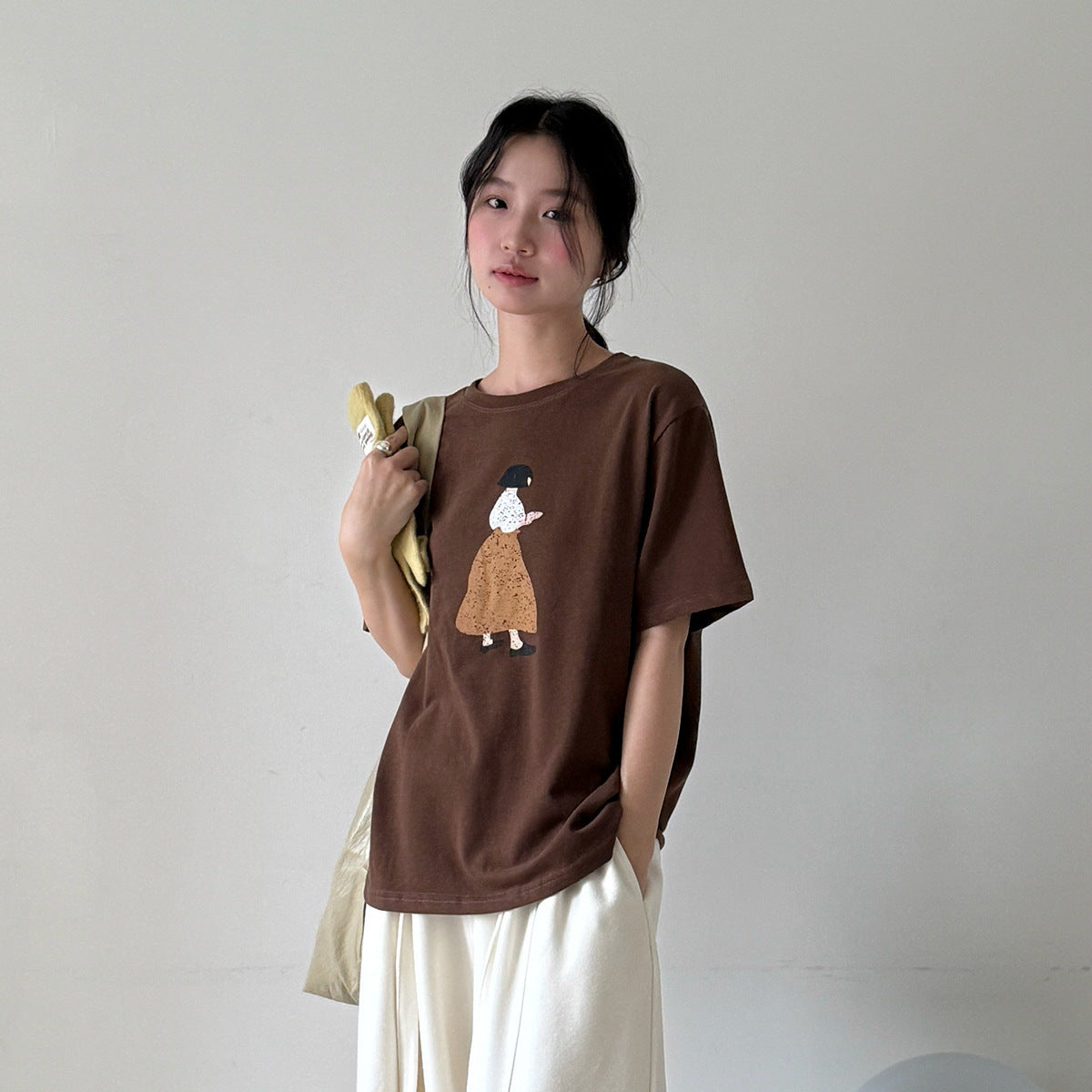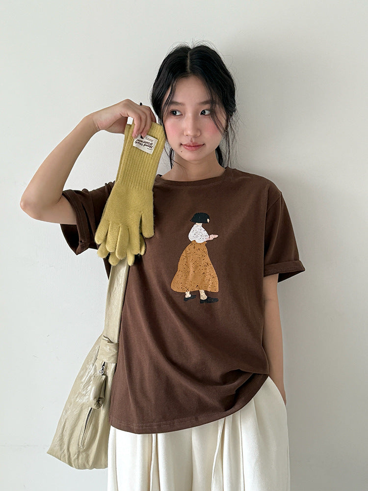 【LD3244】實拍文藝女孩磨毛短袖T恤251006