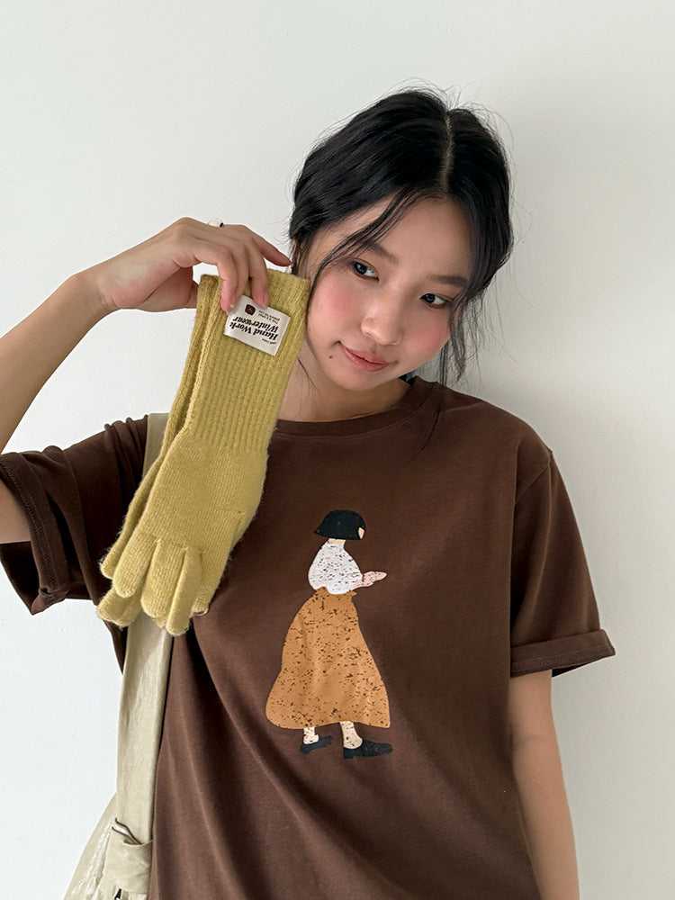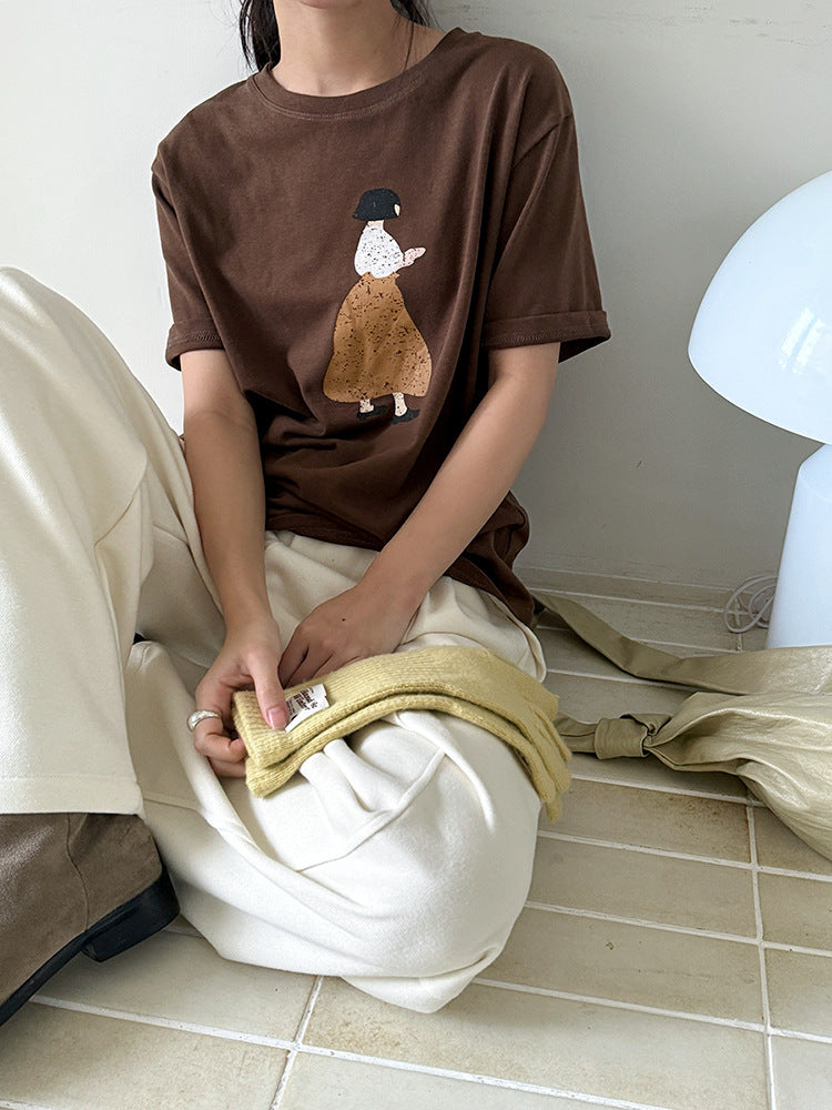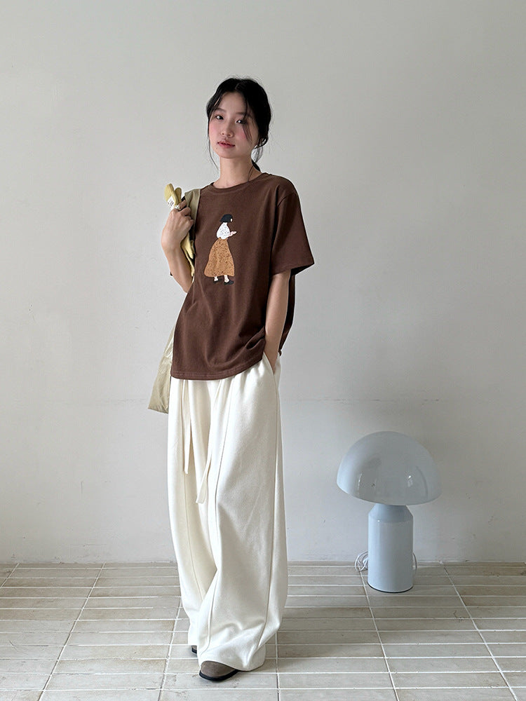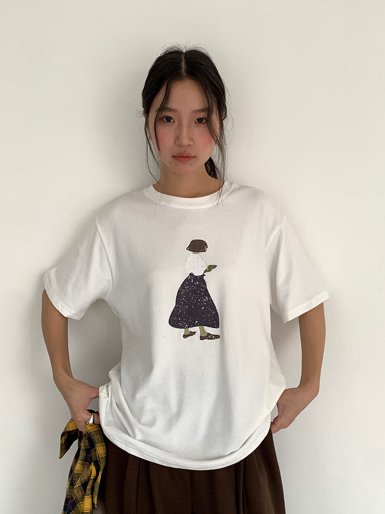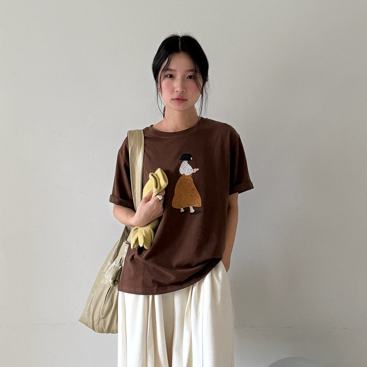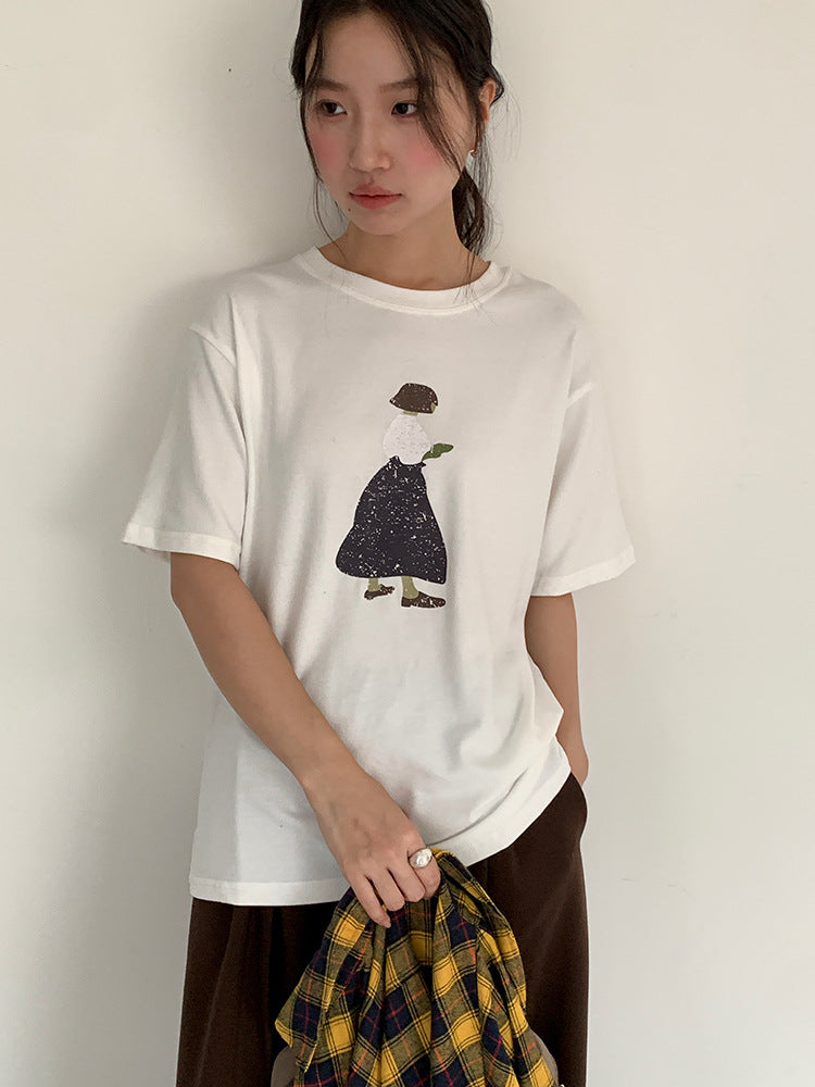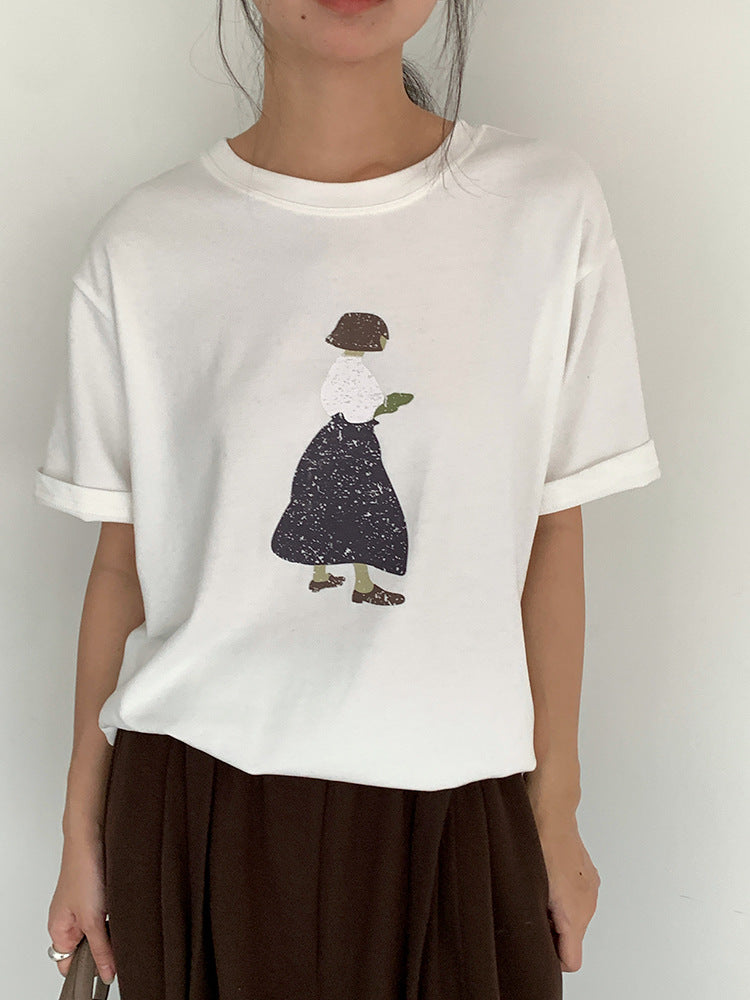 【LD3244】實拍文藝女孩磨毛短袖T恤251006