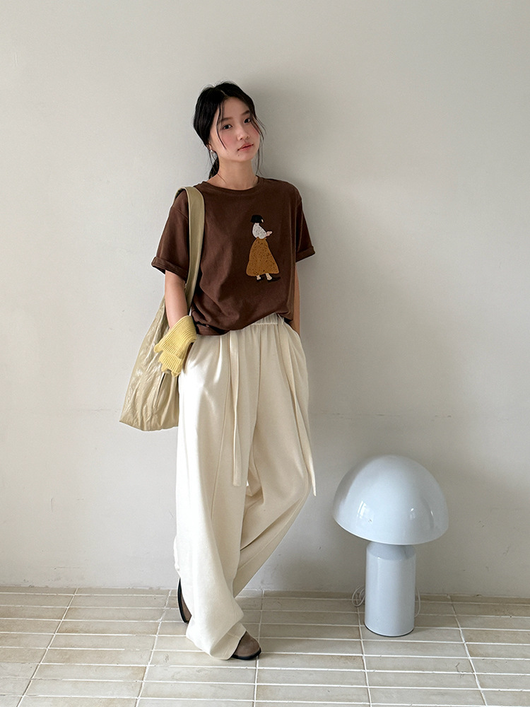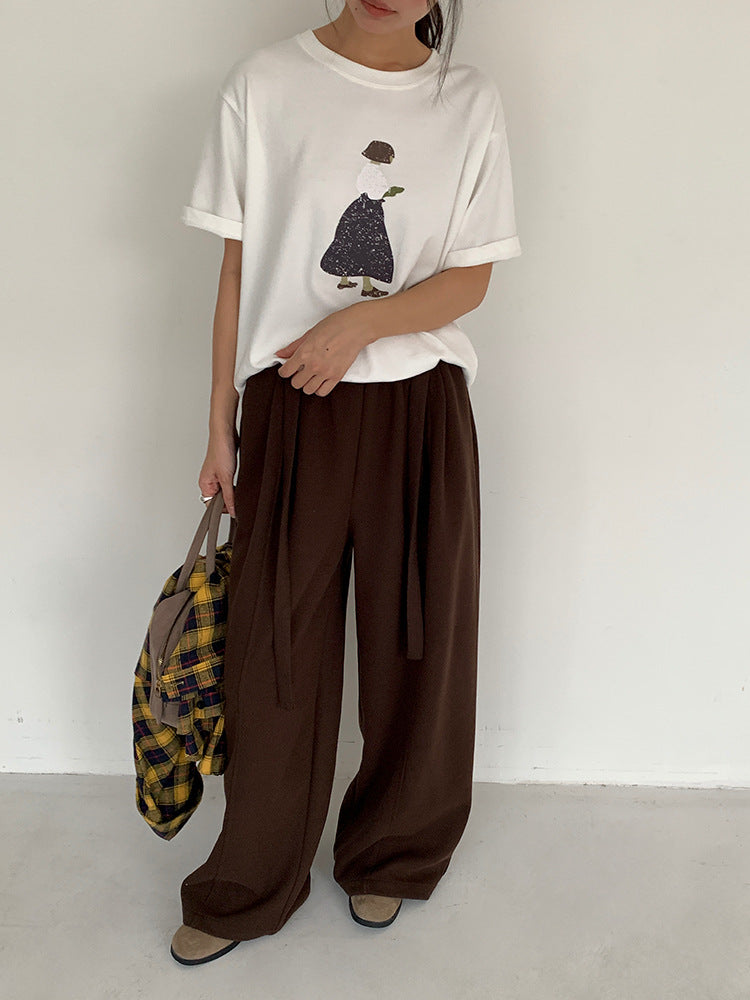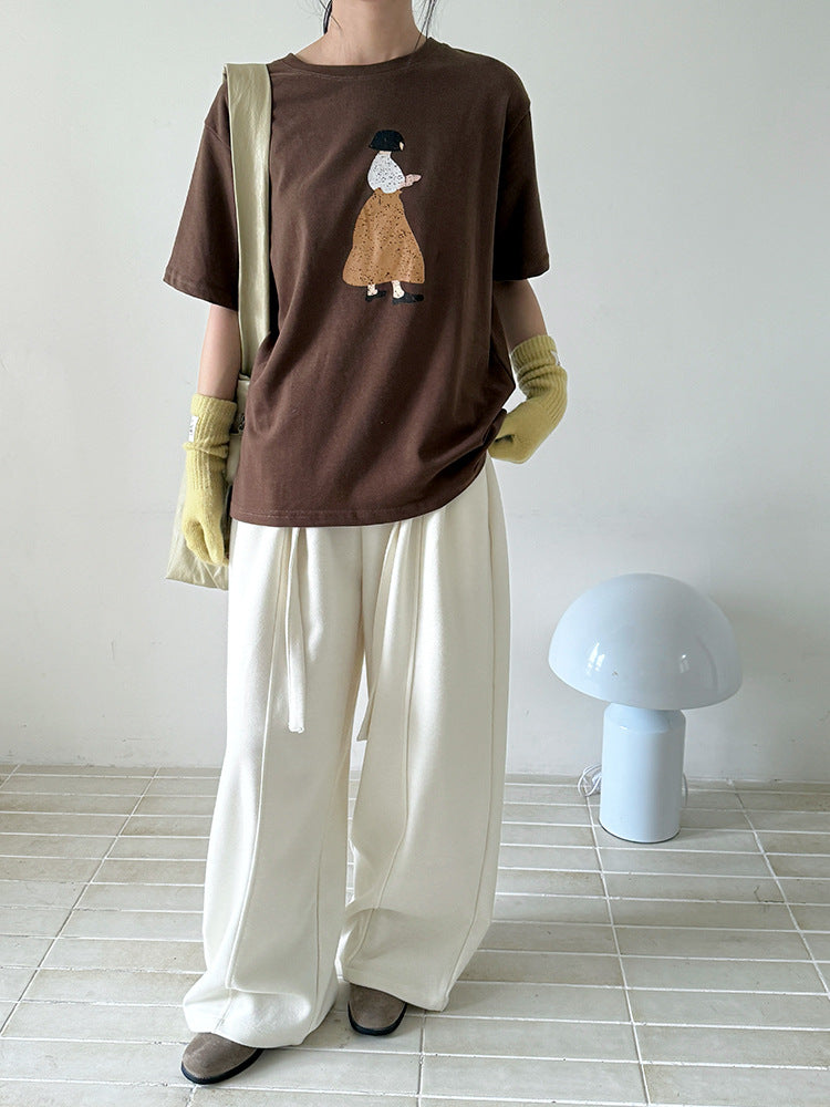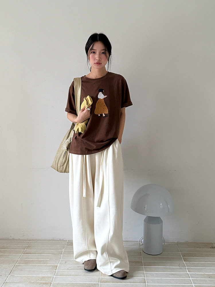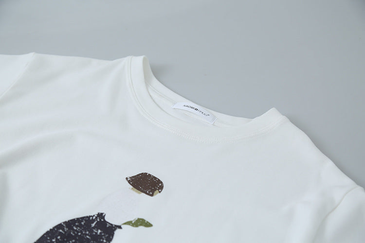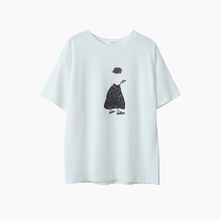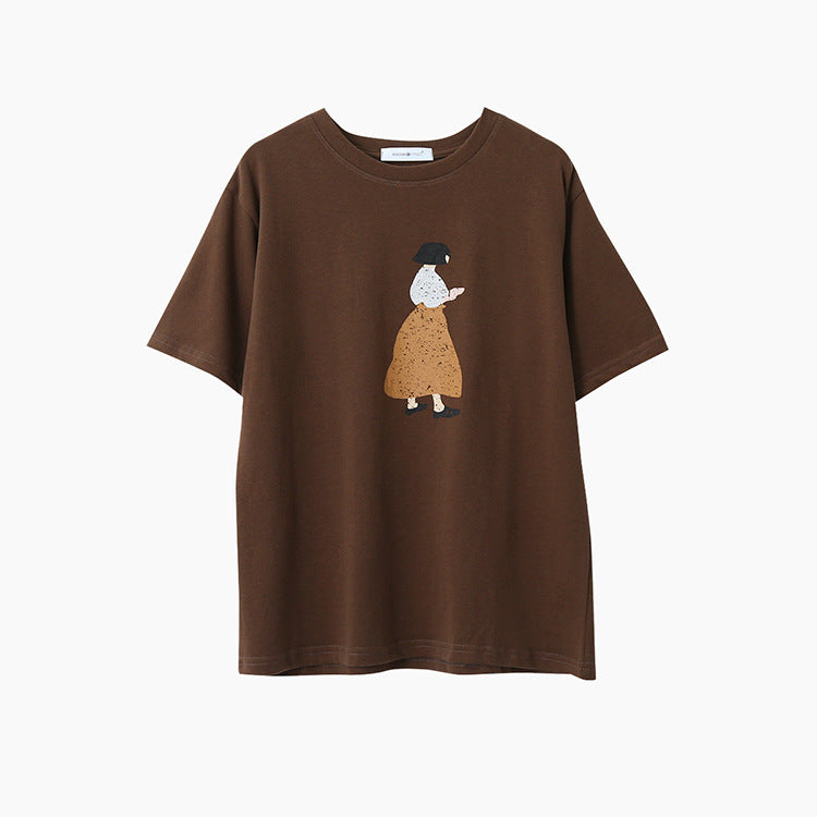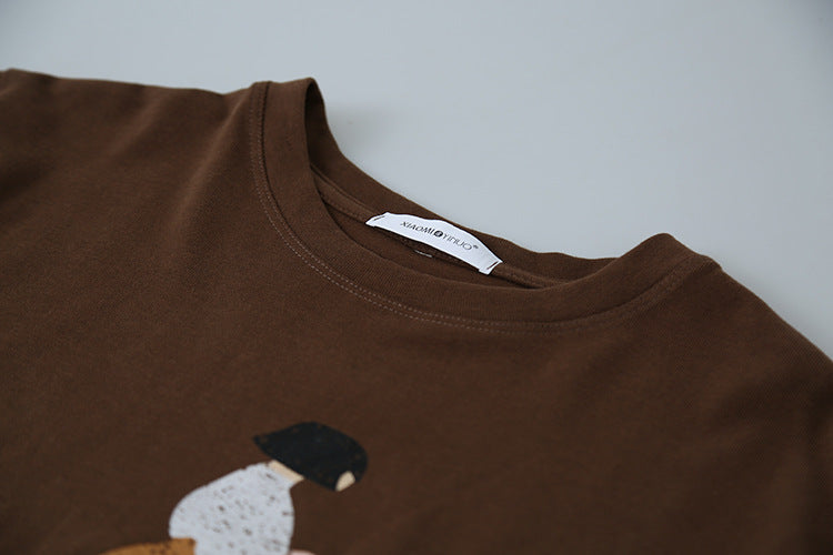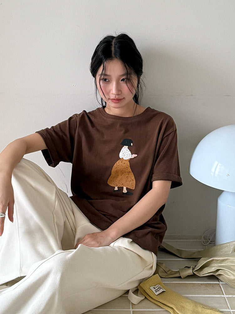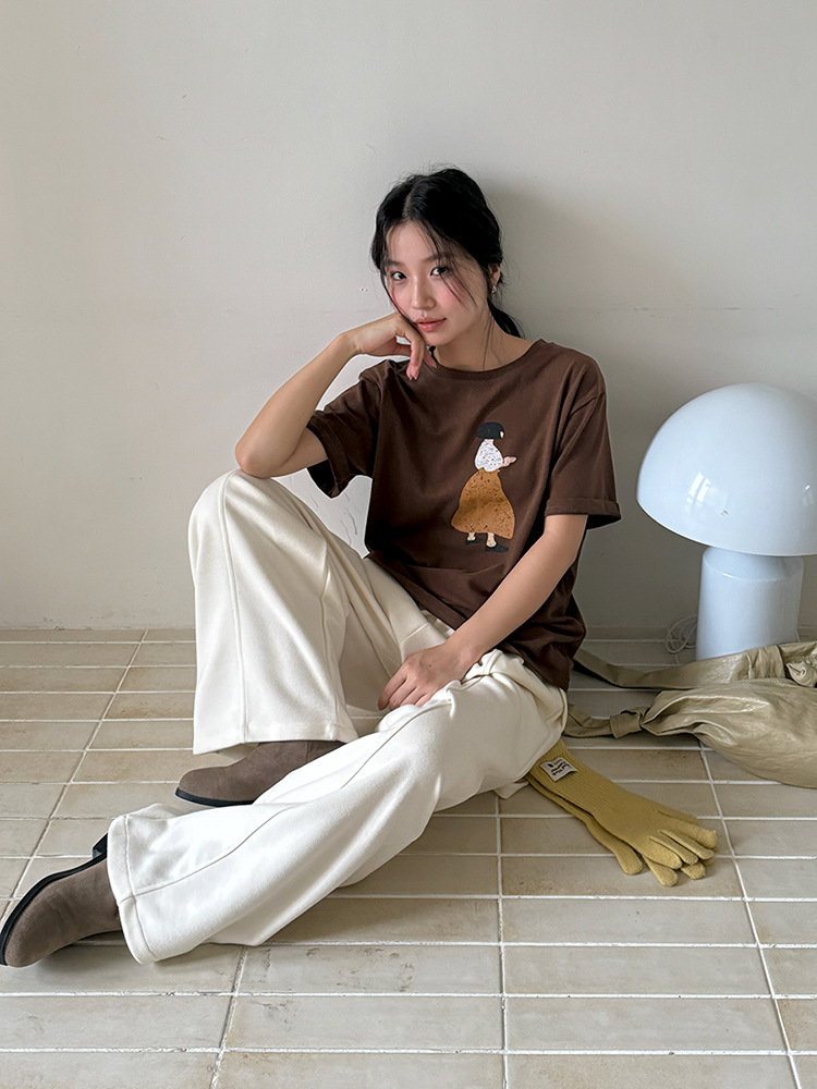 【LD3244】實拍文藝女孩磨毛短袖T恤251006