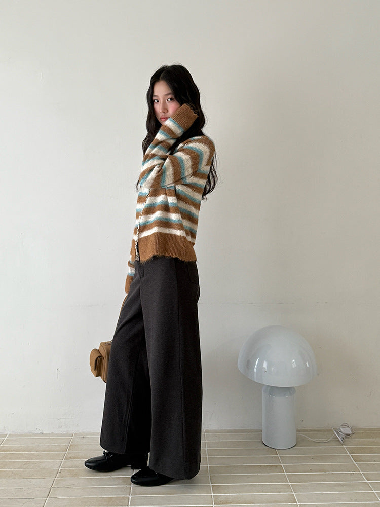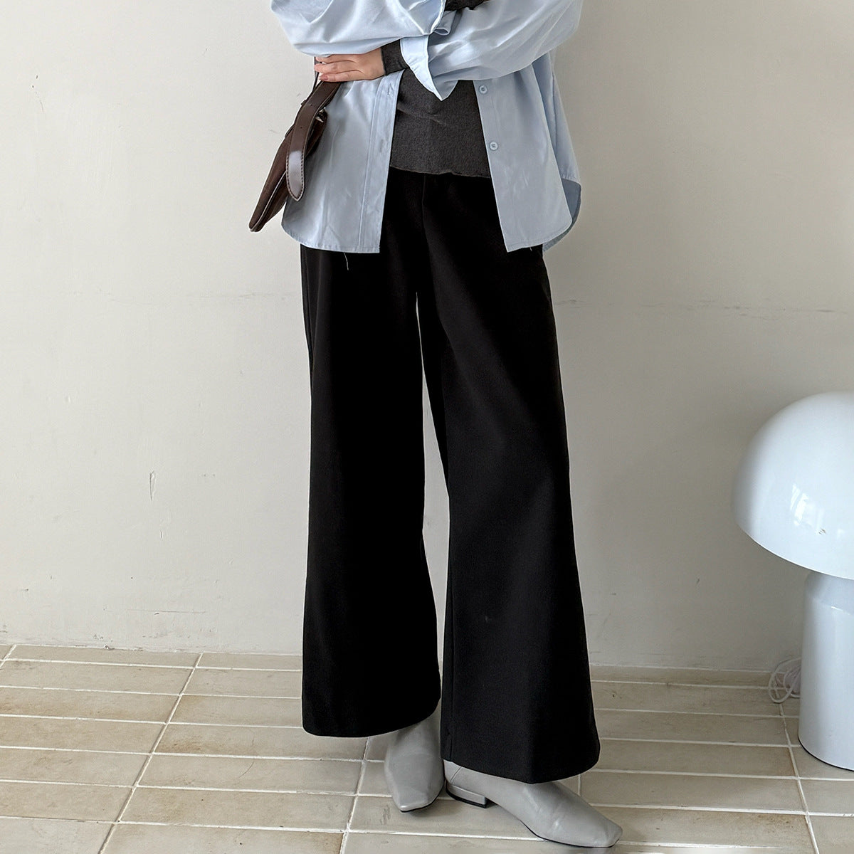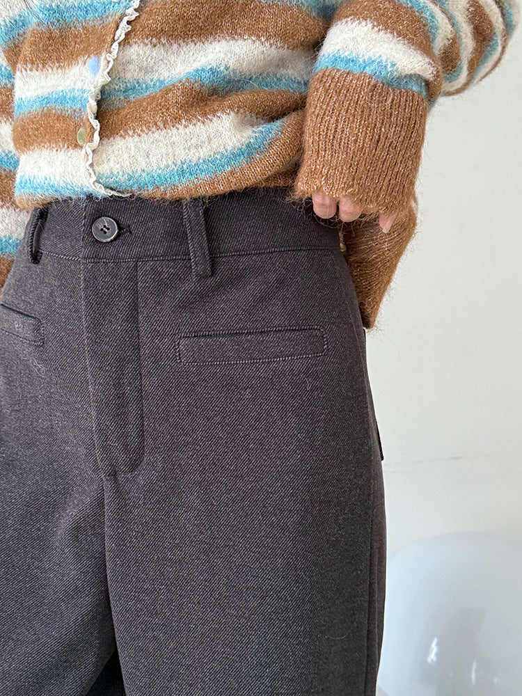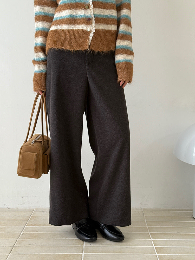 【LD3251】實拍S~XL雅痞奶奶直筒毛呢闊腿褲251006