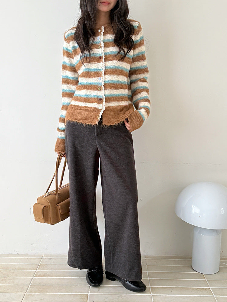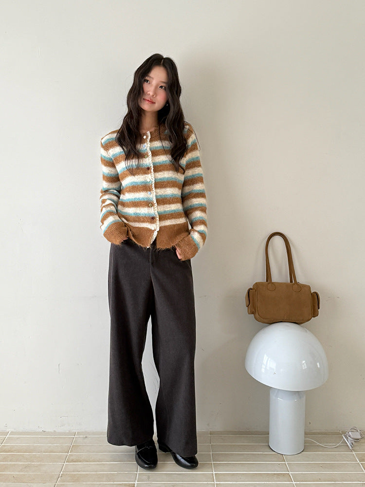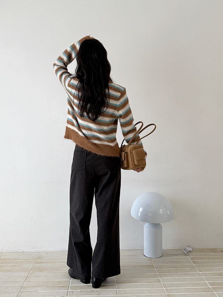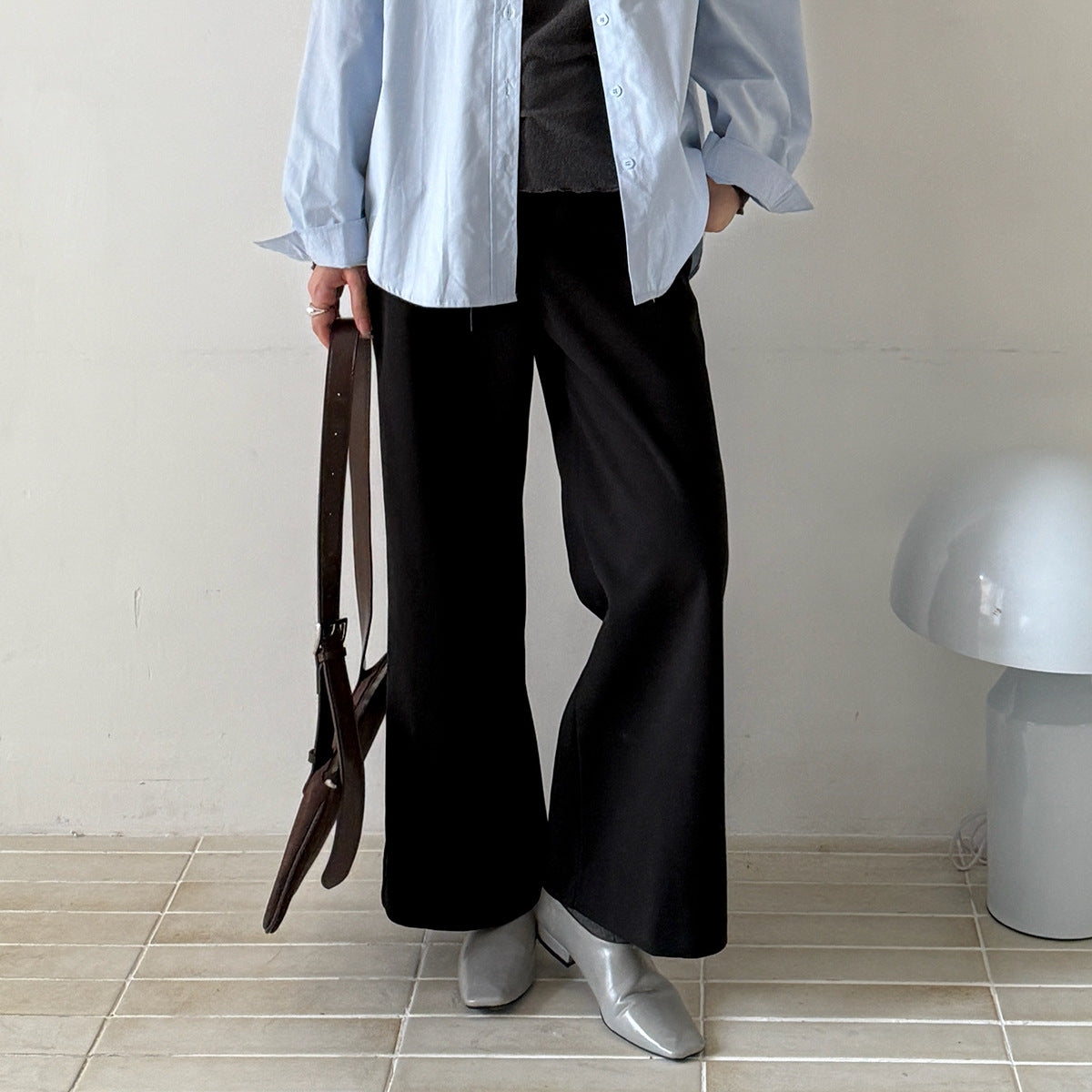 【LD3251】實拍S~XL雅痞奶奶直筒毛呢闊腿褲251006