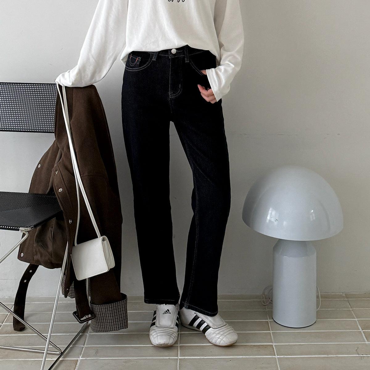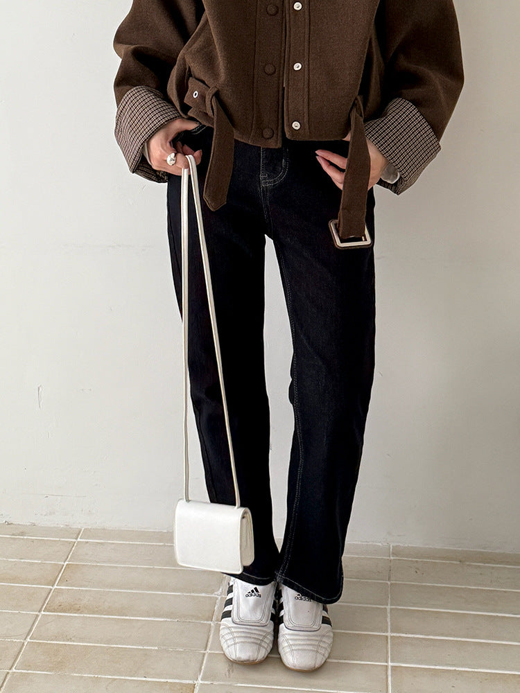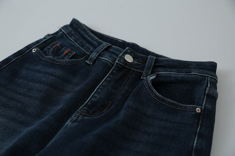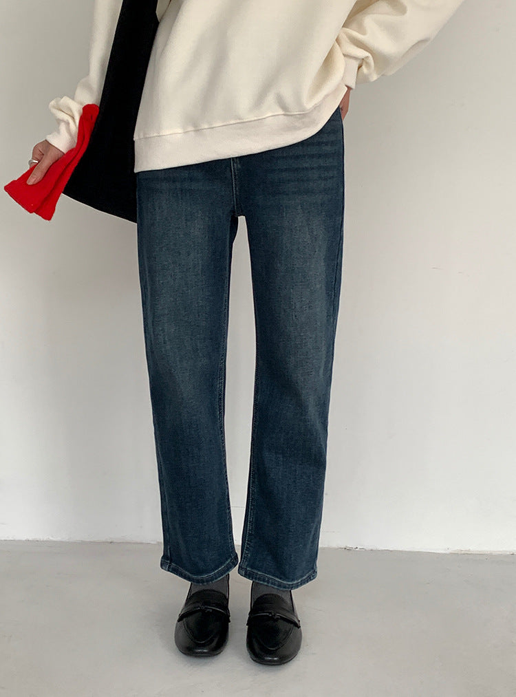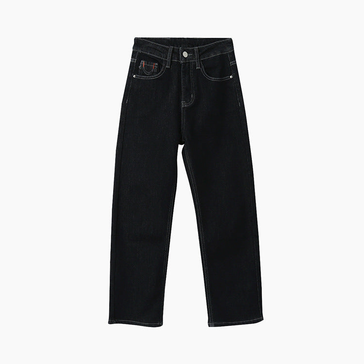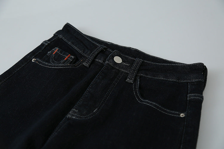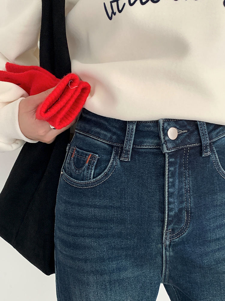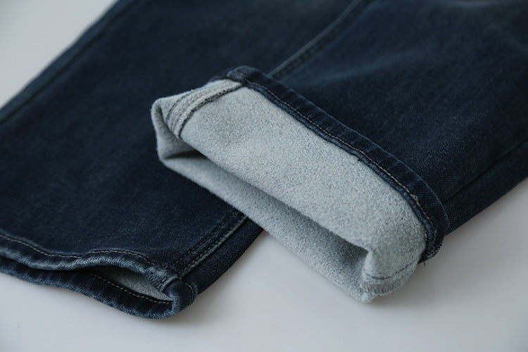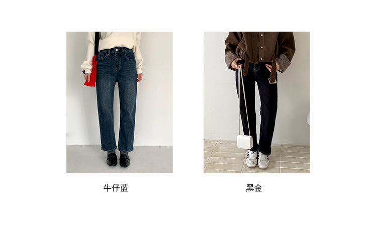 【LD3253】實拍S~XL窄版抓絨加厚黑金直筒九分牛仔褲251006