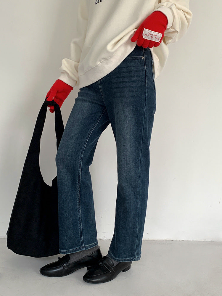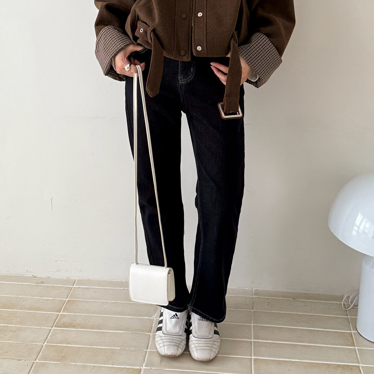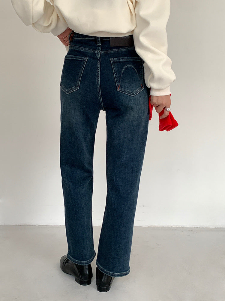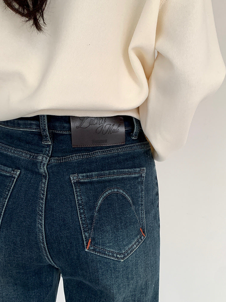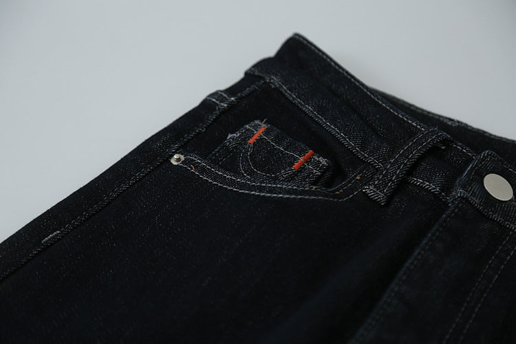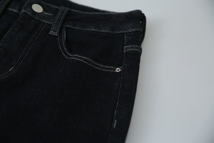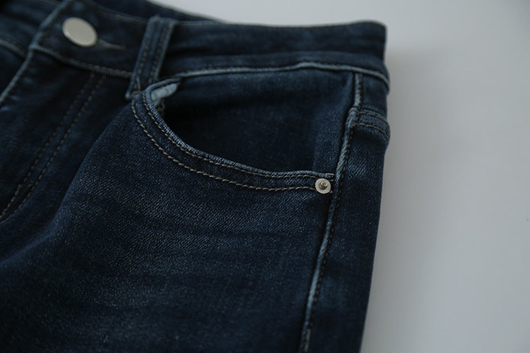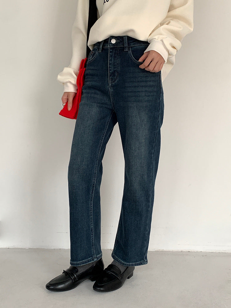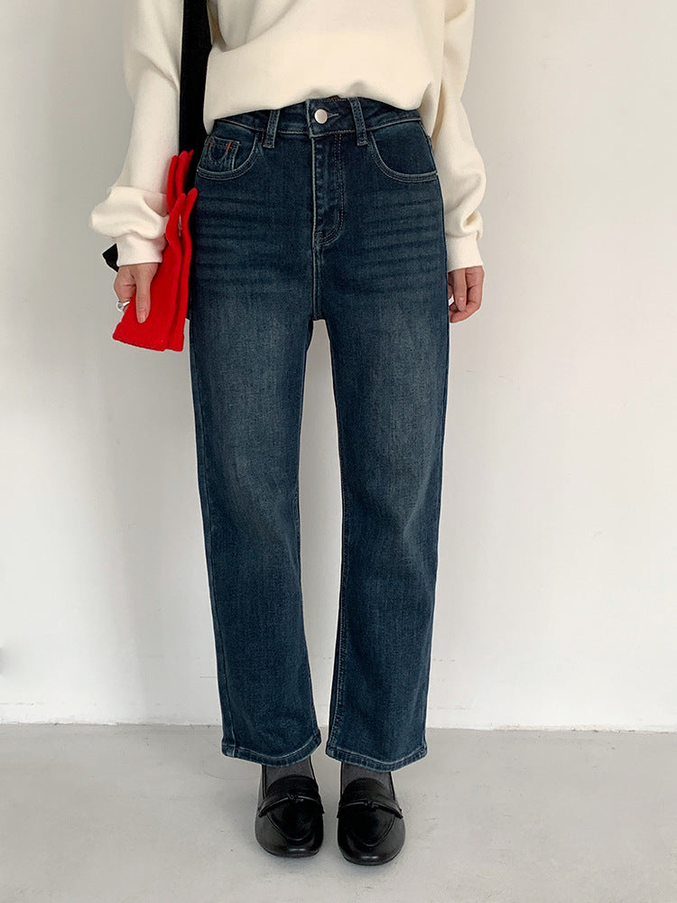 【LD3253】實拍S~XL窄版抓絨加厚黑金直筒九分牛仔褲251006