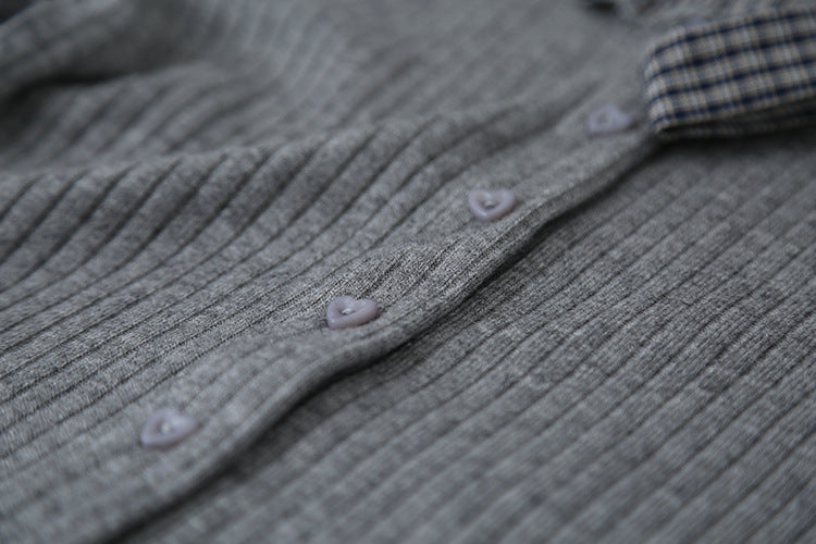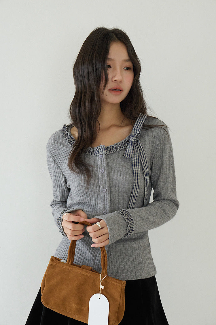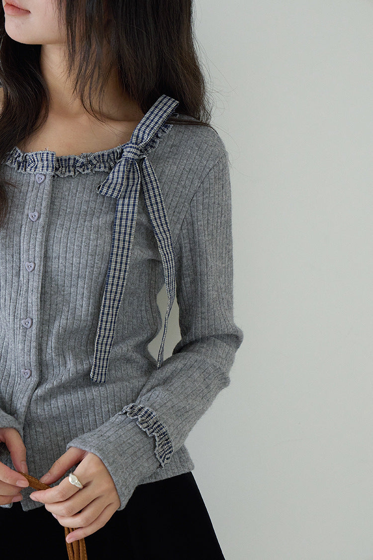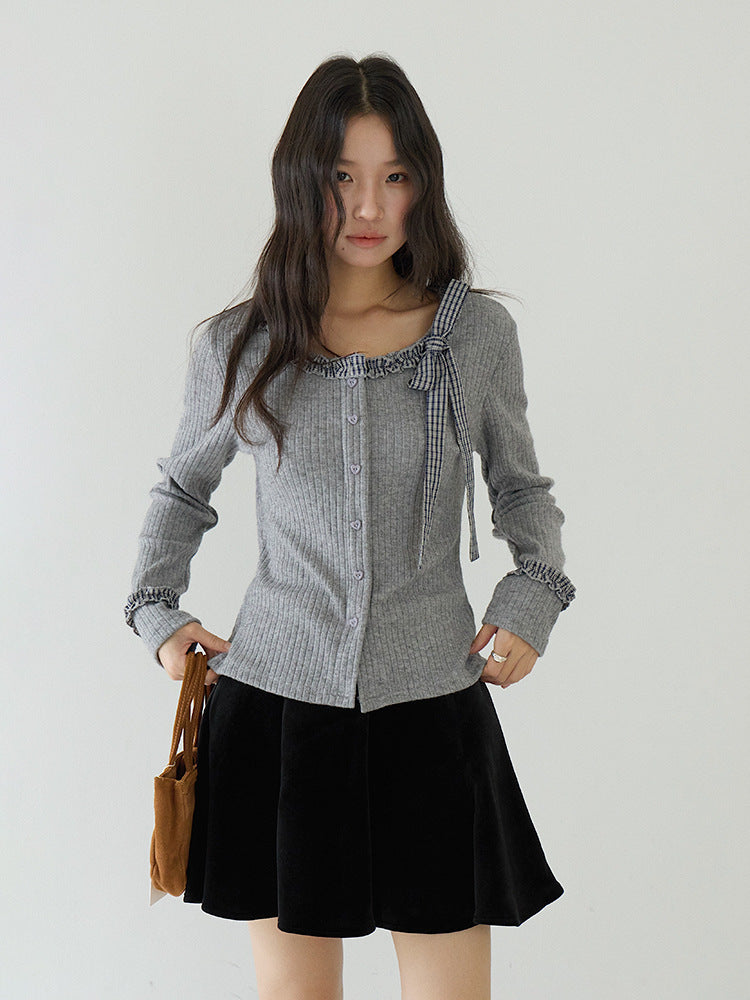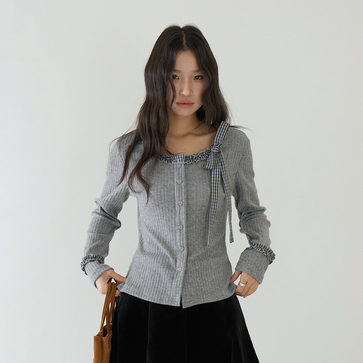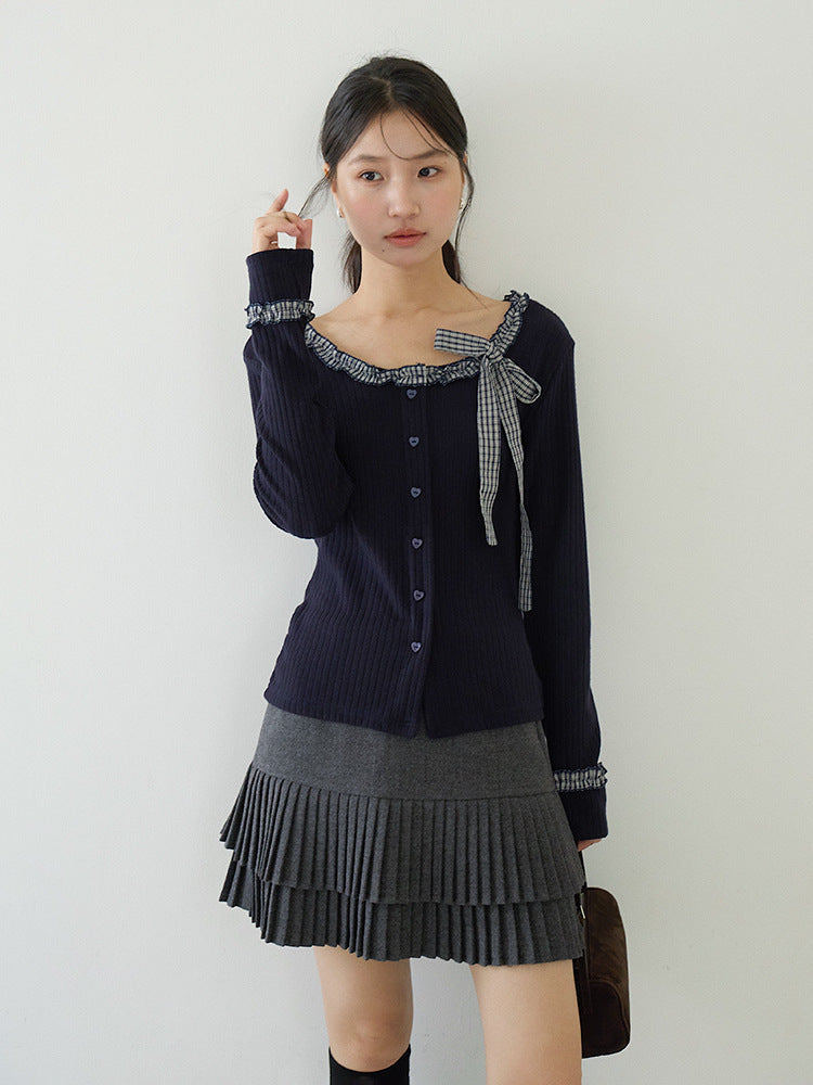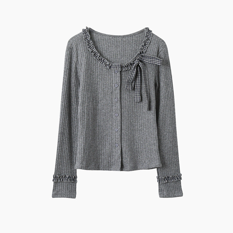 【LD3260】實拍美式復古假兩件格子蝴蝶結長袖上衣251012