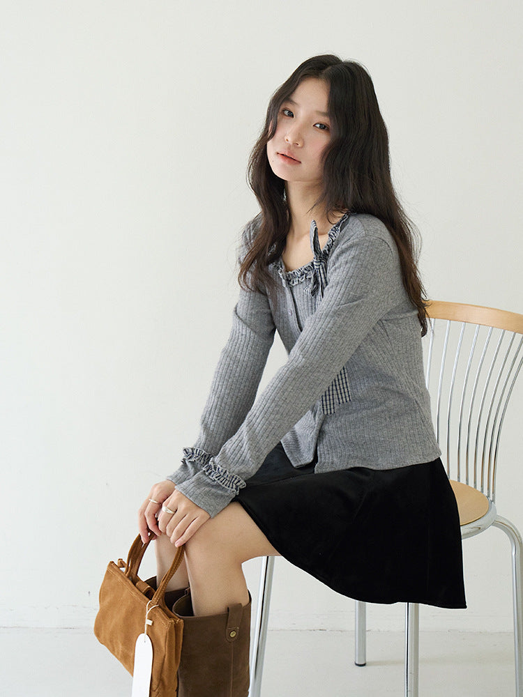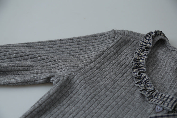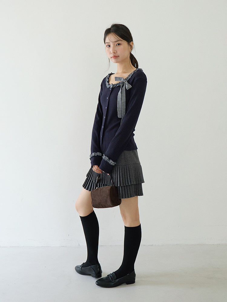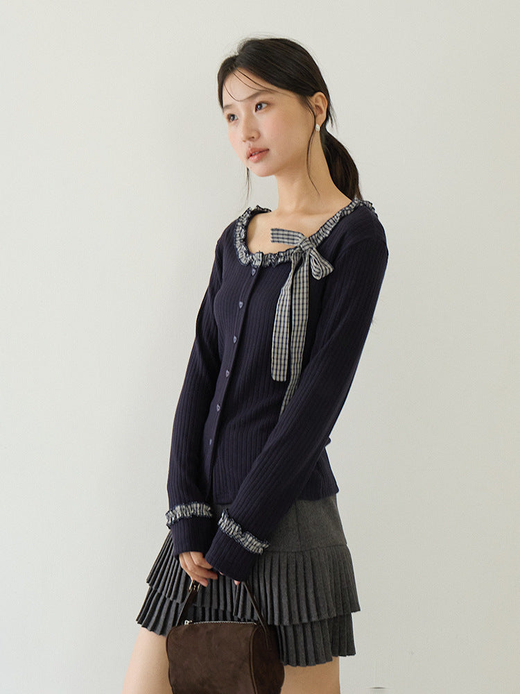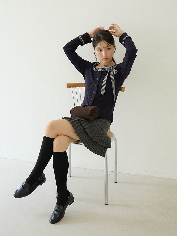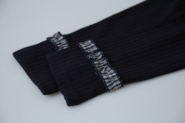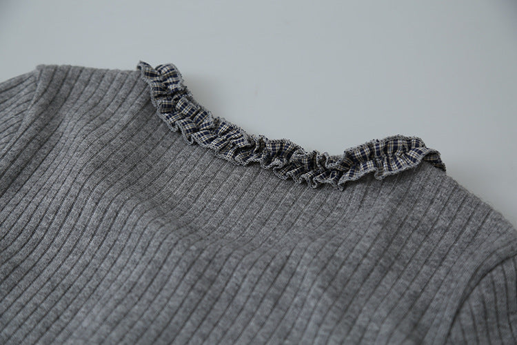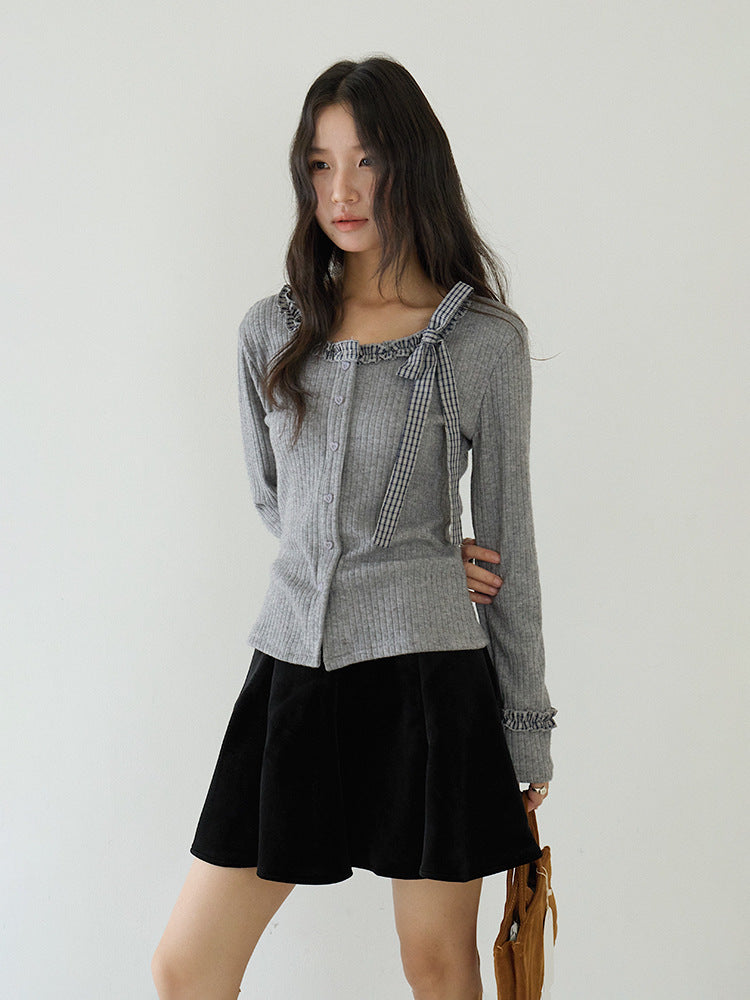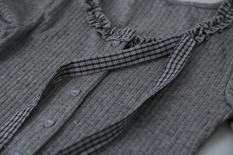 【LD3260】實拍美式復古假兩件格子蝴蝶結長袖上衣251012