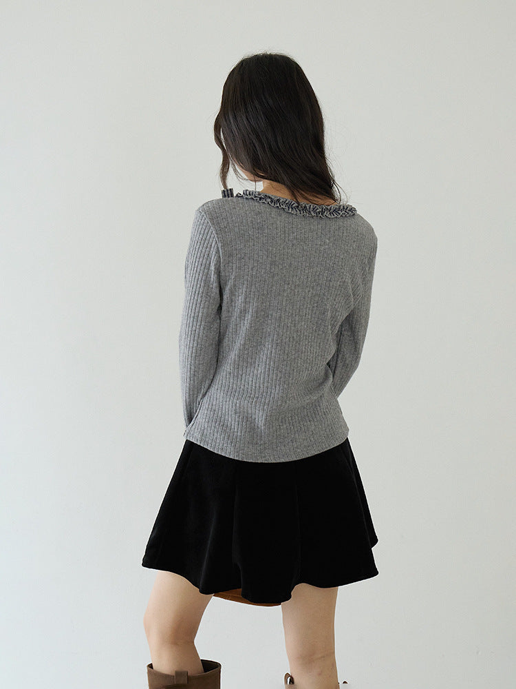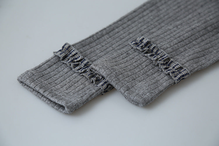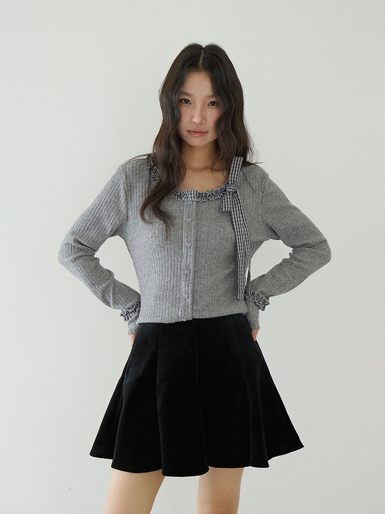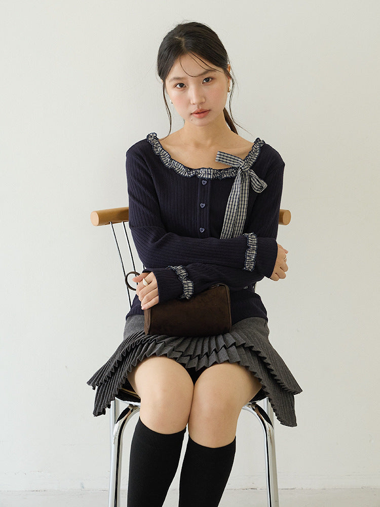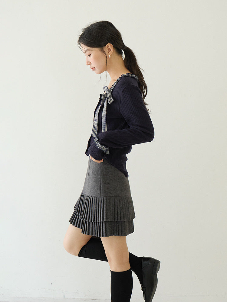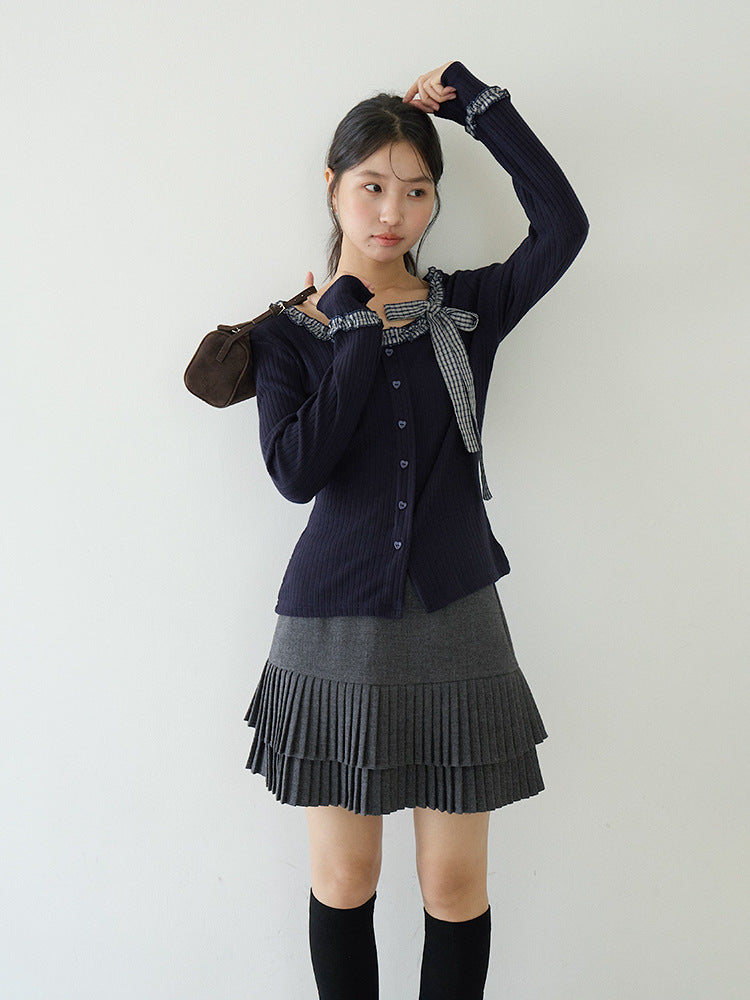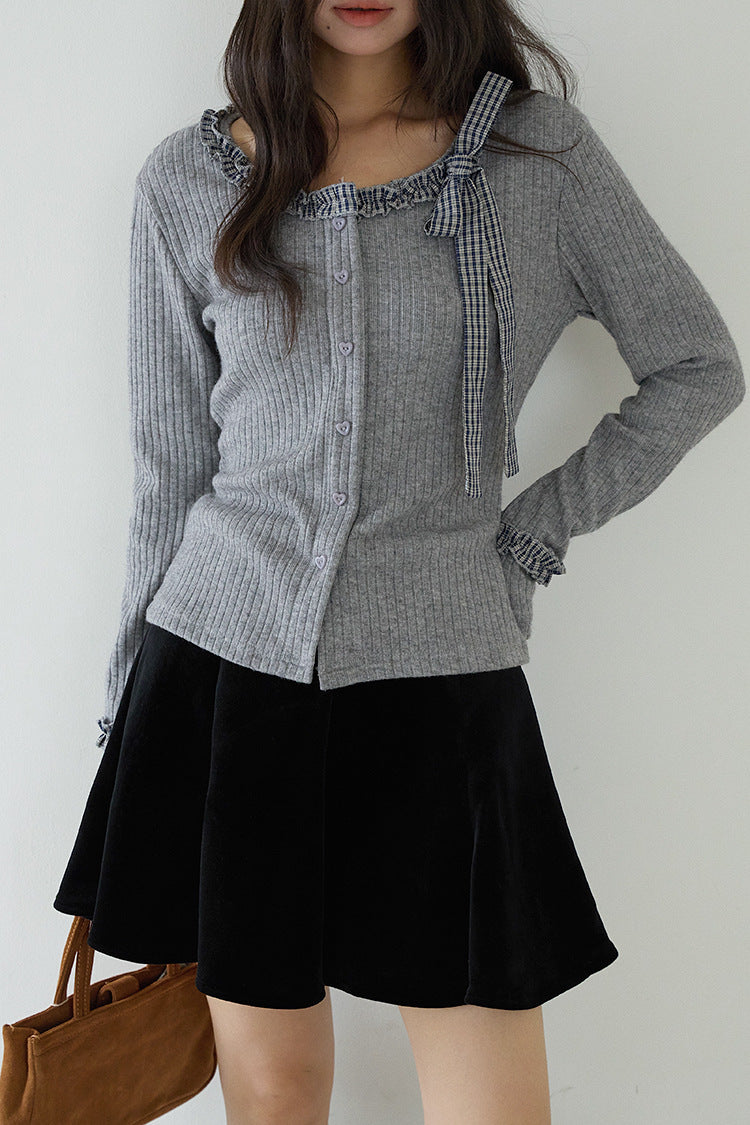 【LD3260】實拍美式復古假兩件格子蝴蝶結長袖上衣251012