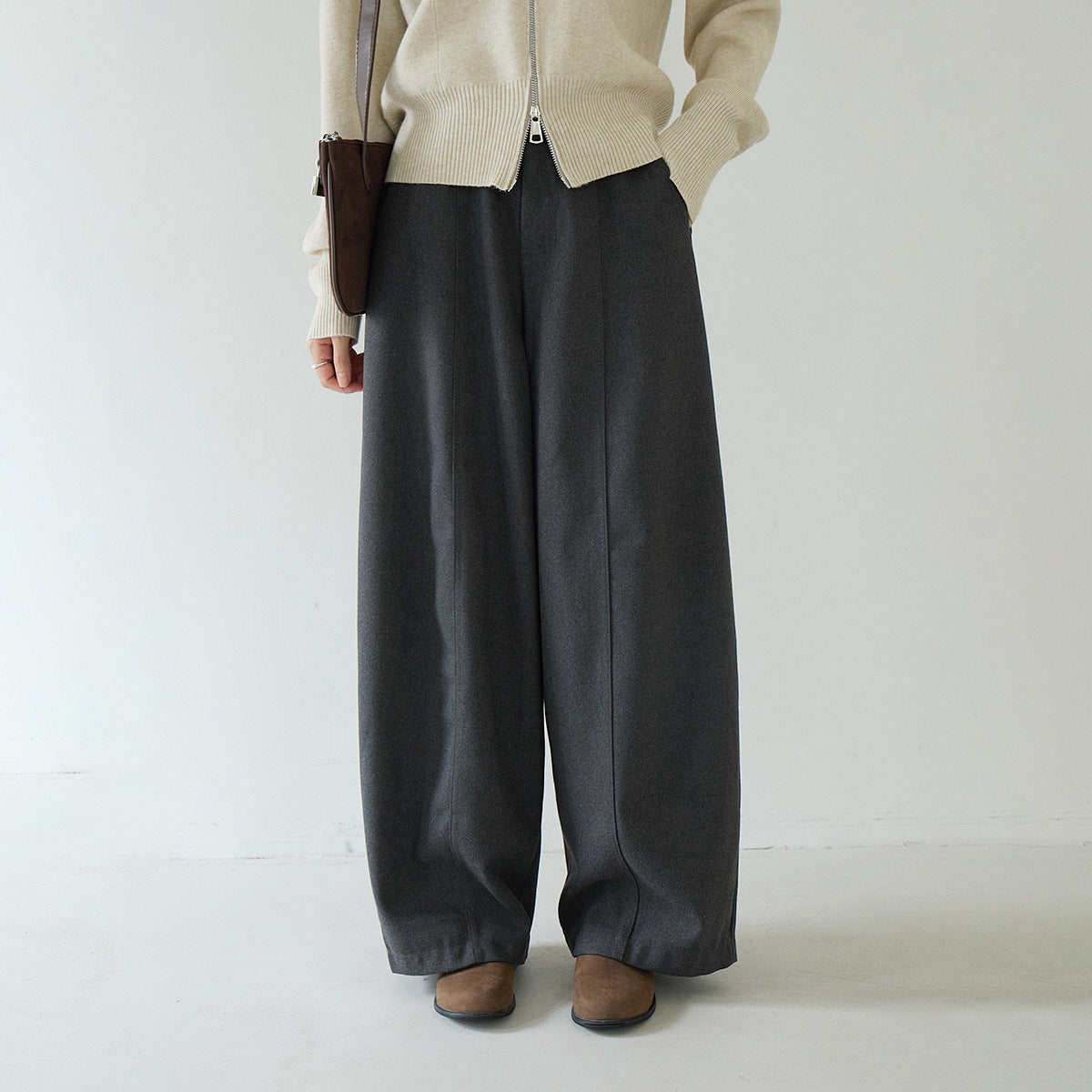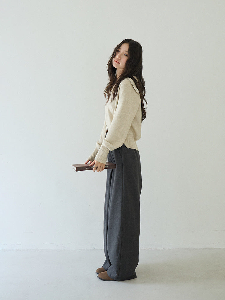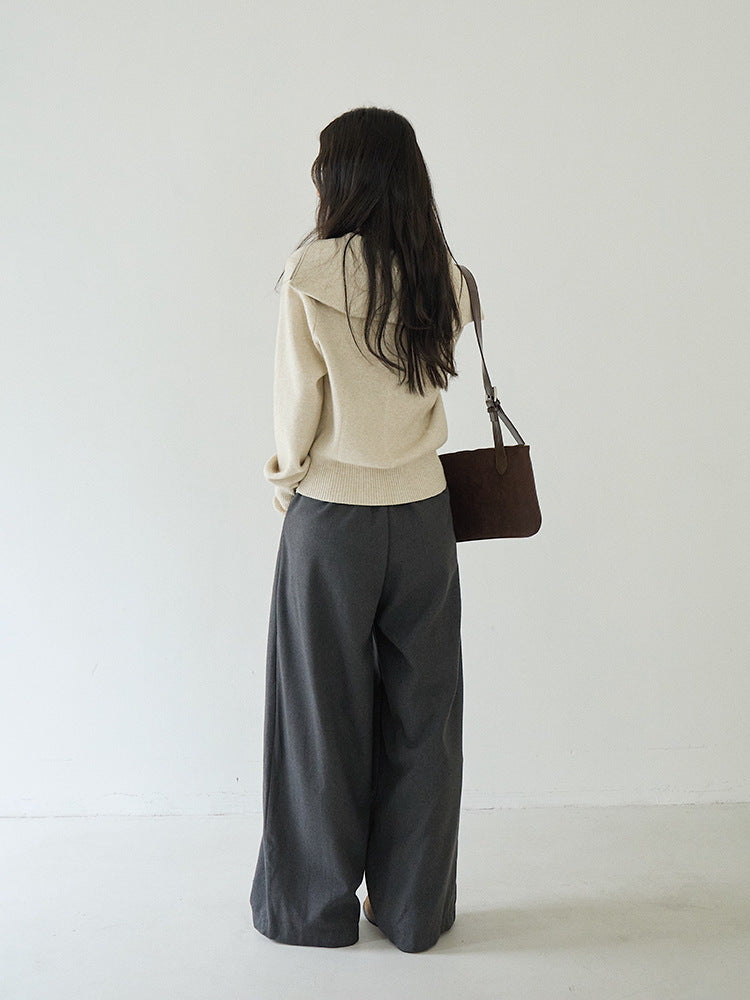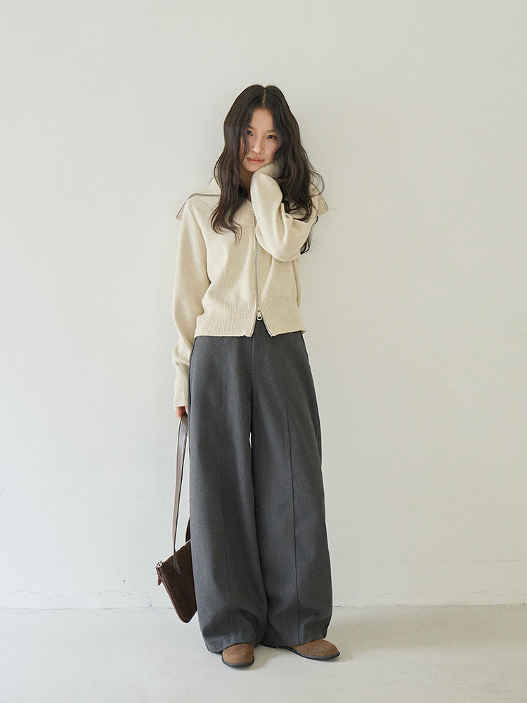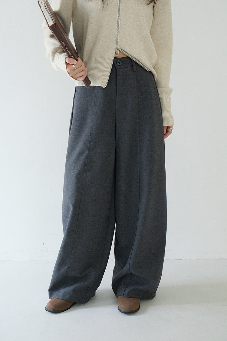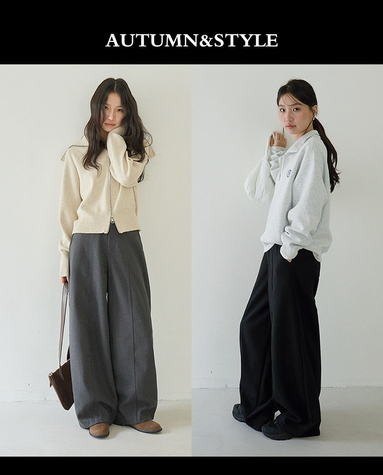 【LD3266】實拍秋冬簡約毛呢闊腿褲休閒褲251012