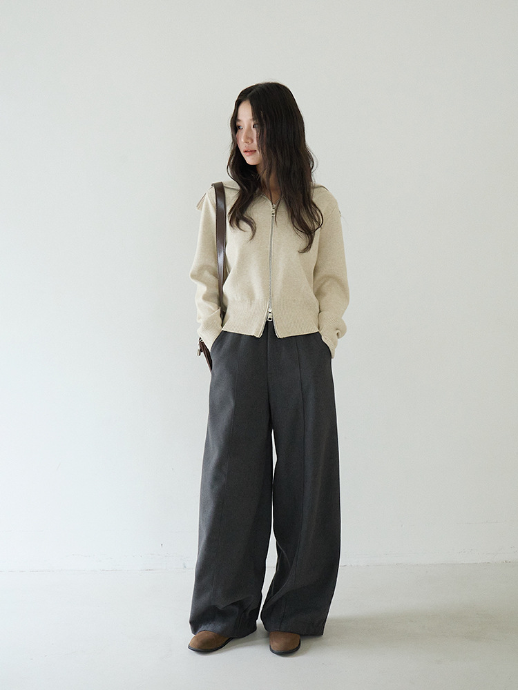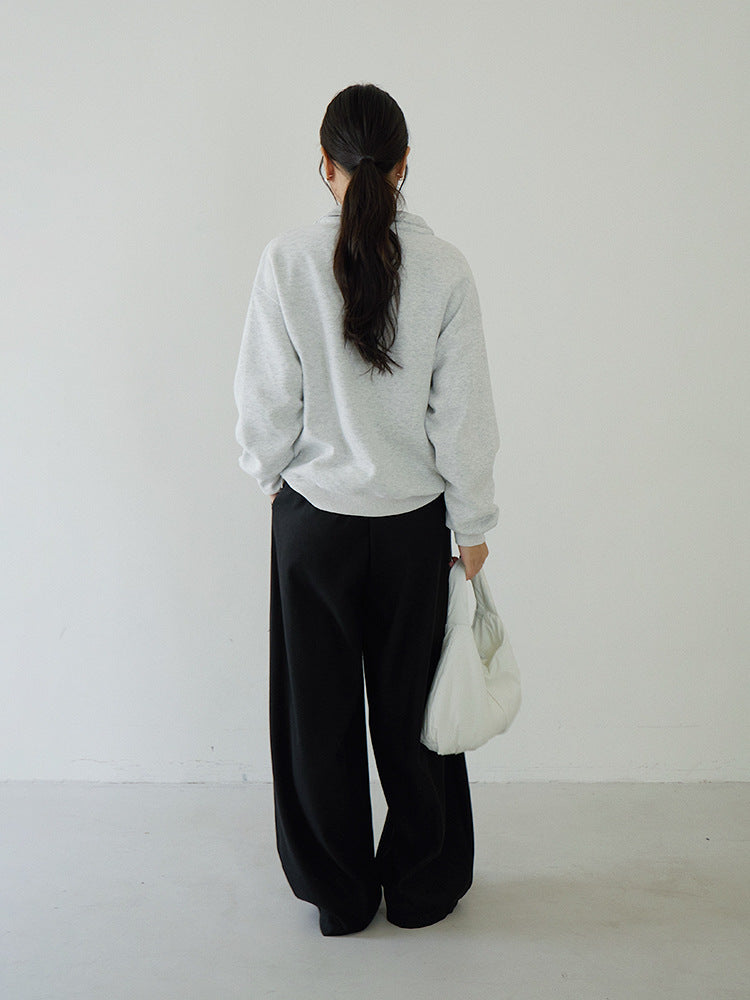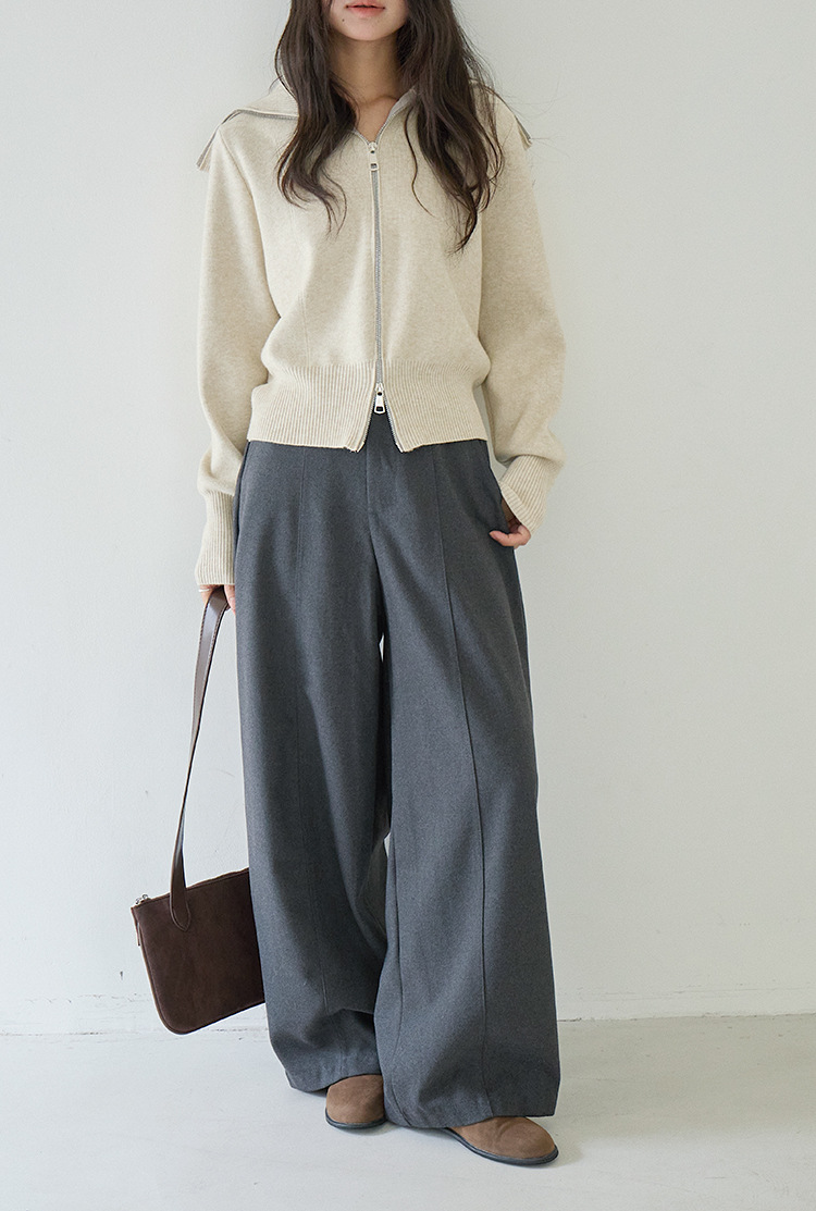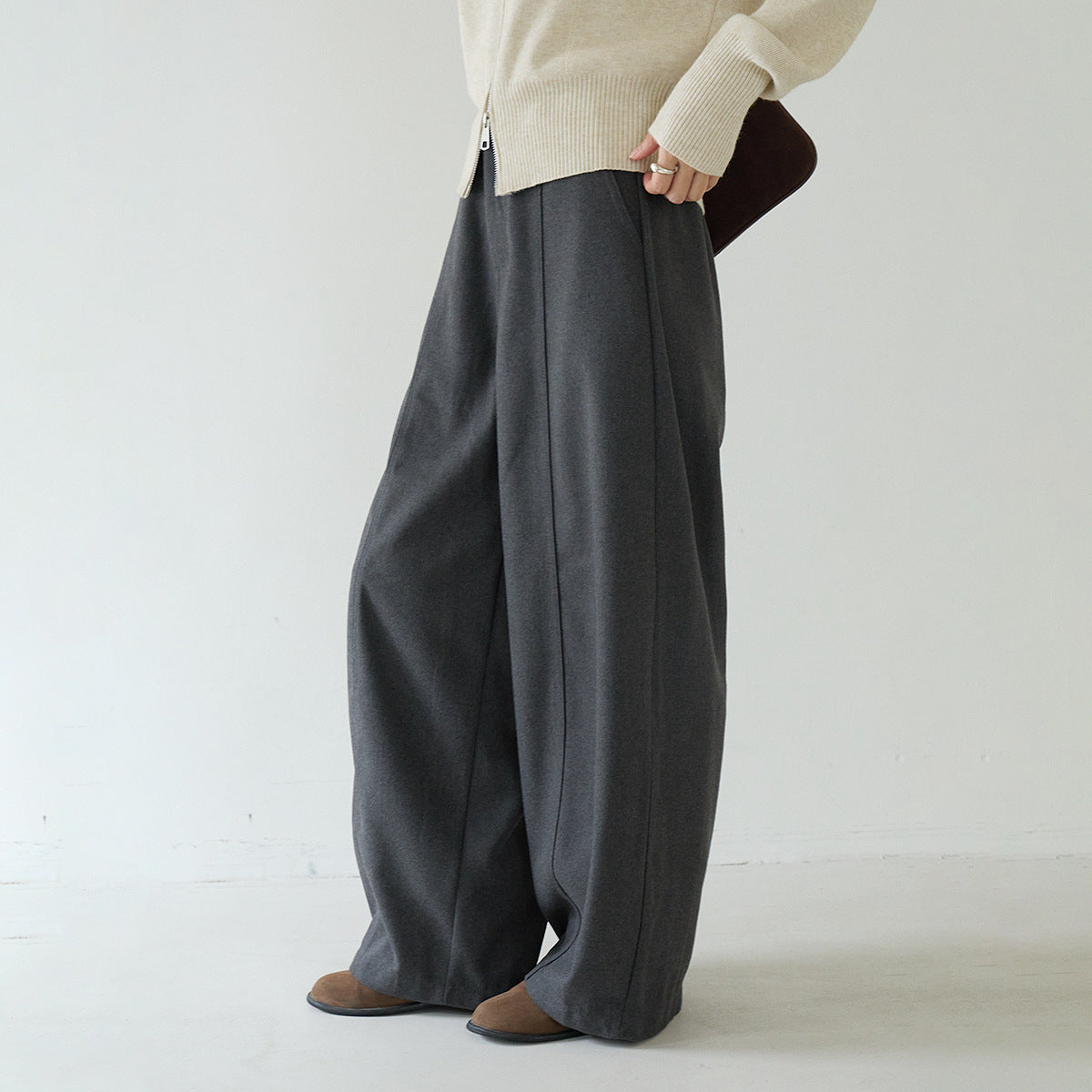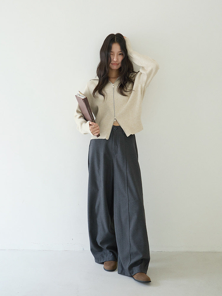 【LD3266】實拍秋冬簡約毛呢闊腿褲休閒褲251012