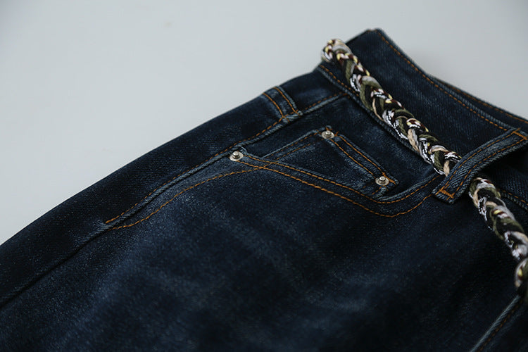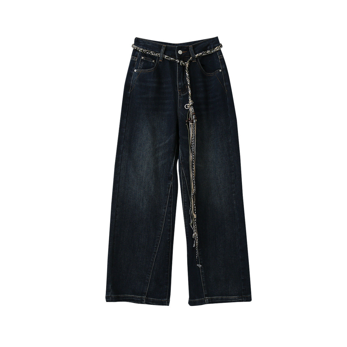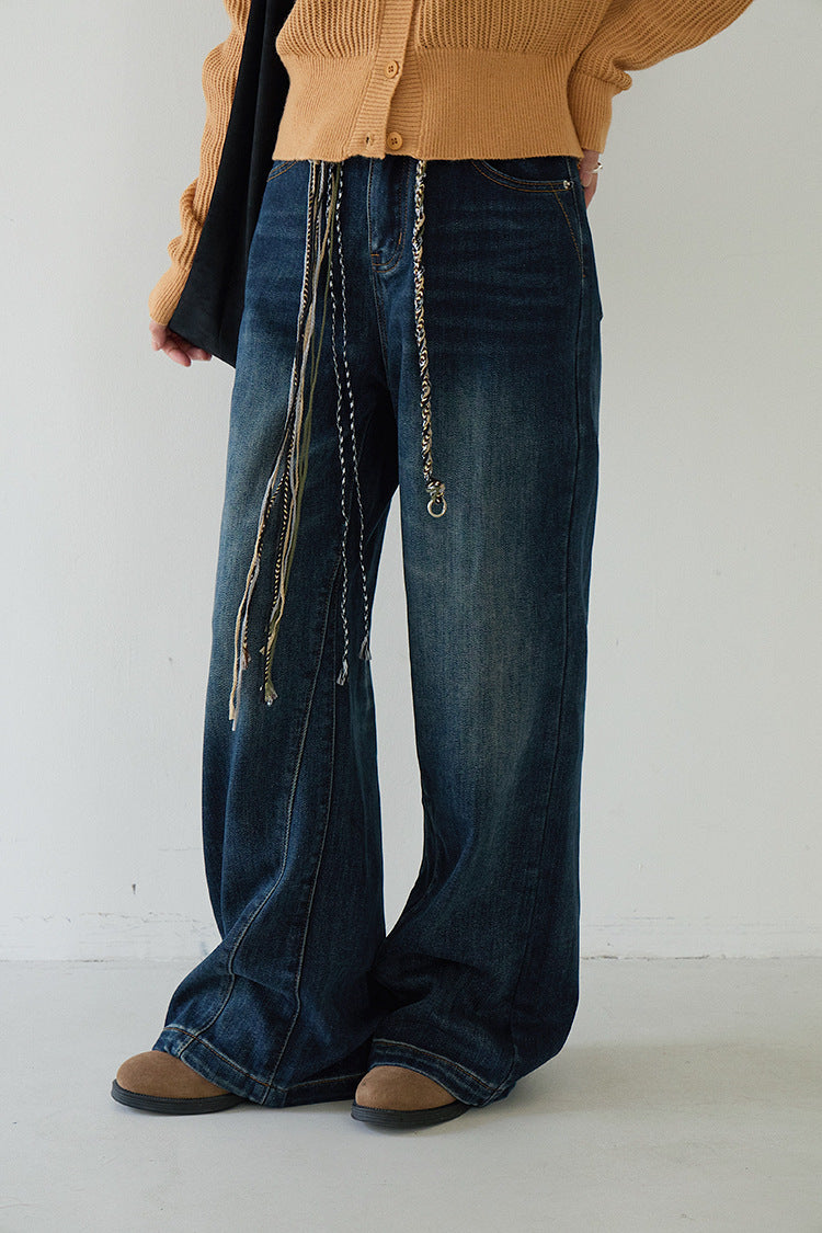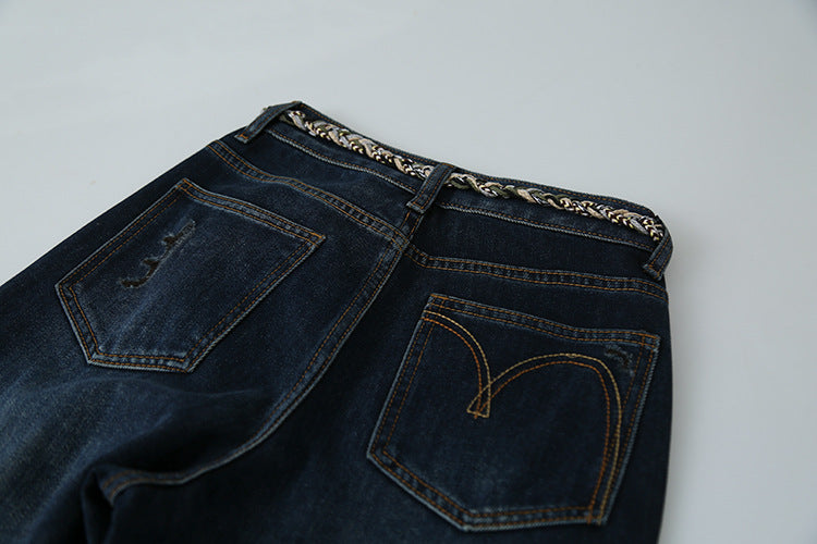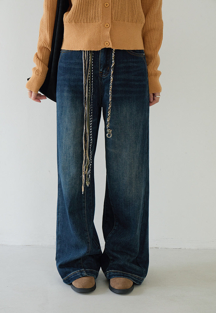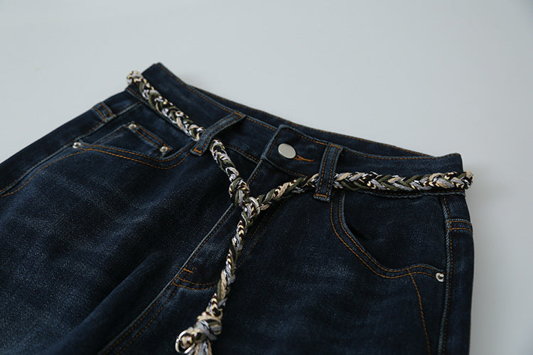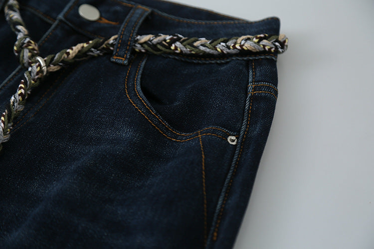 【LD3268】實拍秋冬超顯瘦加絨窄版闊腿牛仔褲+麻花腰帶251012