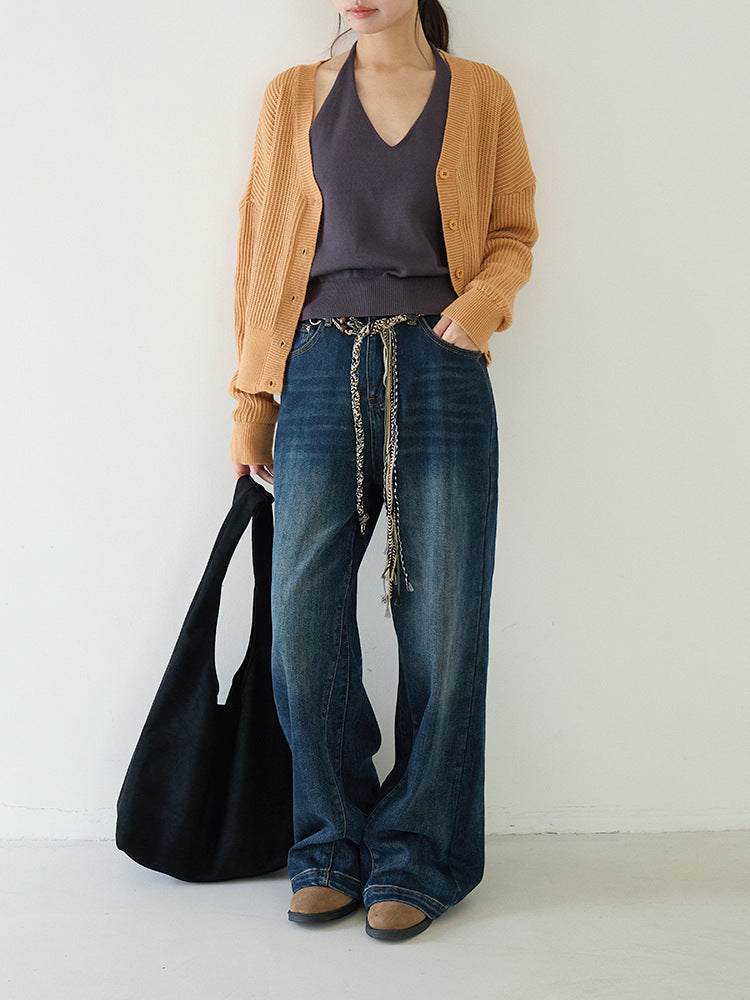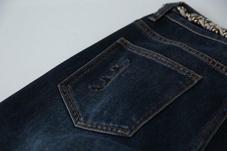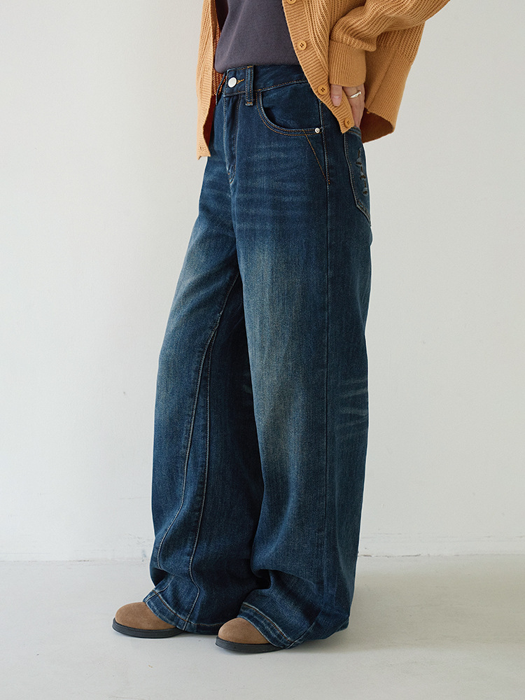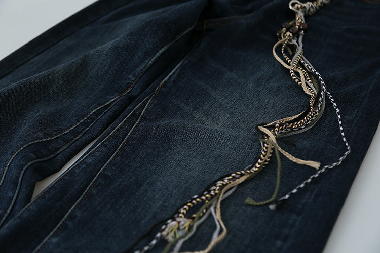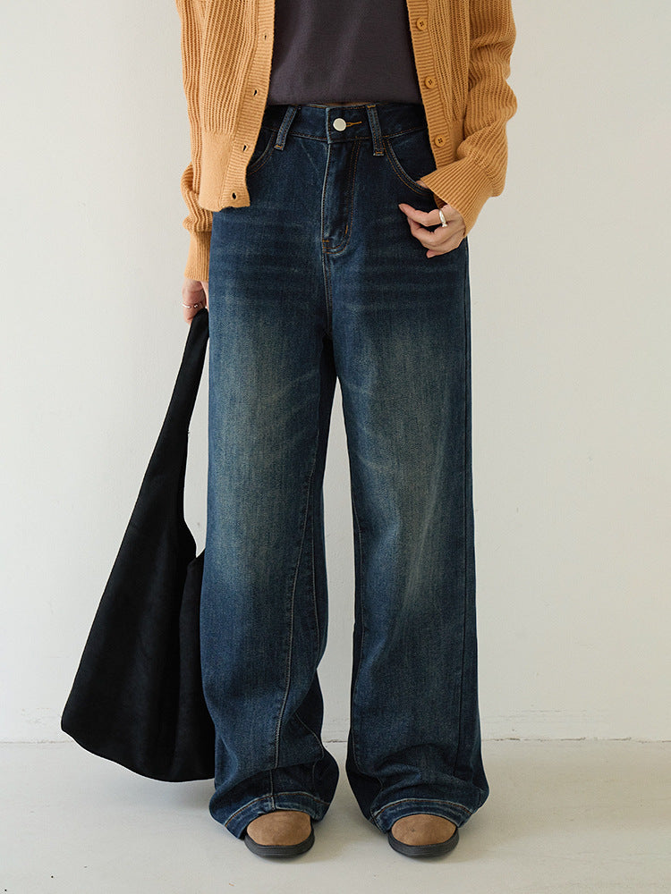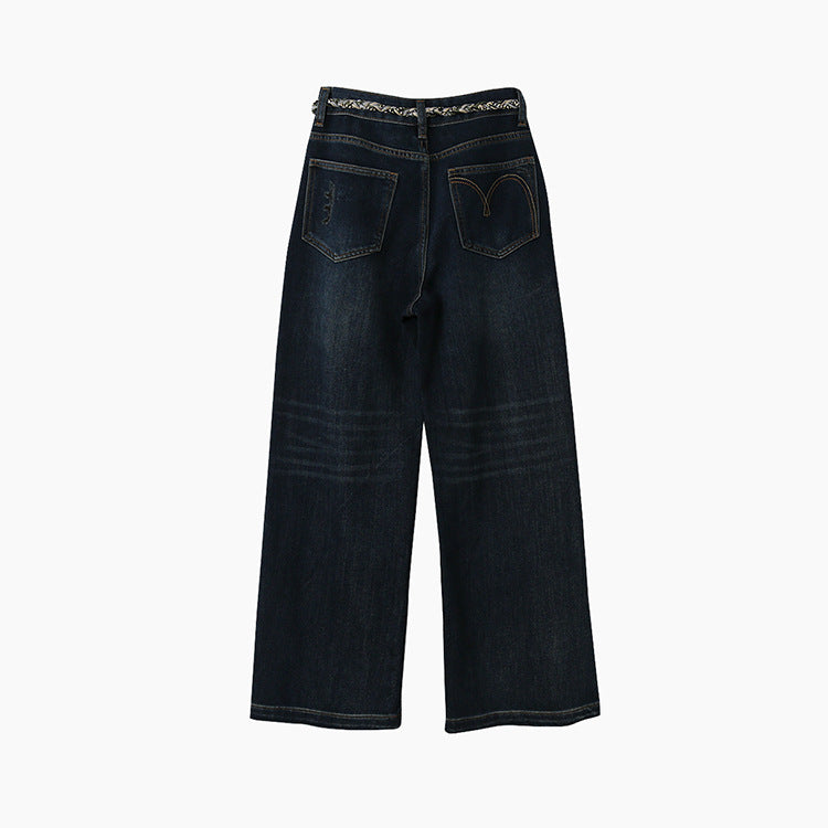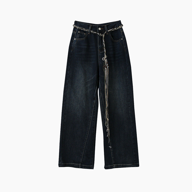 【LD3268】實拍秋冬超顯瘦加絨窄版闊腿牛仔褲+麻花腰帶251012
