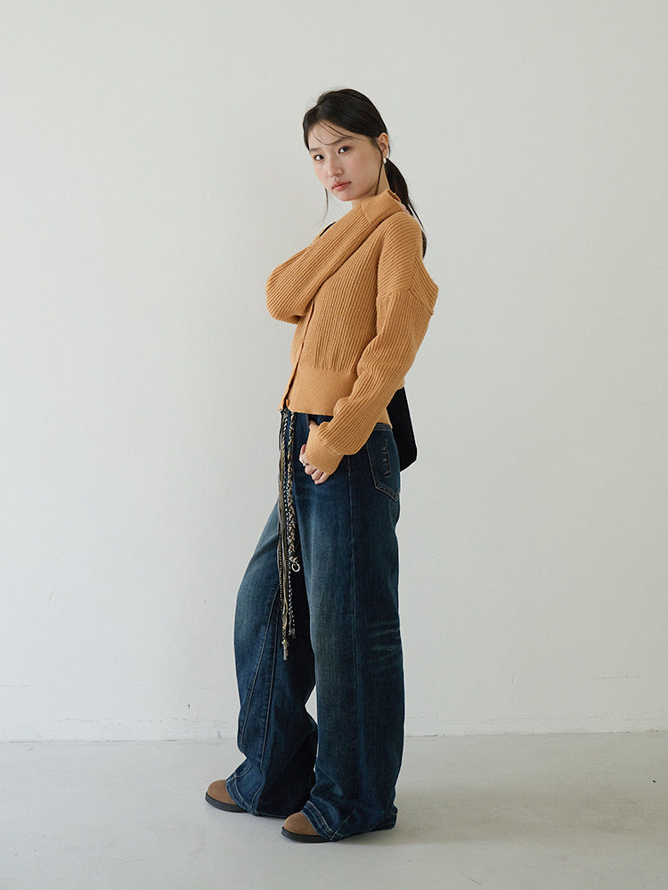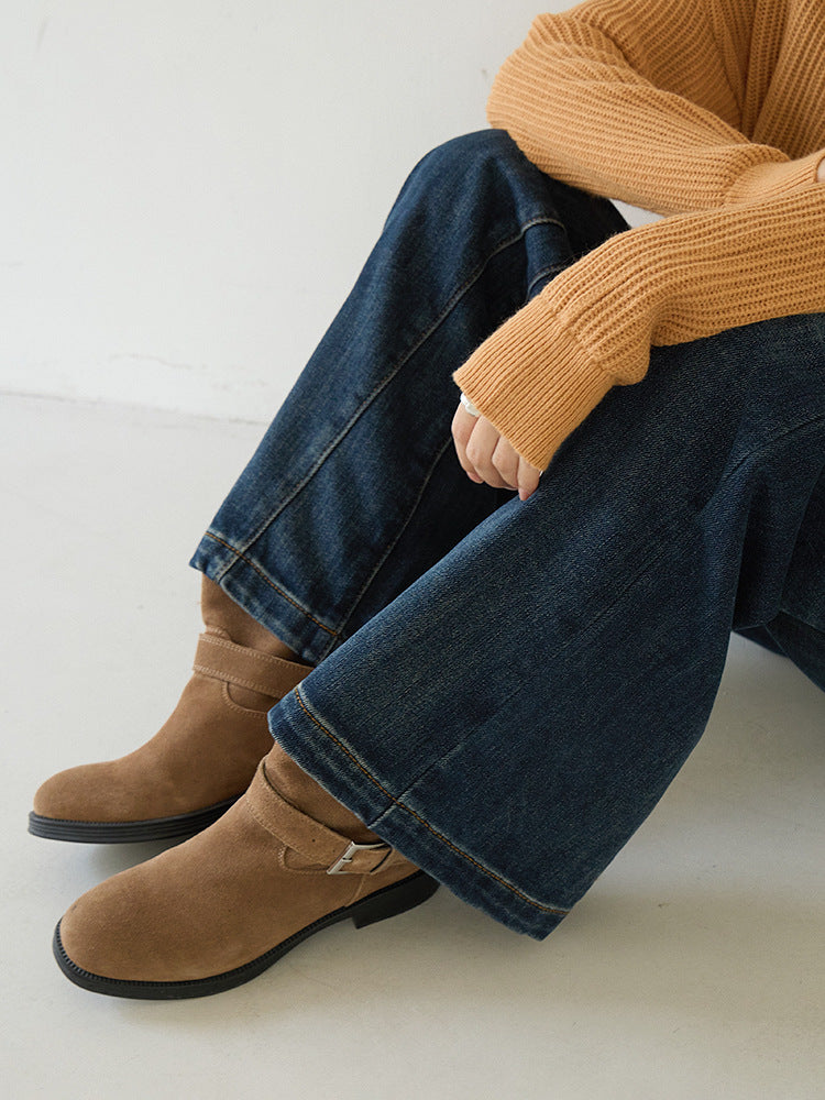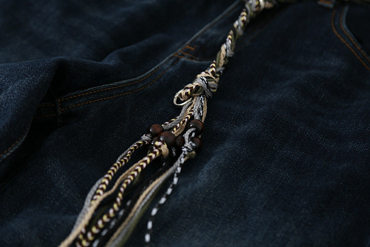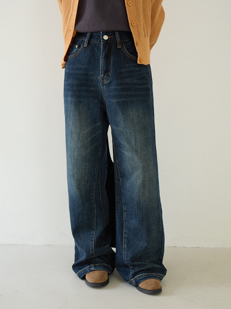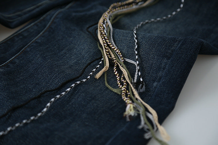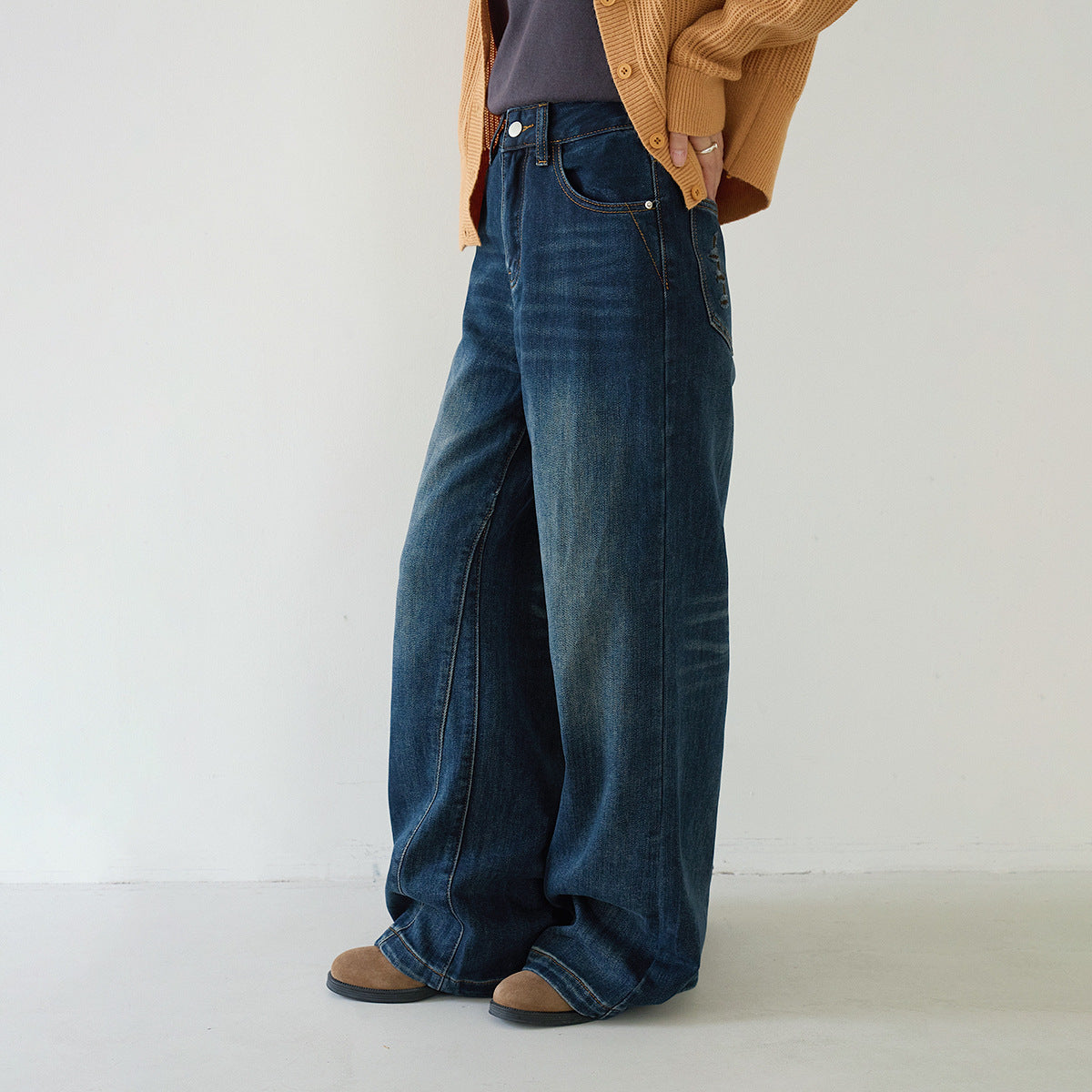 【LD3268】實拍秋冬超顯瘦加絨窄版闊腿牛仔褲+麻花腰帶251012