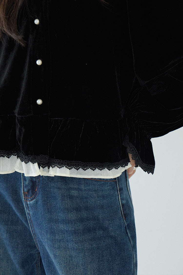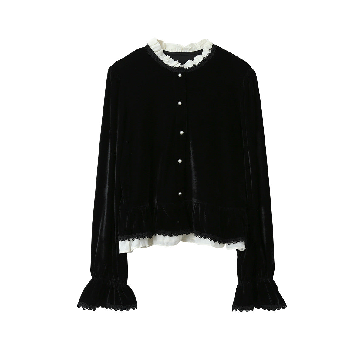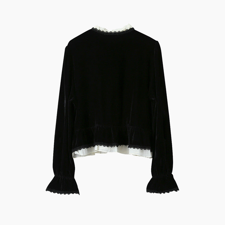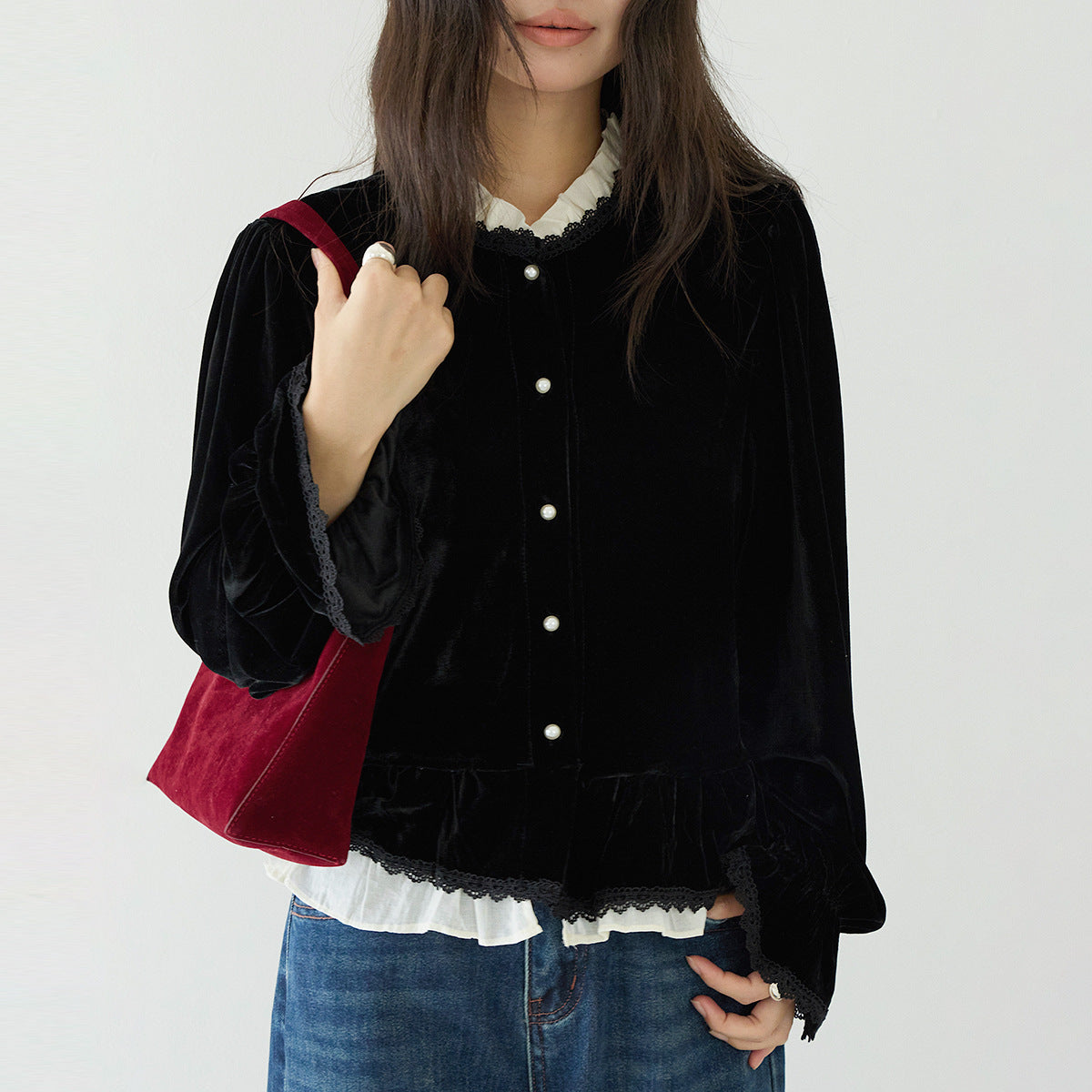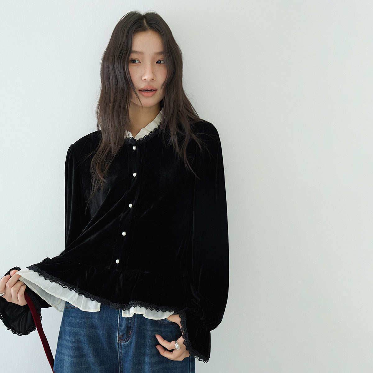 【LD3272】實拍秋冬絲絨假兩件小荷葉長袖襯衫251020