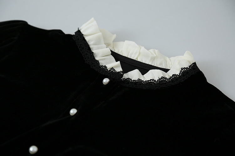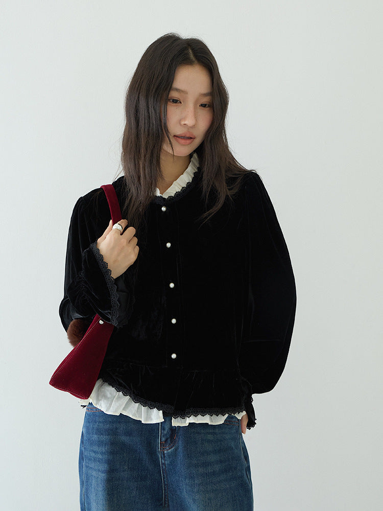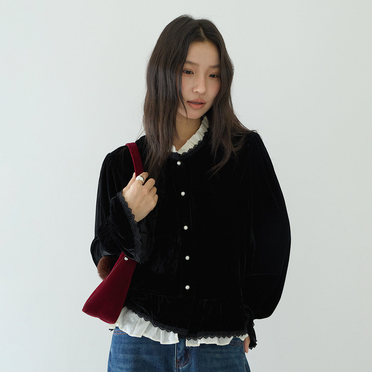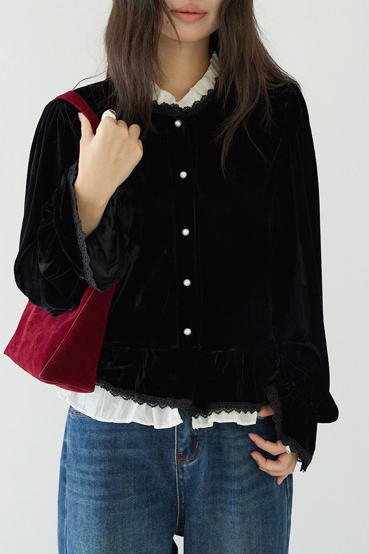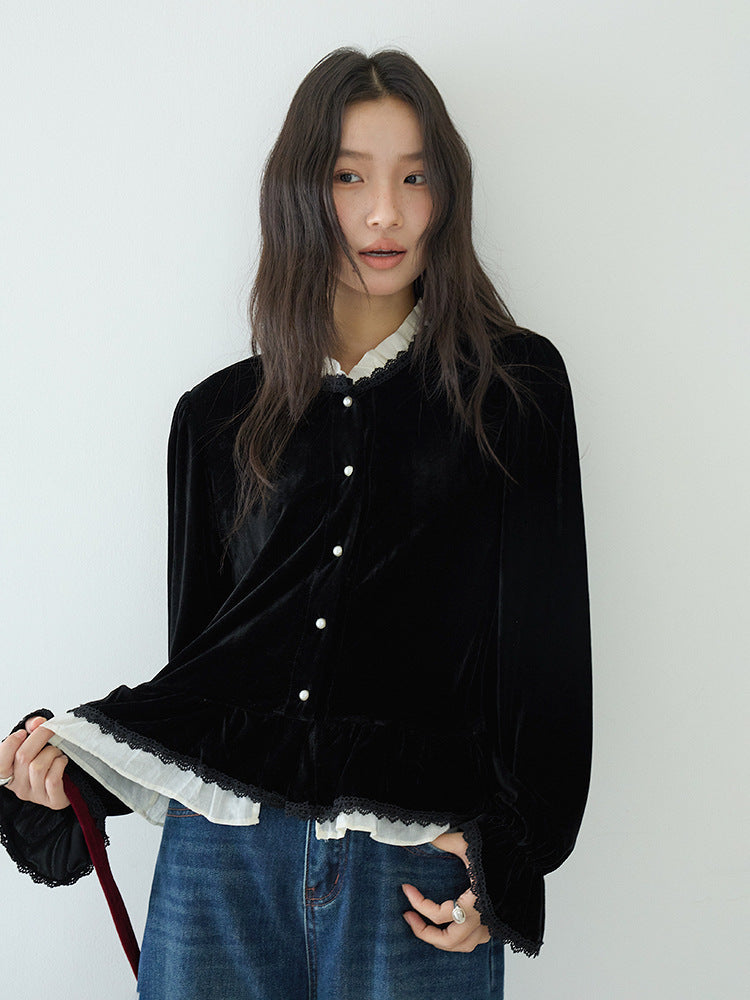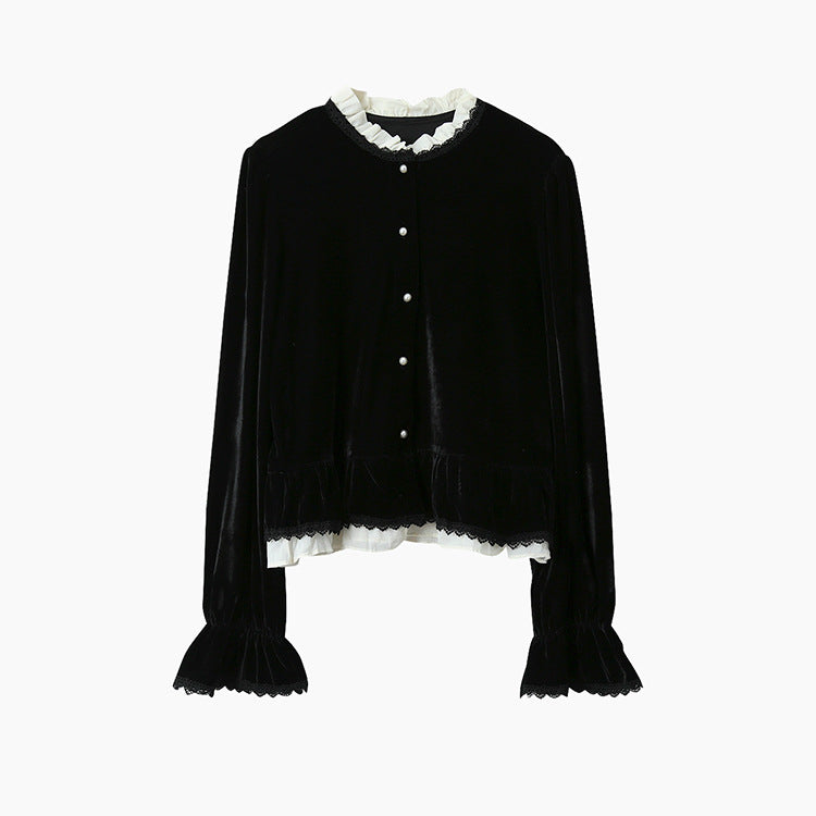 【LD3272】實拍秋冬絲絨假兩件小荷葉長袖襯衫251020